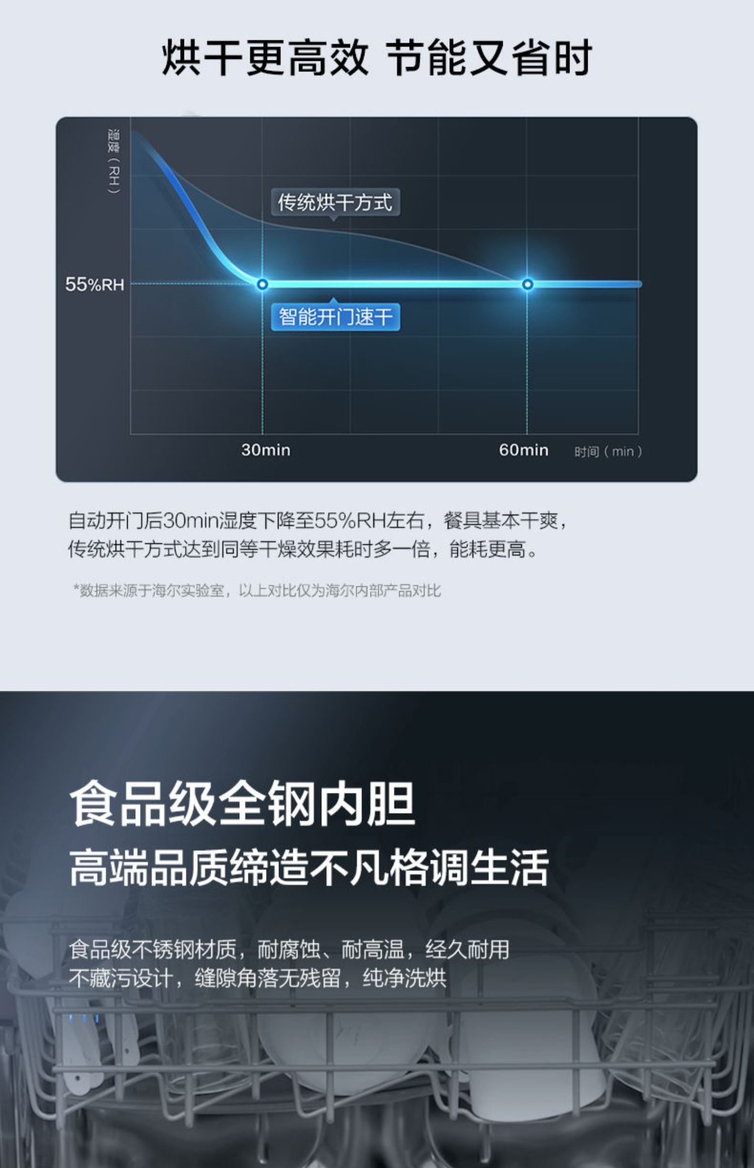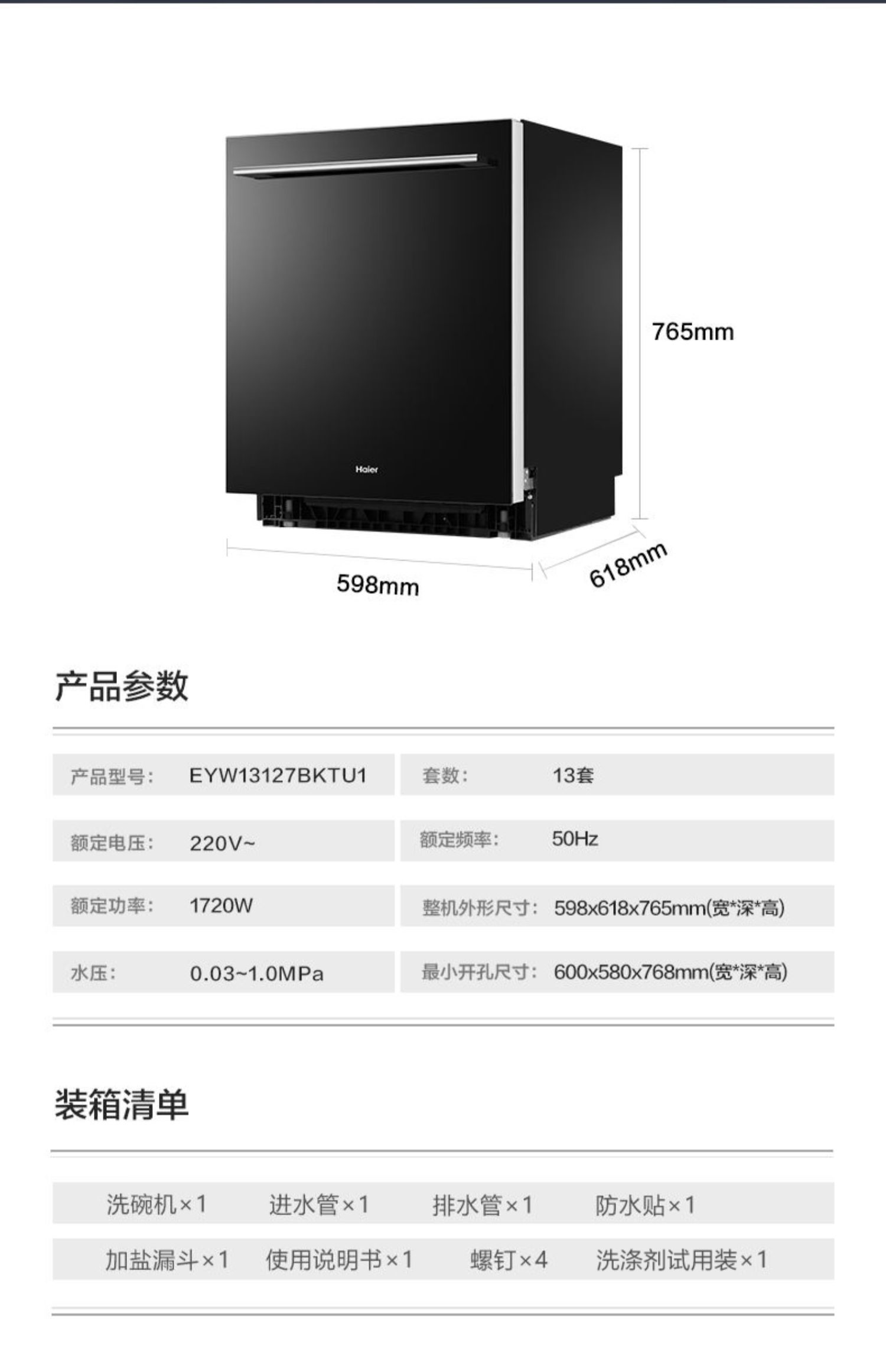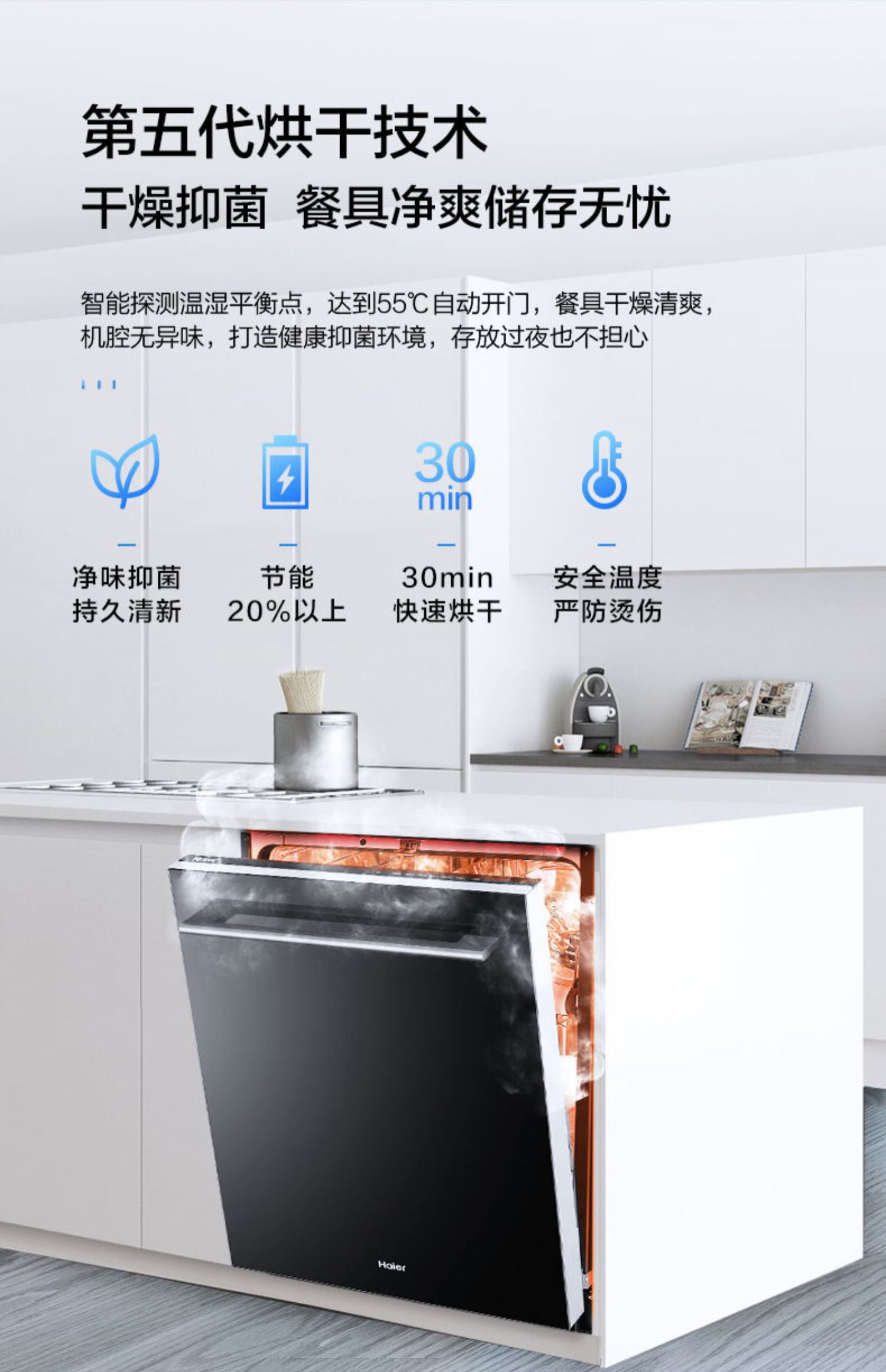 海尔13套嵌入式洗碗机全自动家用一体台式刷碗机EYW13127BKTU1