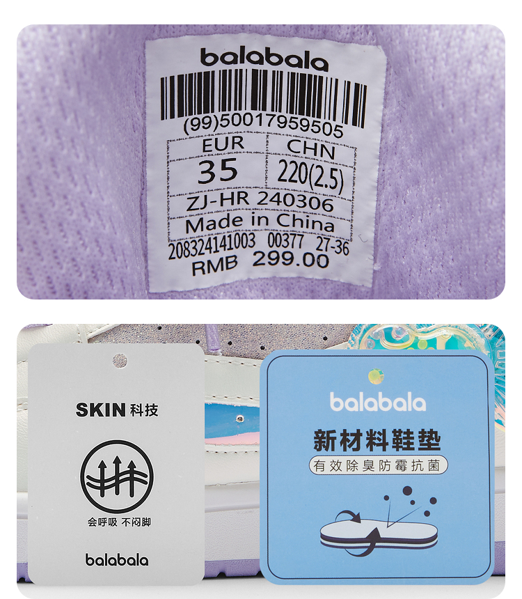 巴拉巴拉童鞋女童板鞋儿童防滑透气鞋秋季新款甜美梦幻休闲鞋