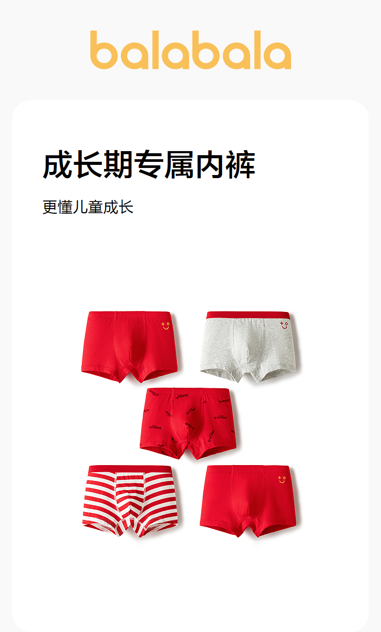 【balaOne】巴拉巴拉儿童内裤平角棉男童短裤四角裤不夹PP五条装