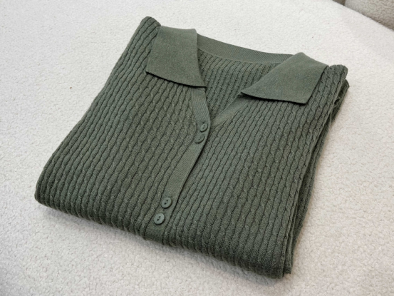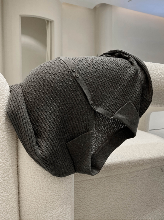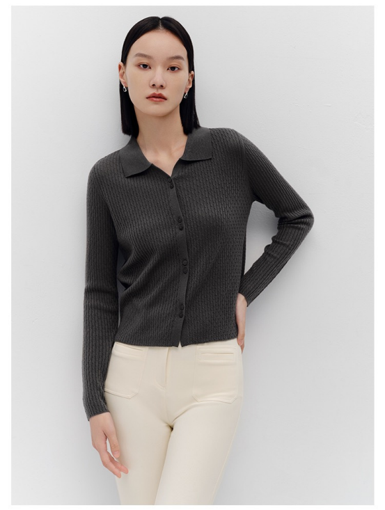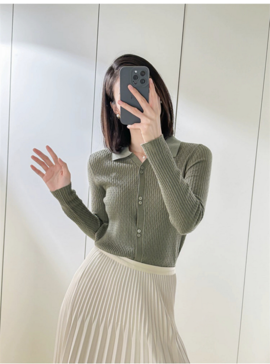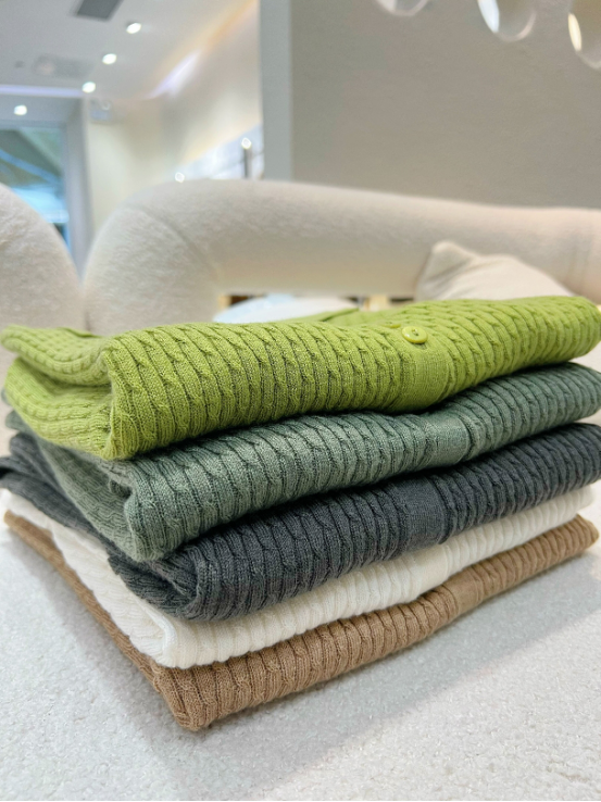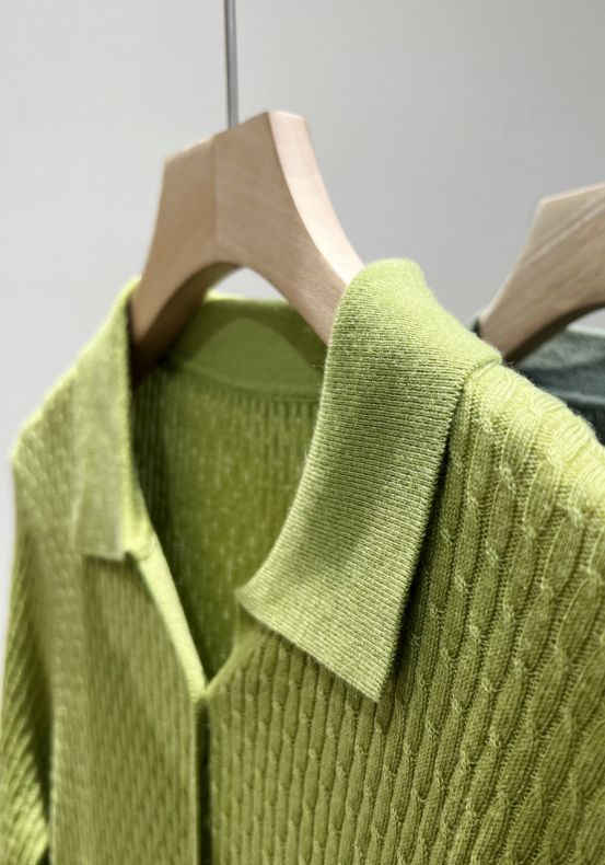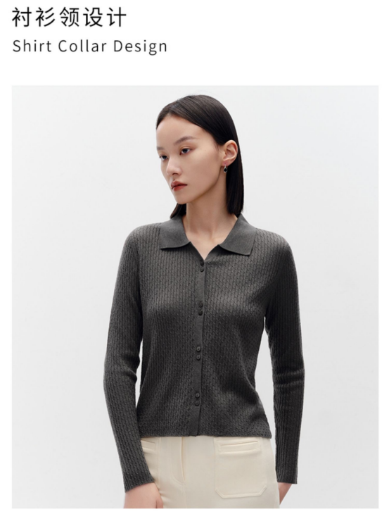 32% 羊毛🦙衬衫领小麻花开衫 ,“无需费心”的基础款针织衫 极简风格,永不过时 ,精致的小绞花花型 双纽扣设计感獨特,令人耳目一新