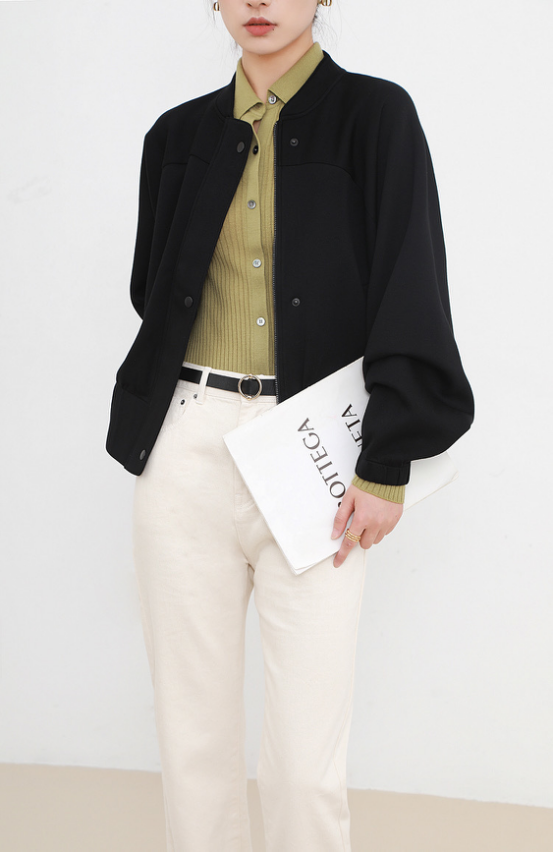 【设计解说】 弹力修身的合体版型 有着恰到好处的空间余量,包容度高 门襟选用定制同色系纽扣 与大身造型融为一体,更有chic腔调 衣长适中,小个子与高妹皆可驾驭 实属闭眼直入的基础百搭款