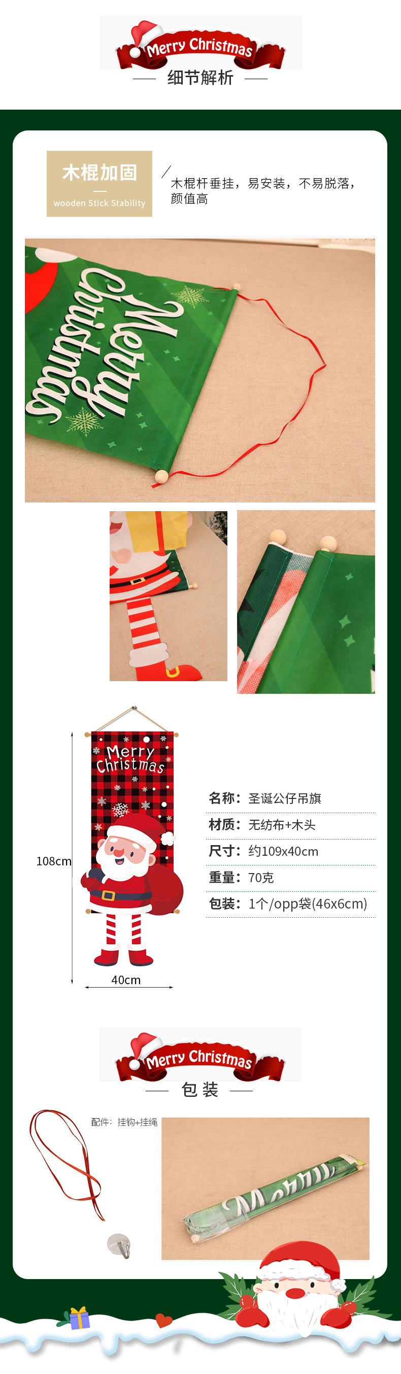 【圣诞专属礼物】新长腿卡通公仔挂旗商场酒吧布置道具氛围挂件KTV场景布挂旗。ry 商品图5