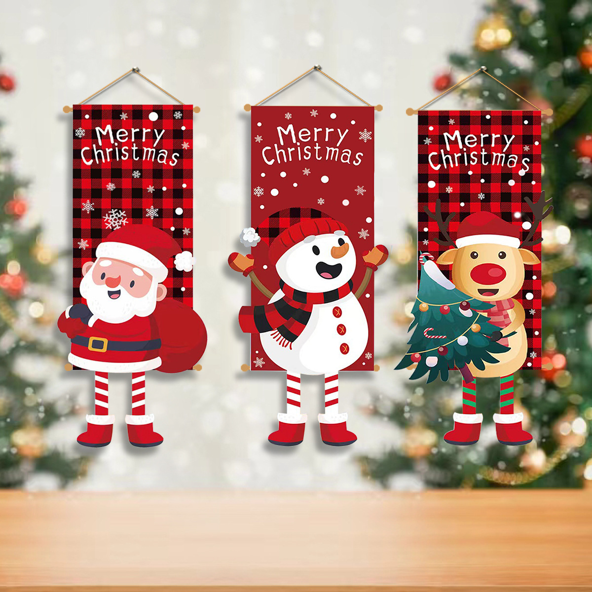 【圣诞专属礼物】新长腿卡通公仔挂旗商场酒吧布置道具氛围挂件KTV场景布挂旗。ry