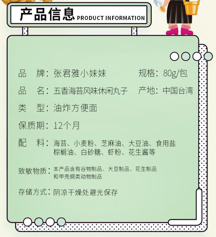 张君雅小妹妹-五香海苔味休闲丸子 80g/袋