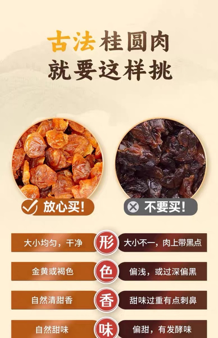 市面上好多桂圆干都是没有保障的“三无”食品X 那种直接去壳的网红灯笼肉只有卖相好看,吃起来又硬又于X 在蒸制的过程中营养流失了大半根本没有桂圆的香甜X 而且敞开放半年都没氧化变色的食物到底放了多少添加剂我都不敢想