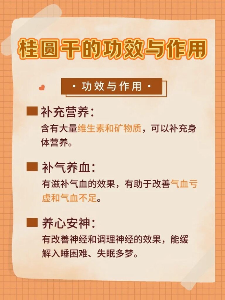 李时珍亦在《本草纲目》中盛赞曰: “资益,则龙眼为良”;“久服可强魄聪明,轻身不老, 通神明,开胃益脾,补虚长智之功效”!2020年版《中国药典》 一部 记载:“桂圆肉,性味甘、温;补益心脾,养血安神〞,用于气血不足,心悸怔忡,健 忘失眠,血虚萎黄〞。