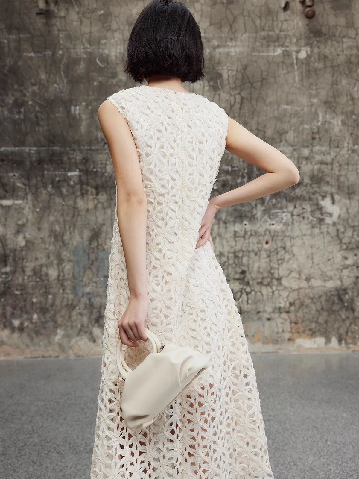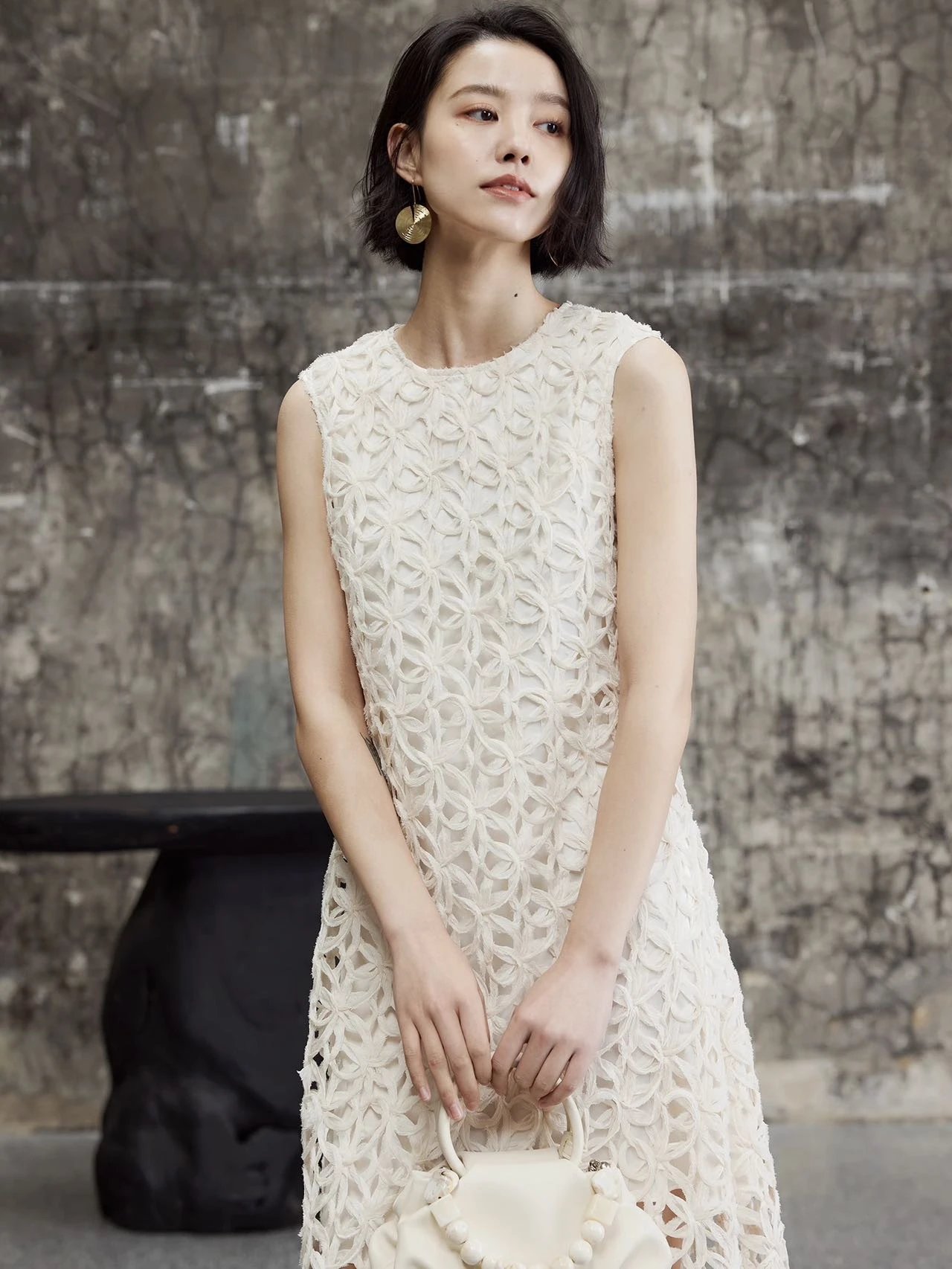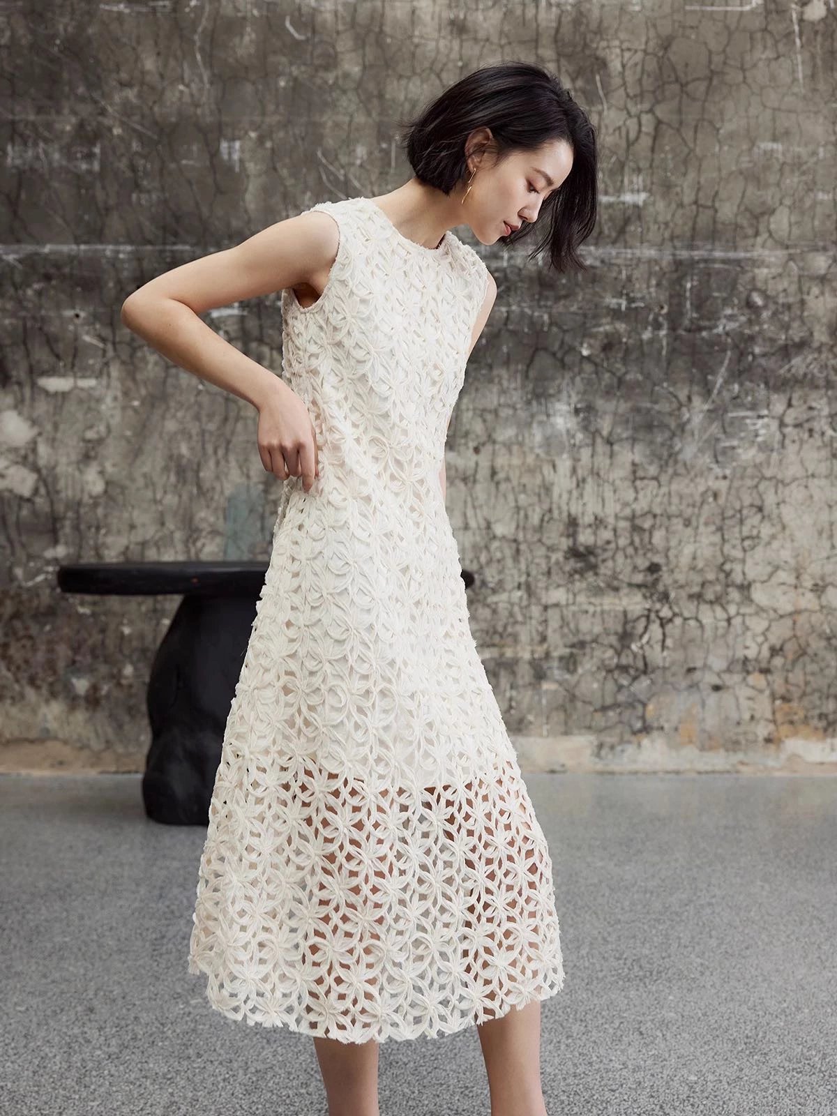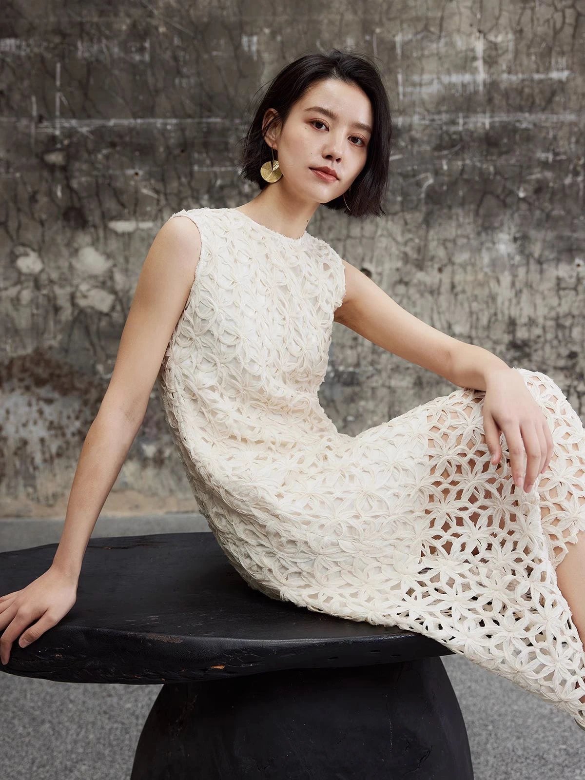 LPIUTY品牌直发❗️重磅高定⚠️Valen*tino同款天丝面料连衣裙❗️⚠️月下初恋白绣花无袖连衣裙