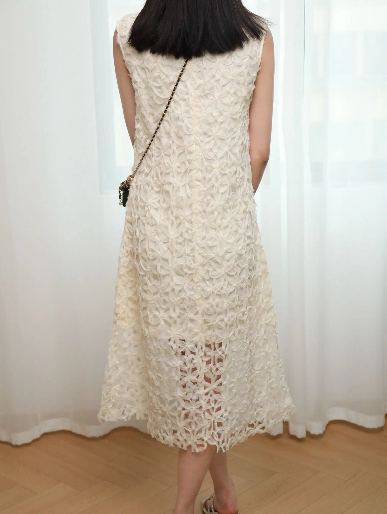 Valen*tino同款面料绣花无袖连衣裙⚠️