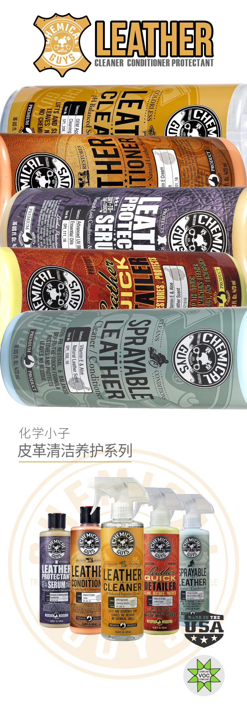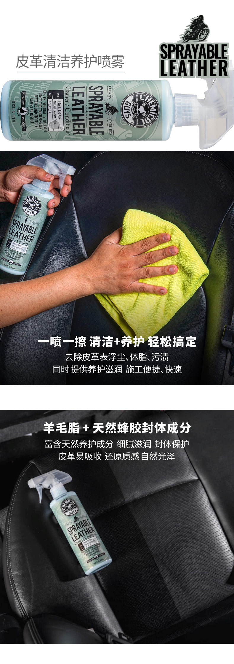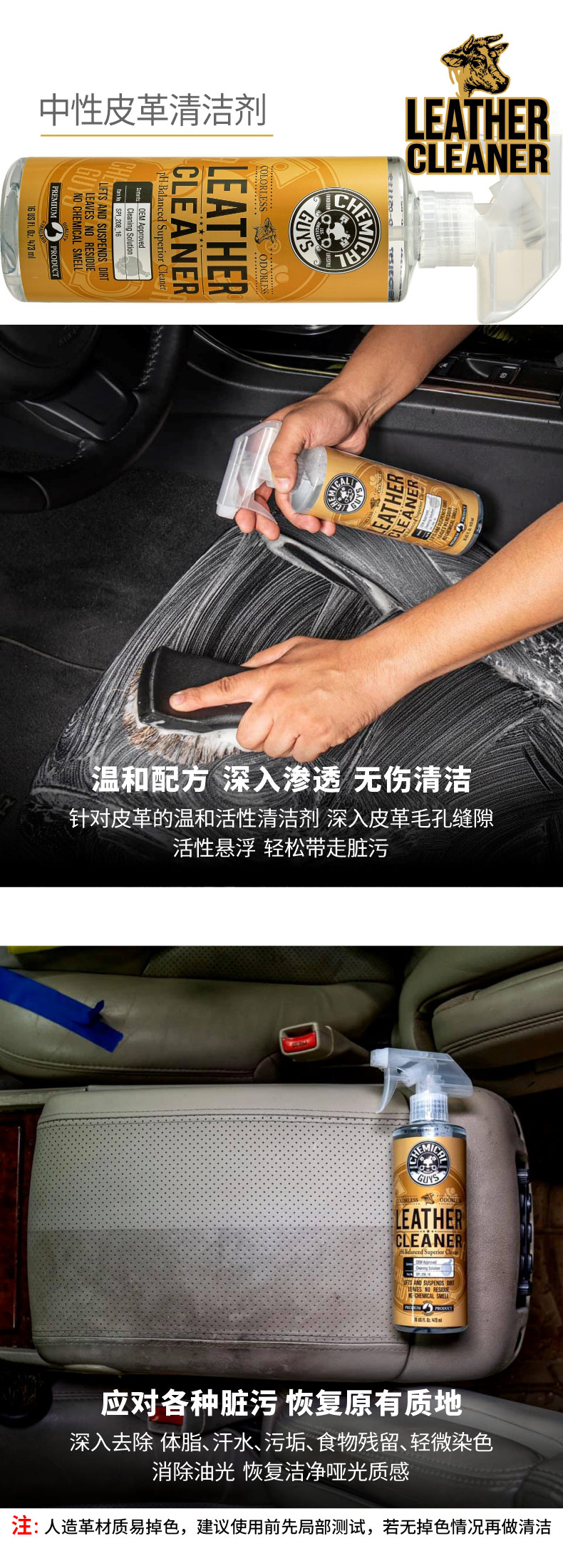 化学小子中性皮革清洁剂 汽车内饰真皮沙发皮革镀膜滋润保养护理