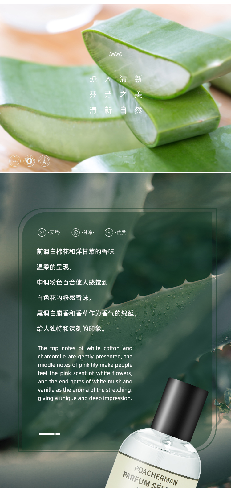 柏世曼芦荟味香水 清新绿叶调芦荟香味男女士小众香水学生香氛