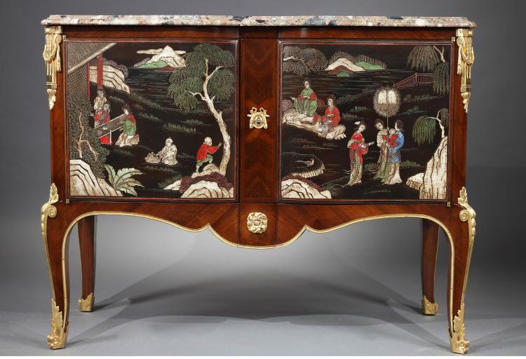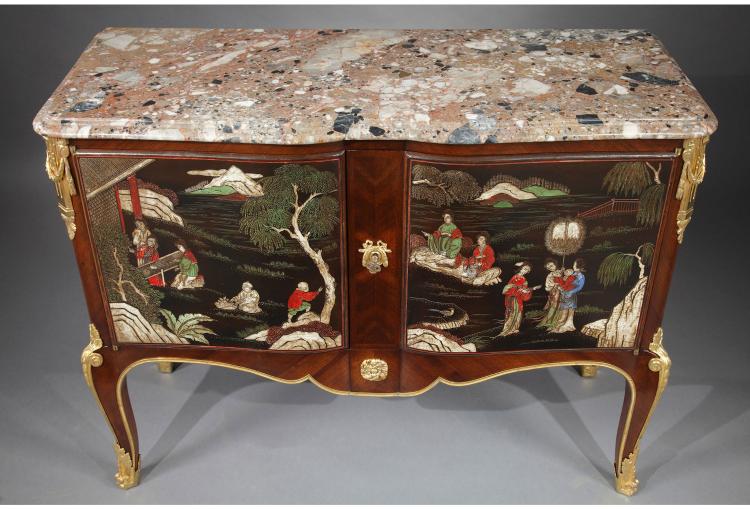 独角鹿西洋古董家具铜鎏金饰大理石款彩漆雕东方风格橡木橱柜斗柜