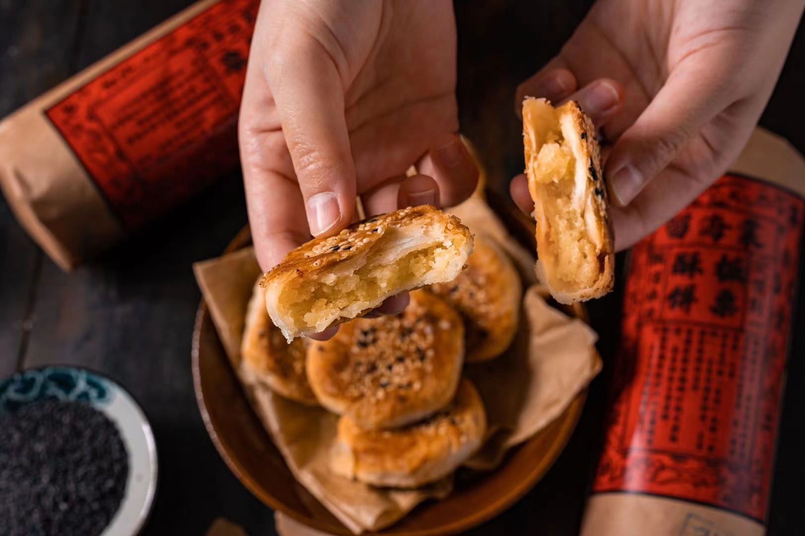 饼皮酥脆,一口酥掉渣,而内馅又松软绵实,入口即化。