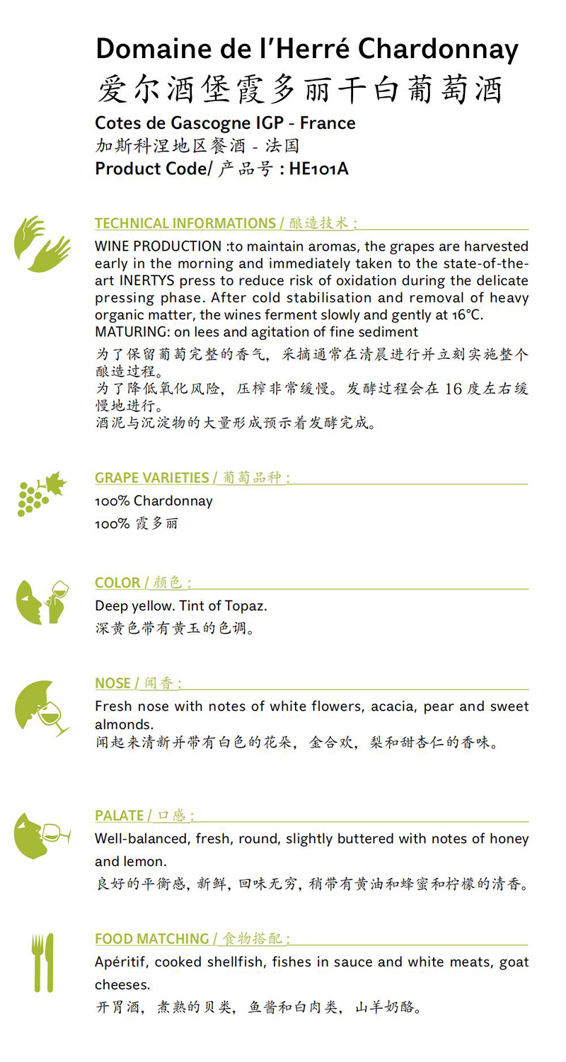Domaine de l’Herré Chardonnay / Sauvignon Blanc 爱尔酒堡霞多丽 / 长相思干白葡萄酒