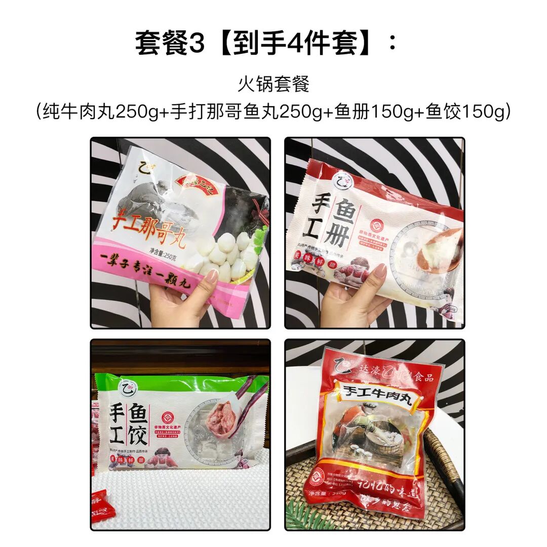 火锅套餐(纯牛肉丸250g+手打那哥鱼丸250g+鱼册150g+鱼饺150g)