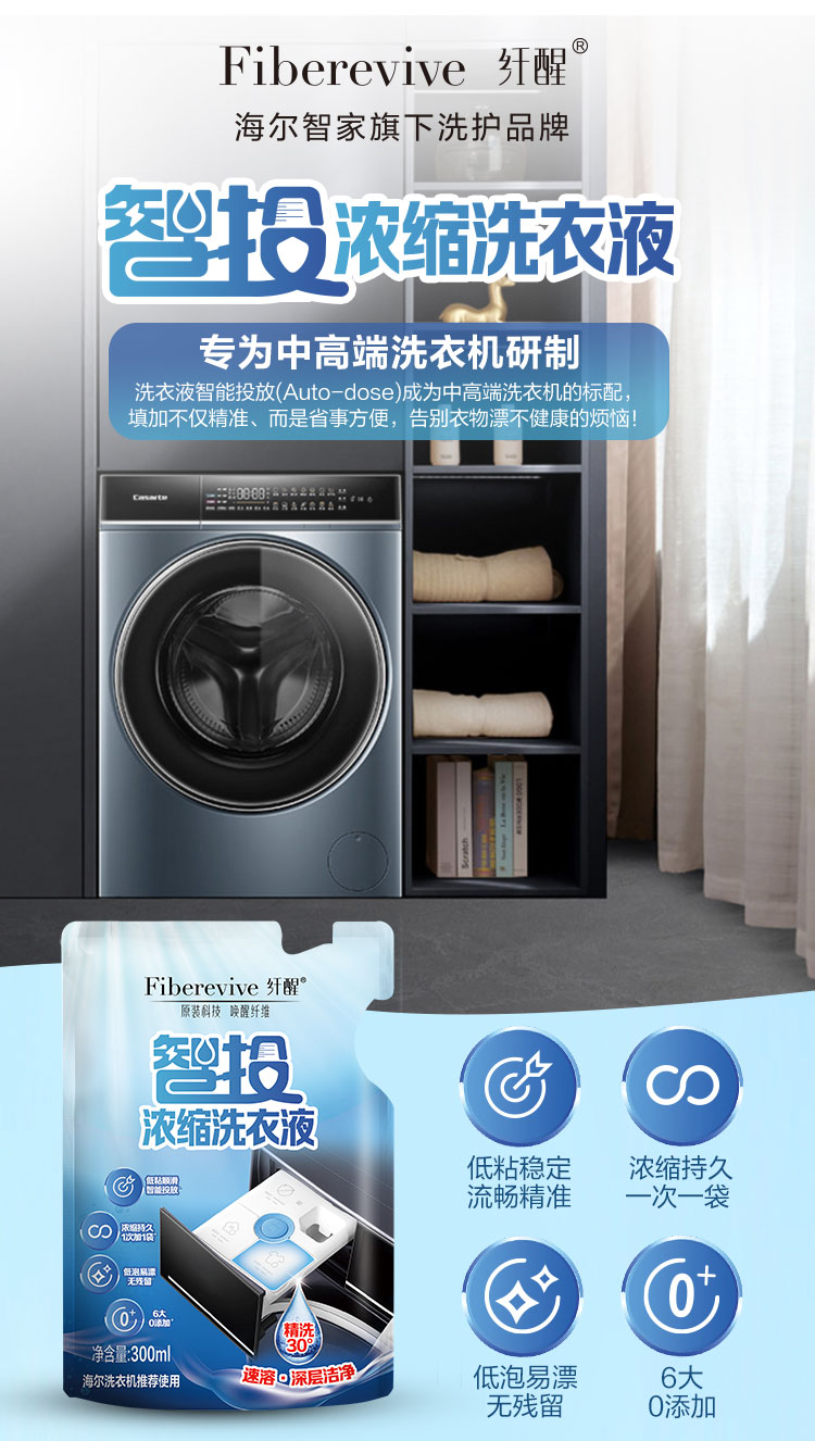 海尔智家 纤醒 智投浓缩洗衣液(300g*8袋)
