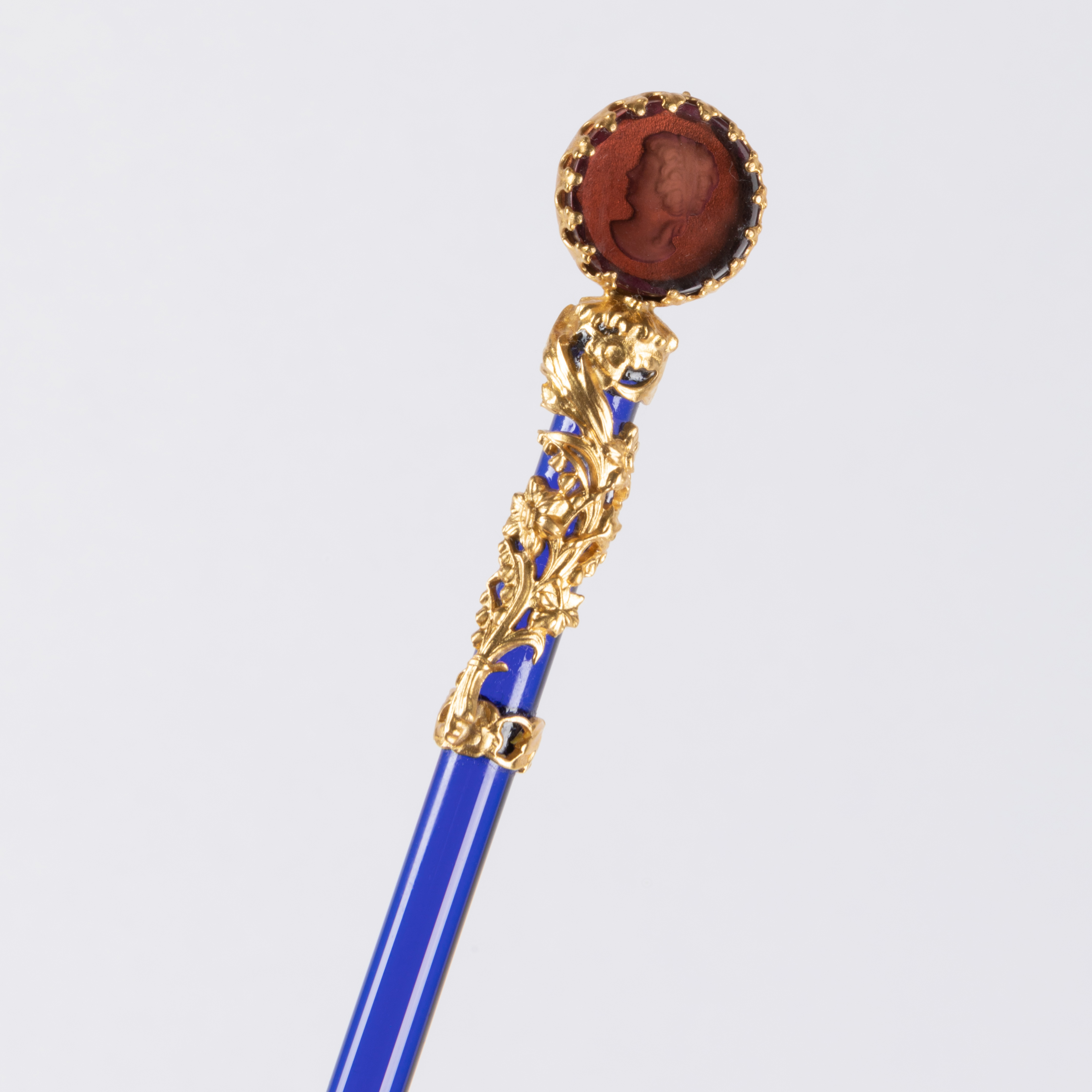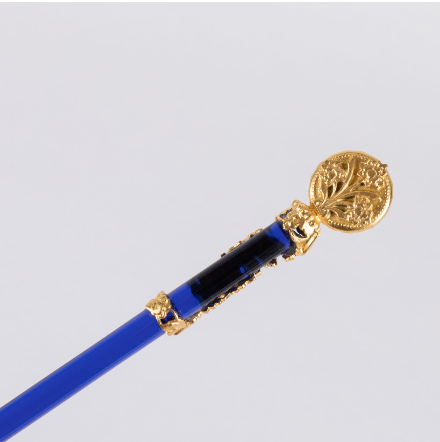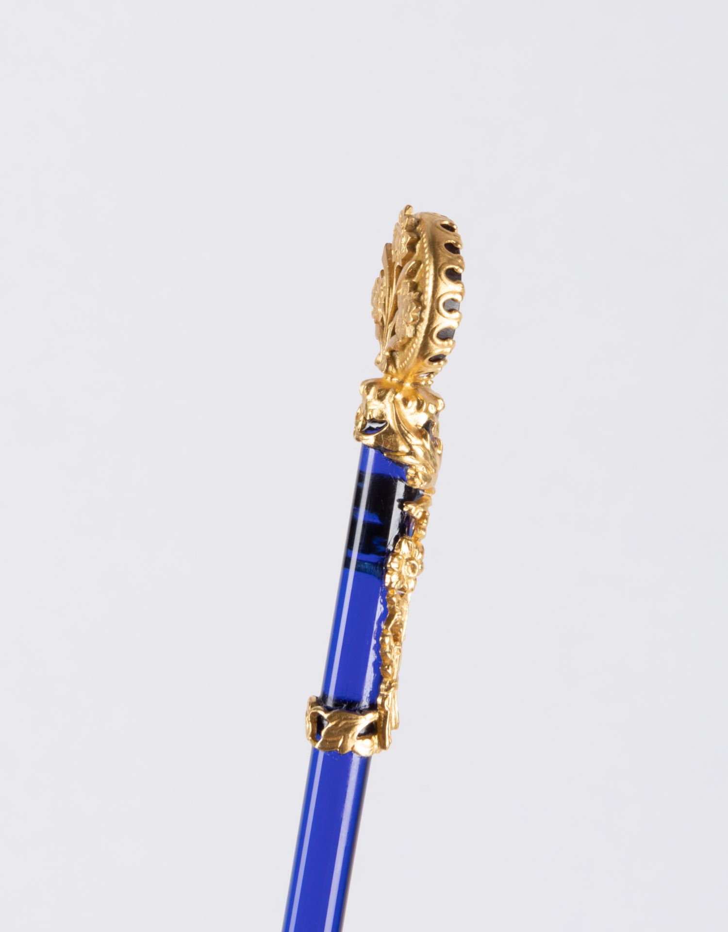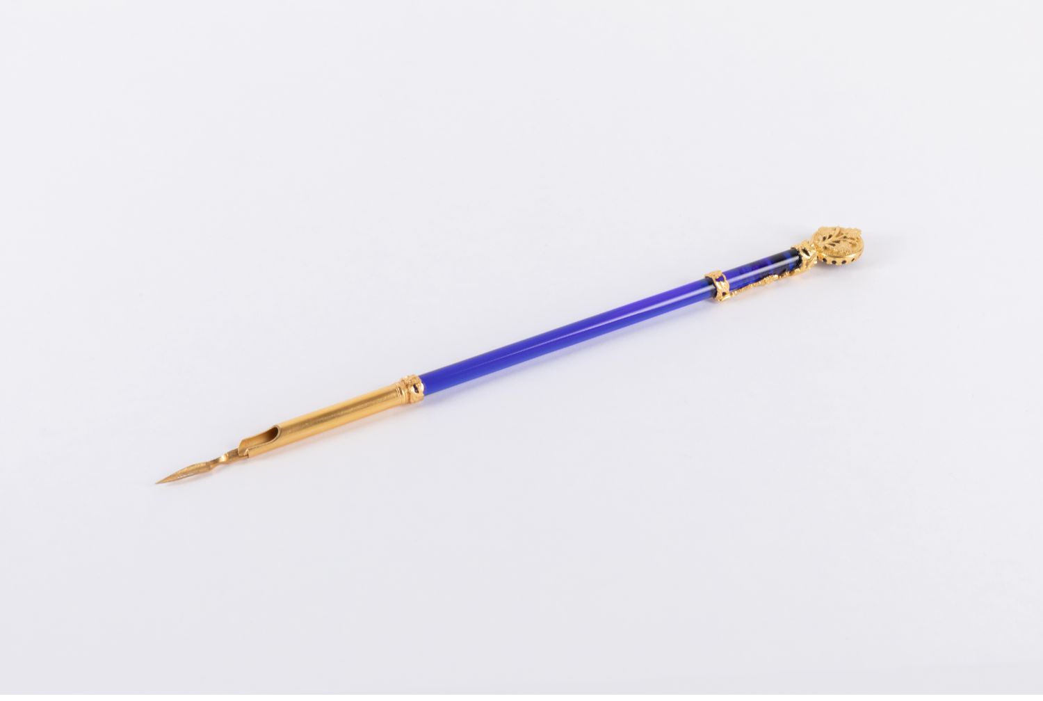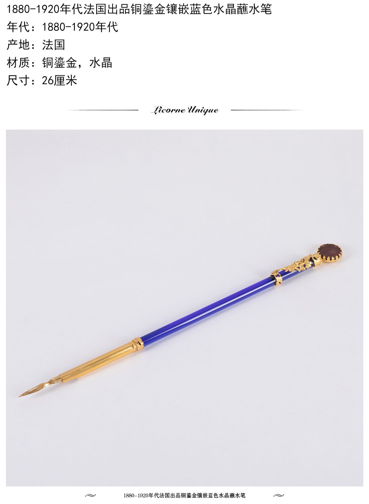 独角鹿西洋古董1880-1920年代法国出品铜鎏金镶嵌蓝色水晶蘸水笔