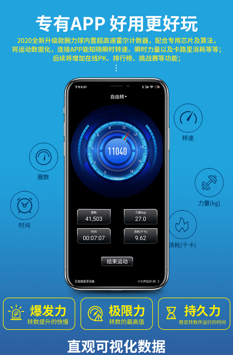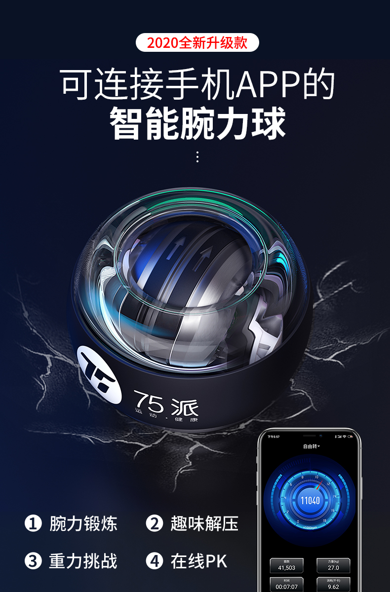 75派旗舰店 一大红色文创联名款智能腕力球Q20握力球100公斤自启静音