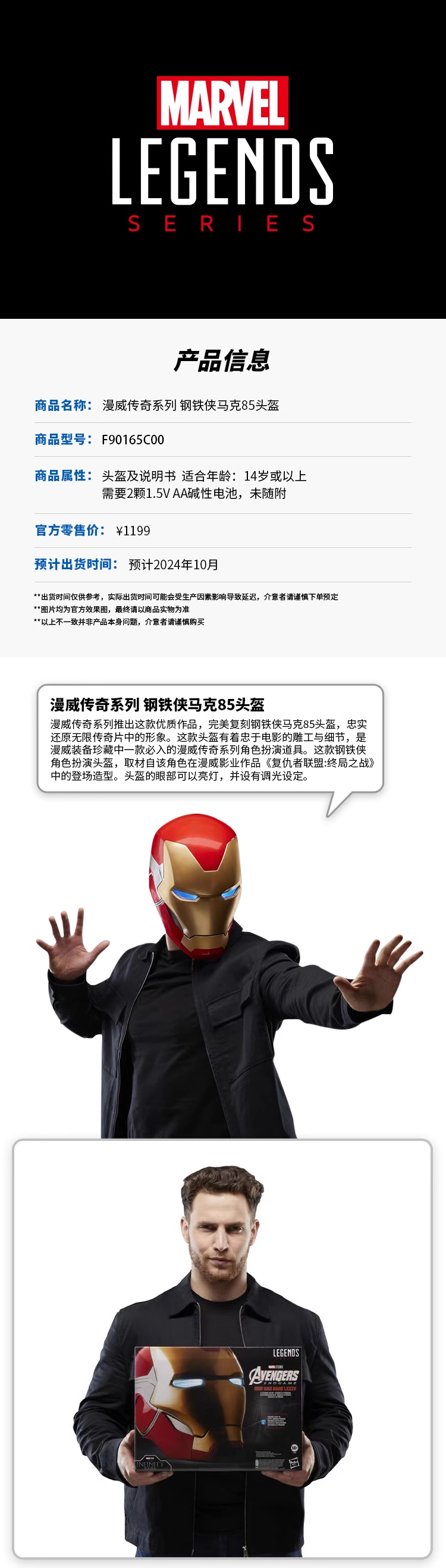 Hasbro 漫威传奇系列钢铁侠马克85电子头盔HASCF90165C00