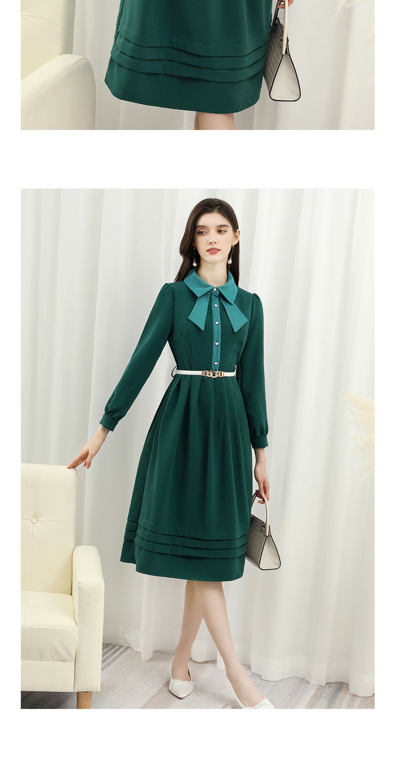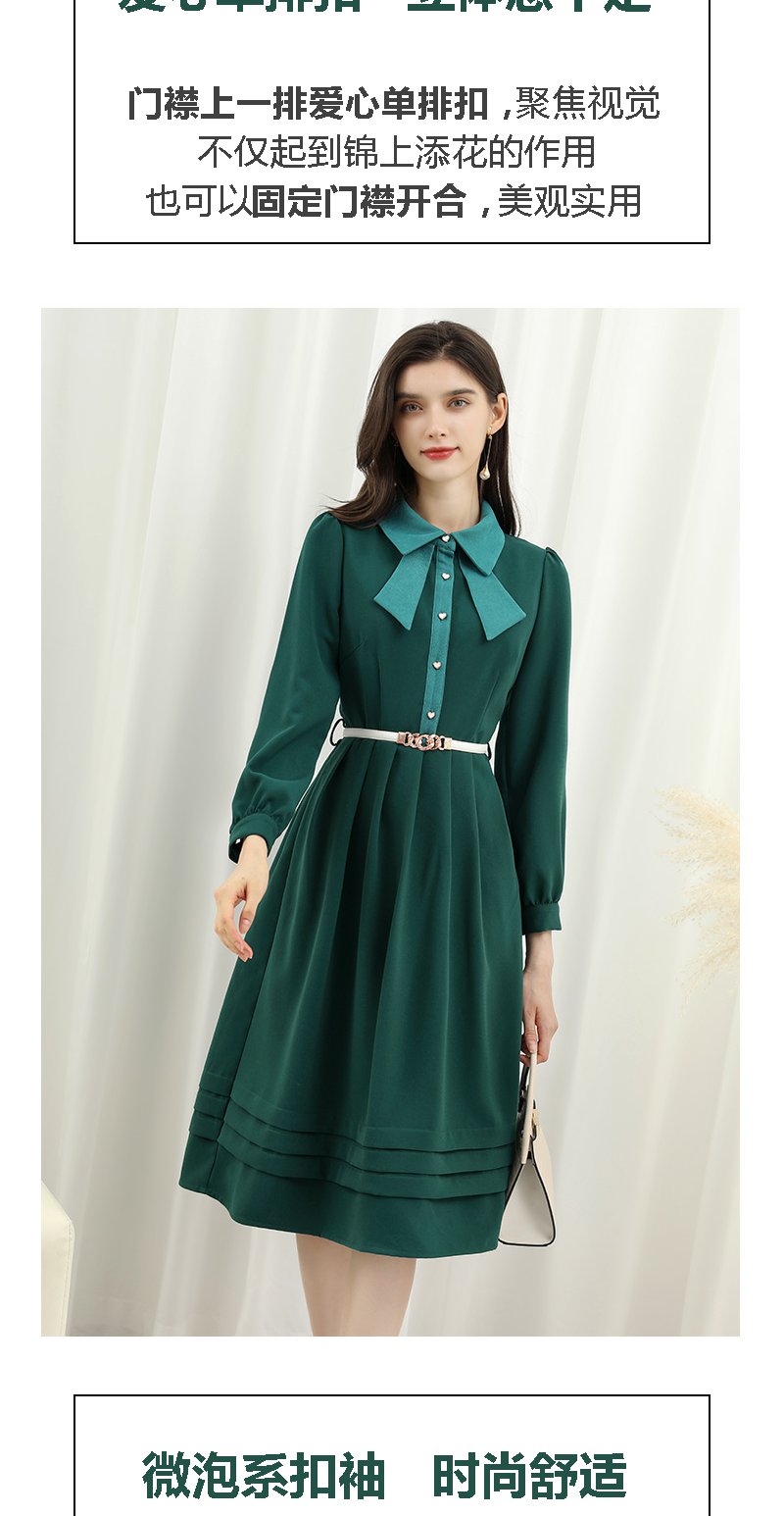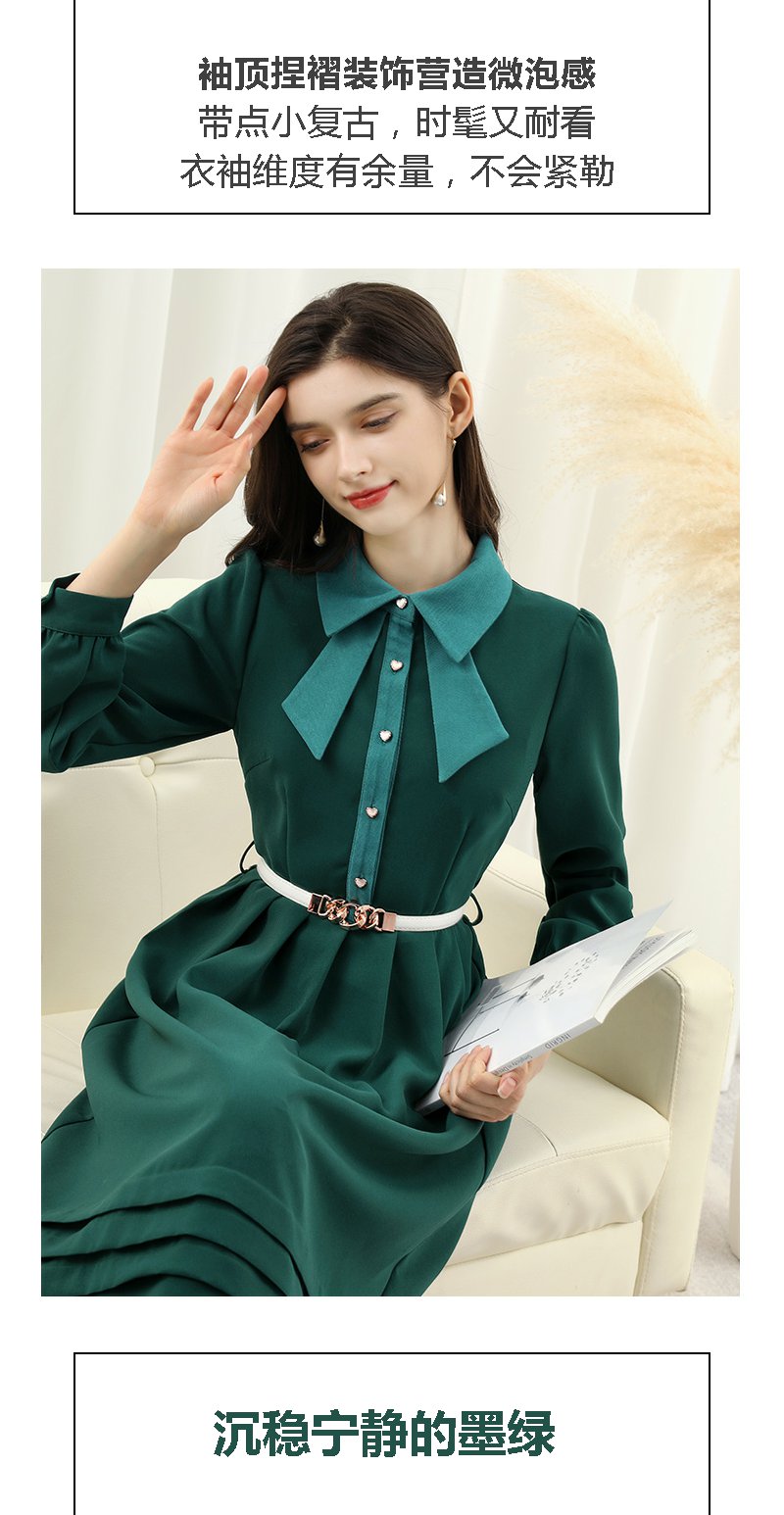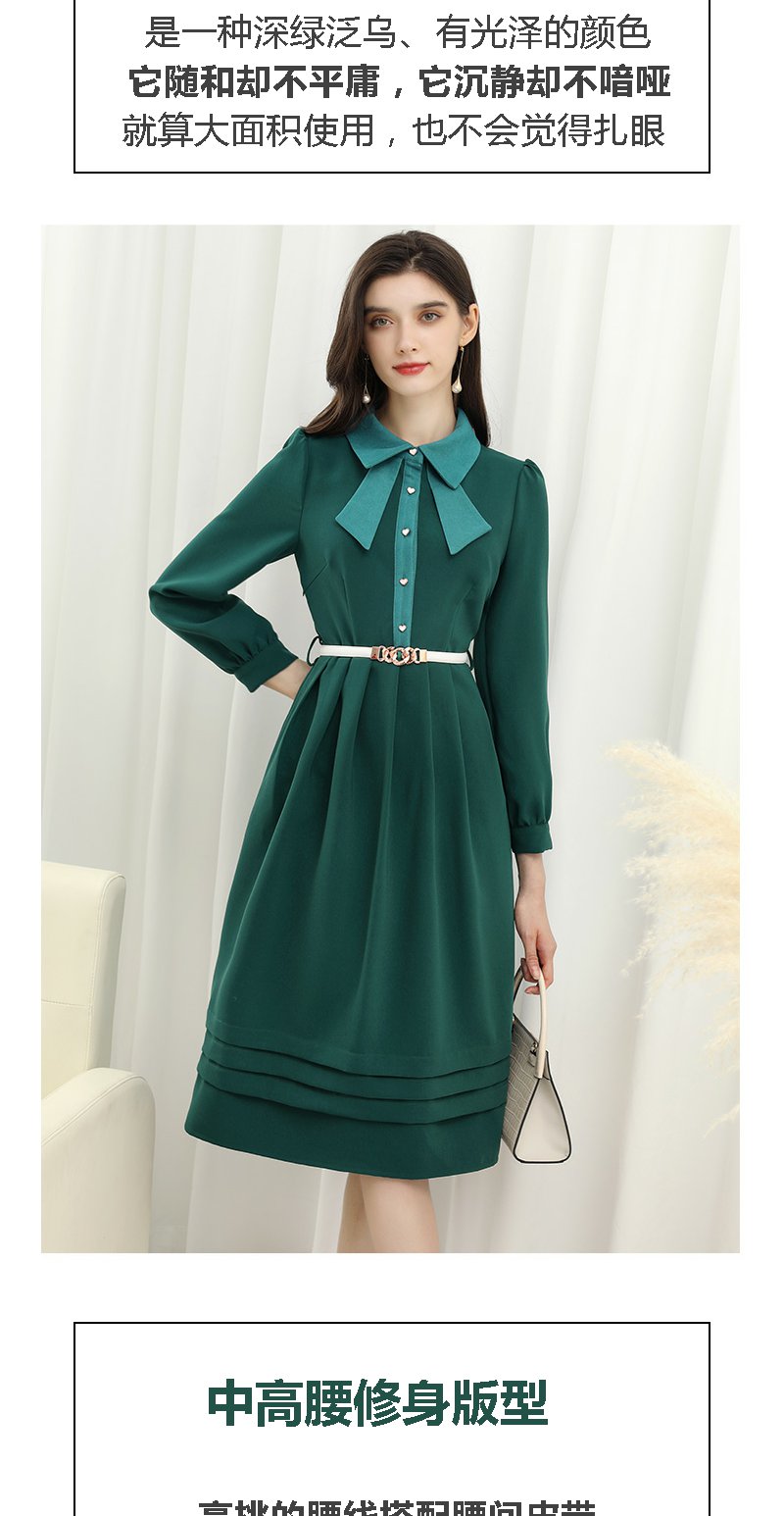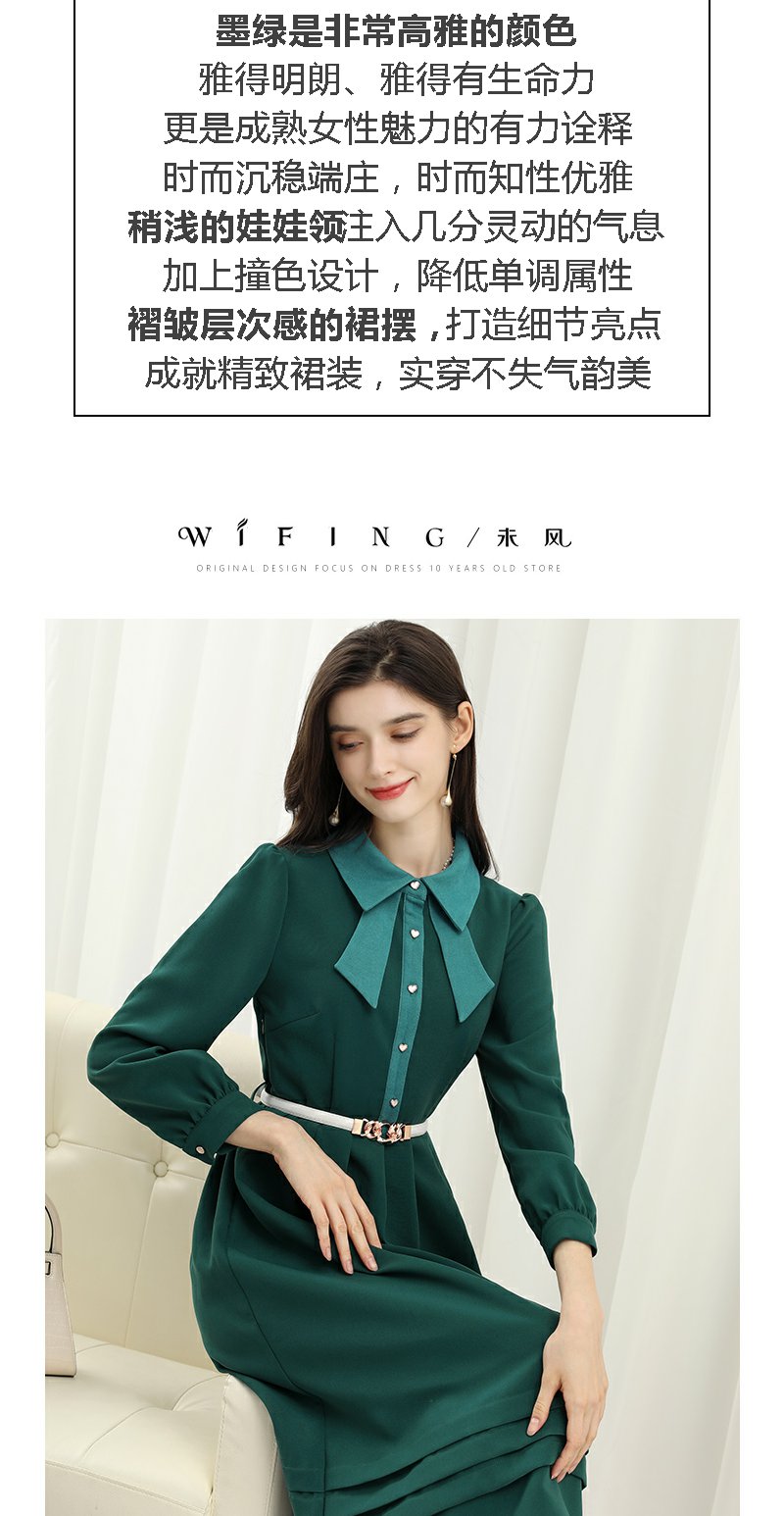 未风绿色娃娃领连衣裙女秋冬2025年春季新款女装显瘦打底内搭裙子