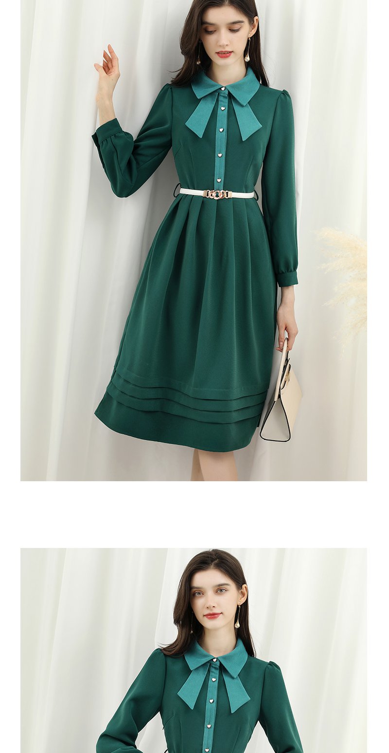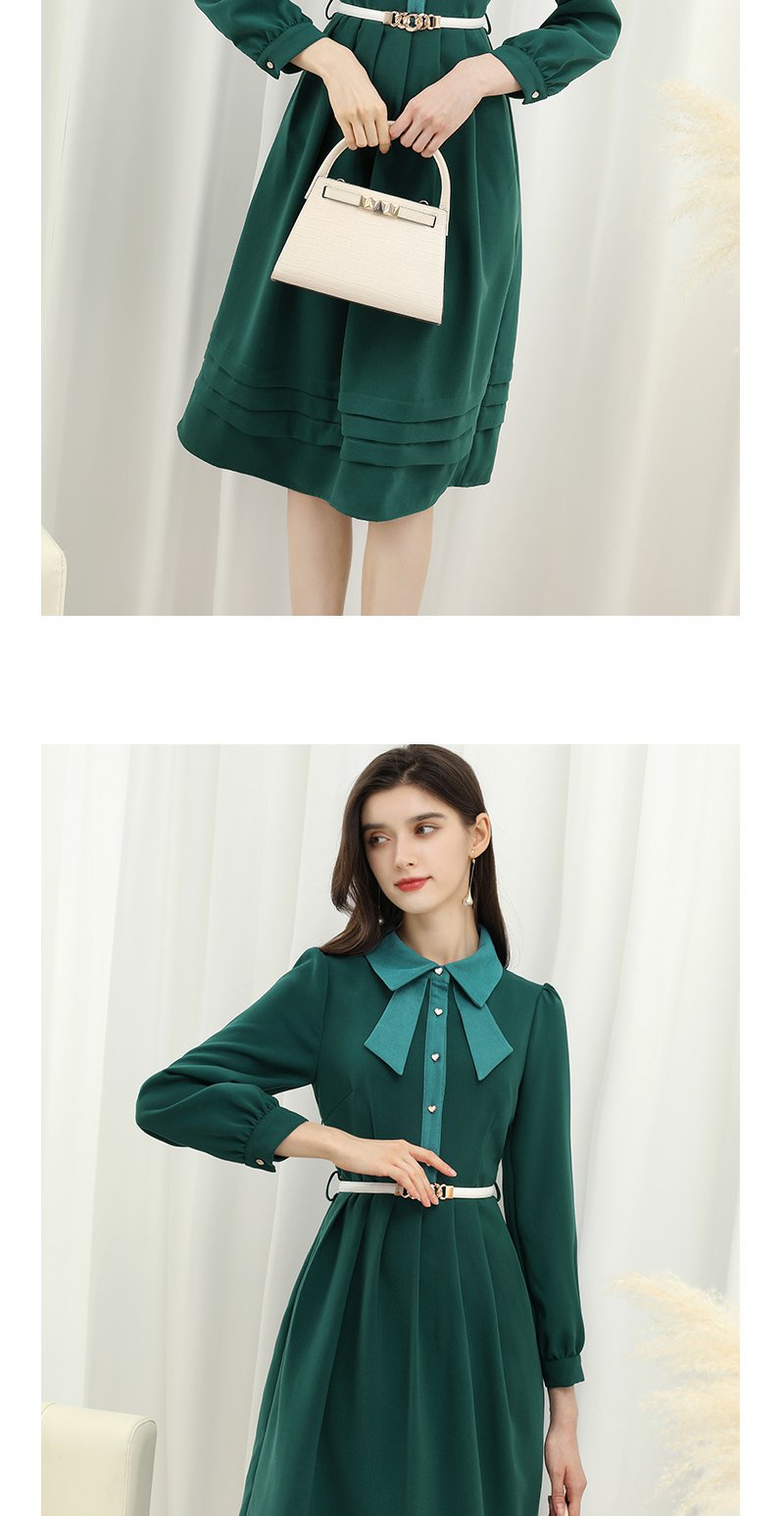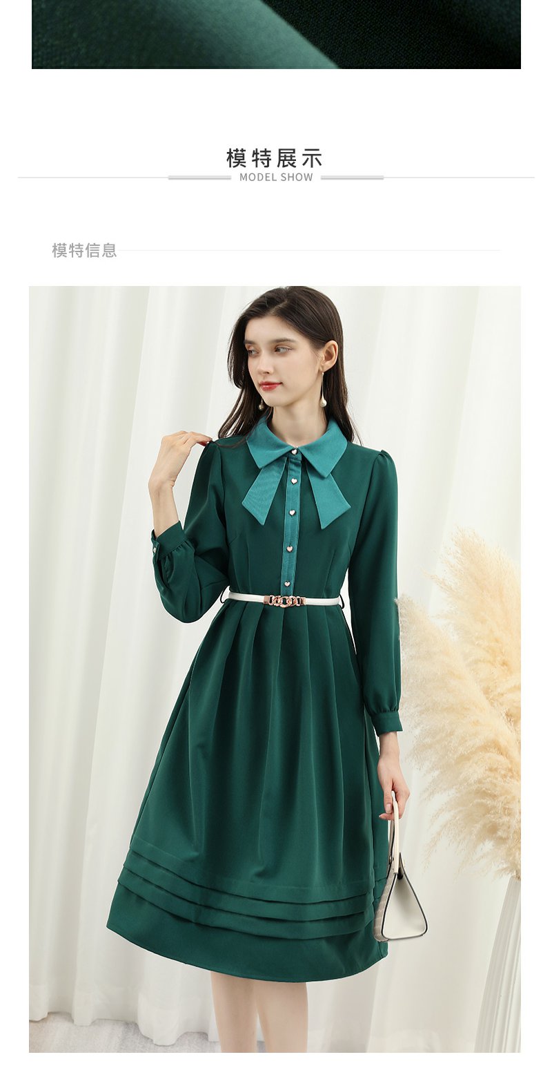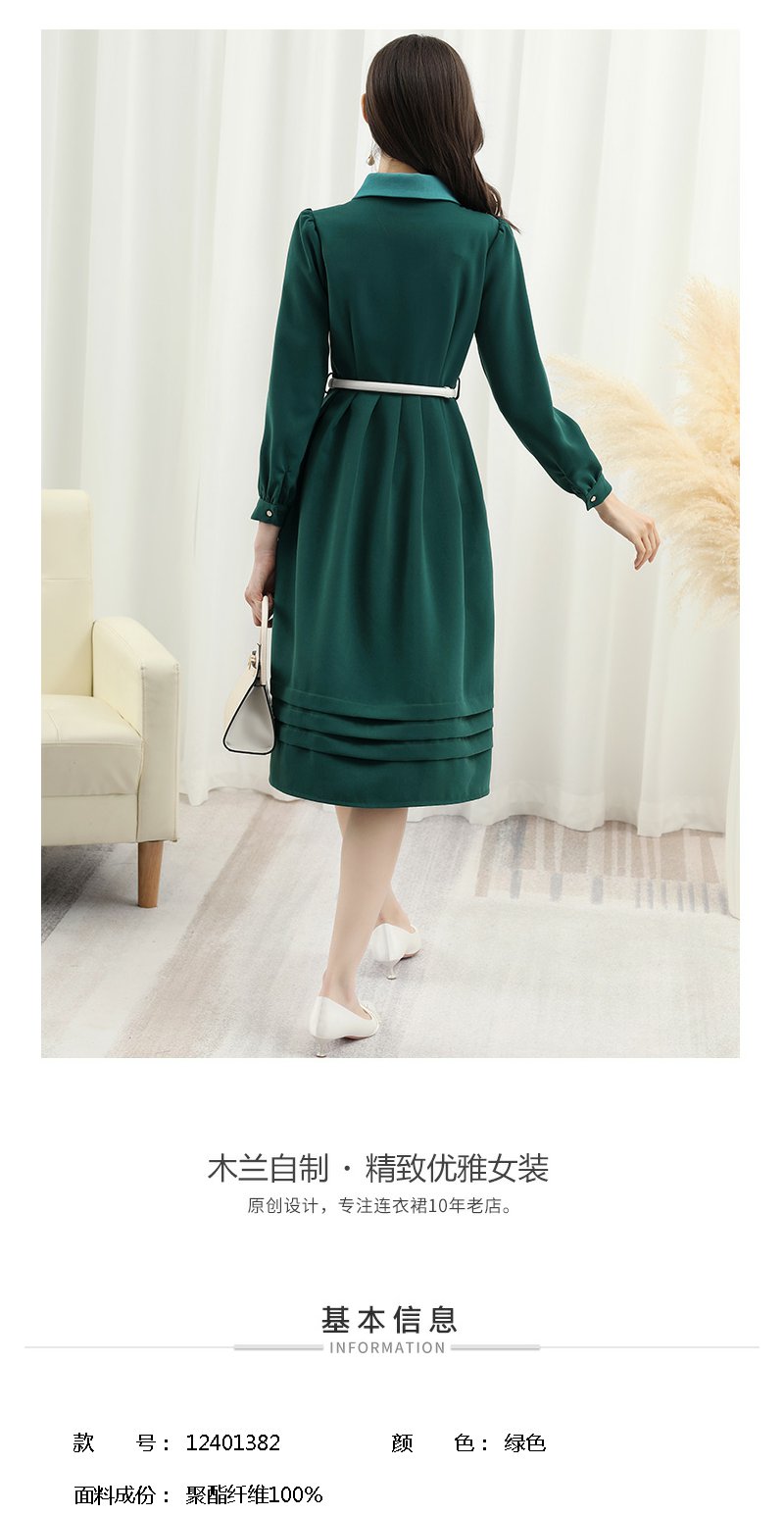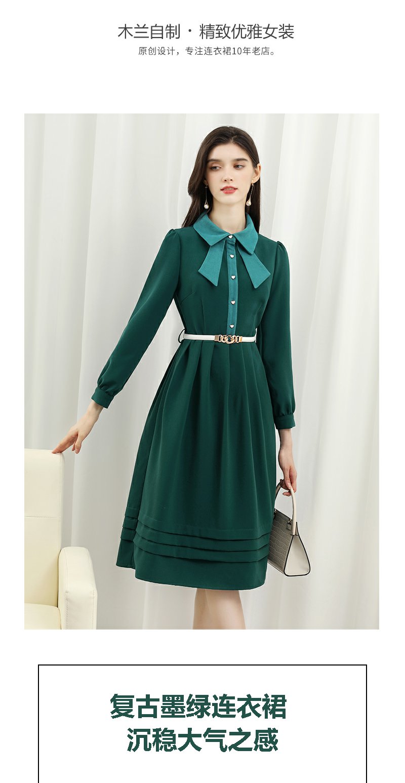 未风绿色娃娃领连衣裙女秋冬2025年春季新款女装显瘦打底内搭裙子