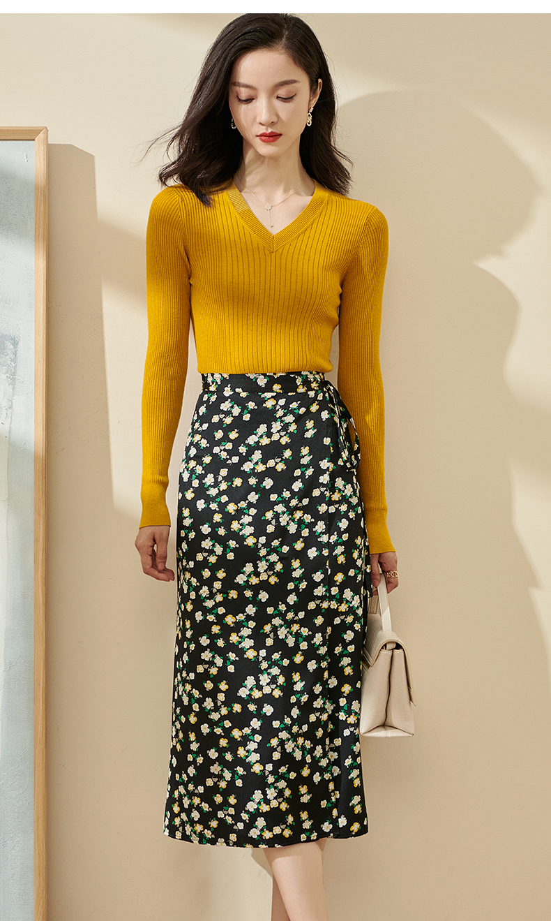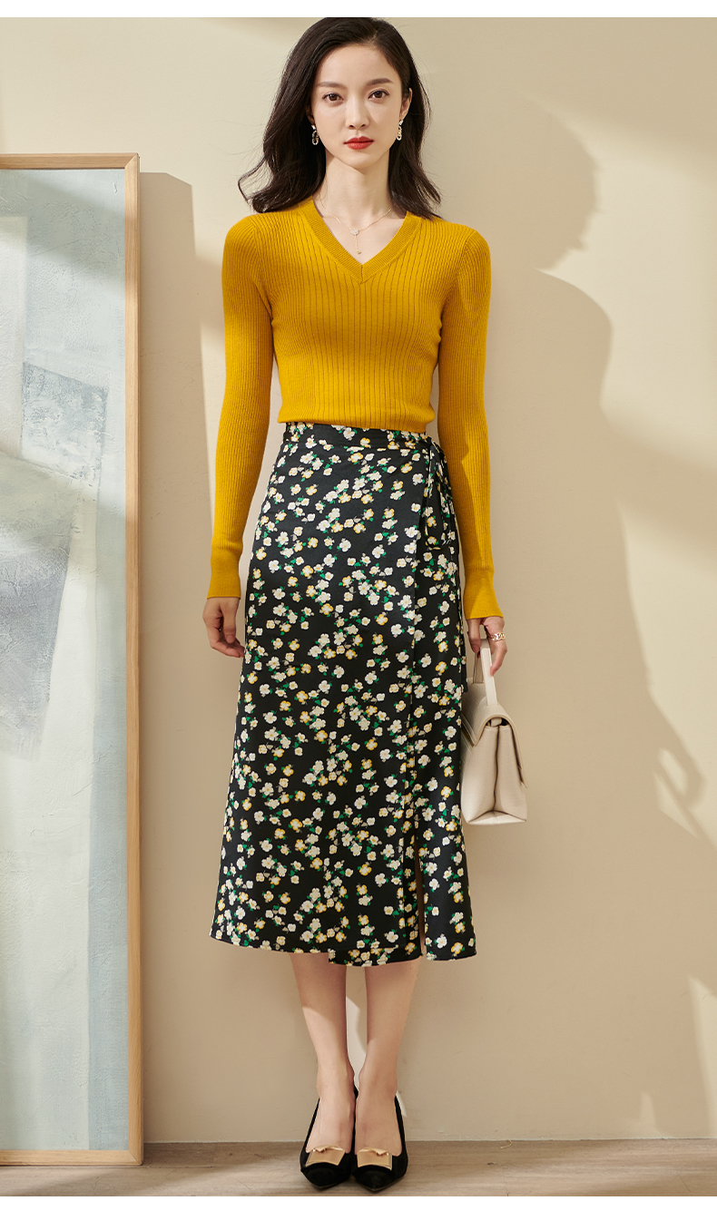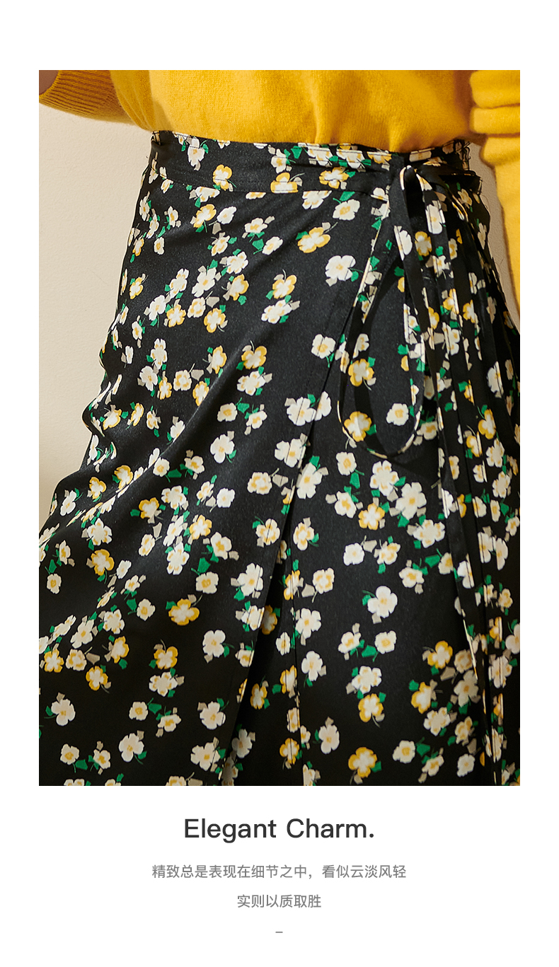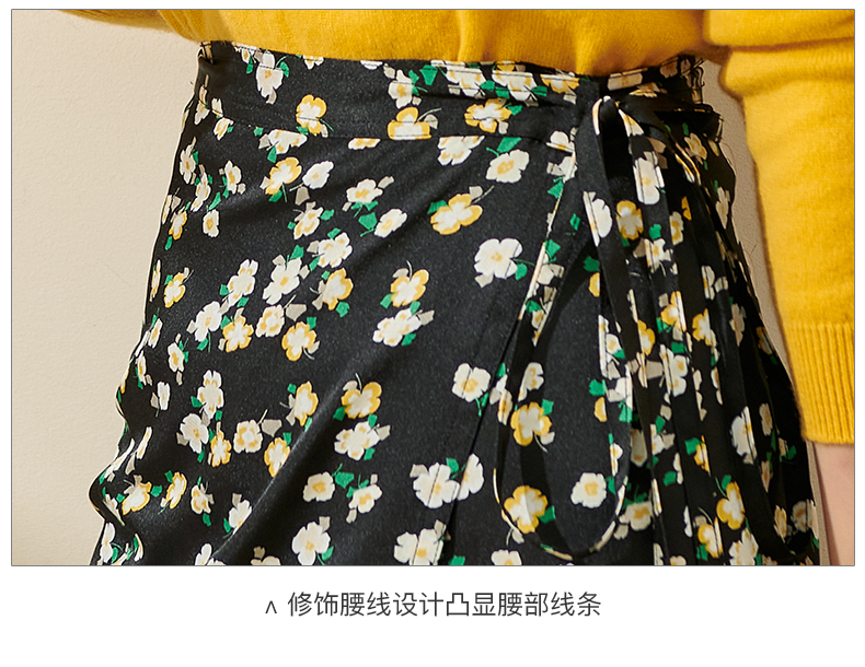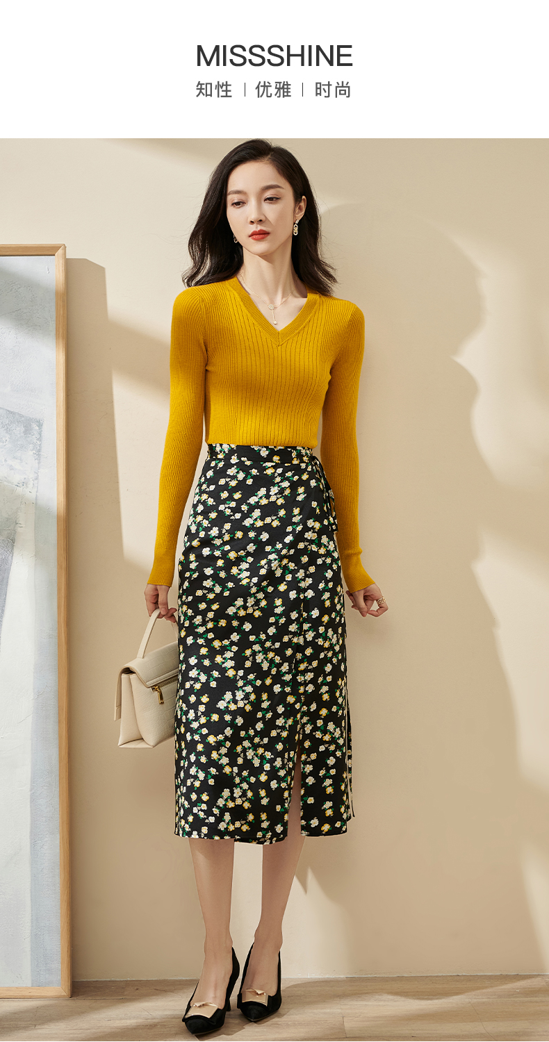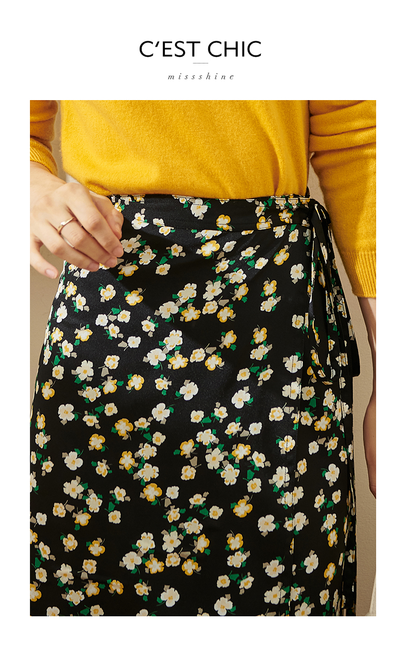 剩S/L 米思阳碎花半身裙秋季新款开叉高腰直筒裙气质复古中长裙2055