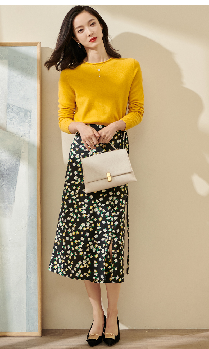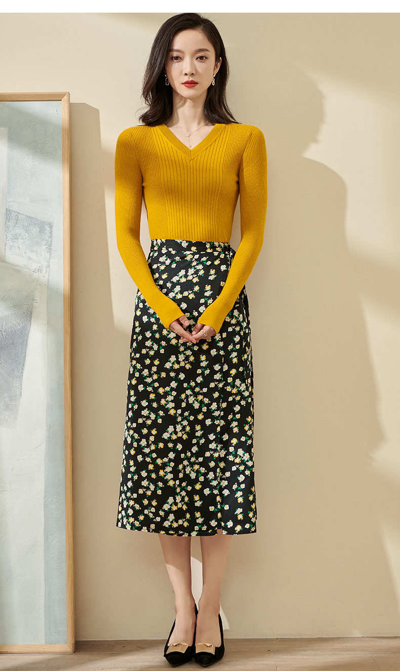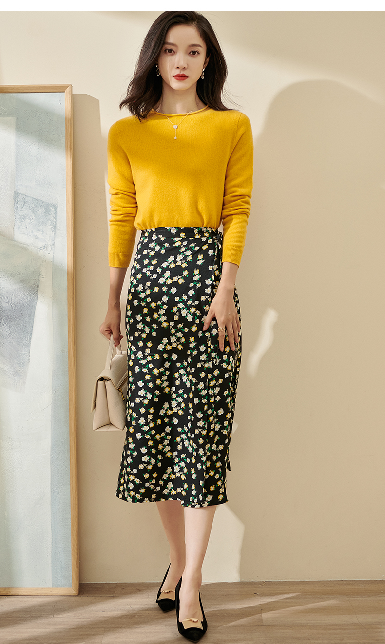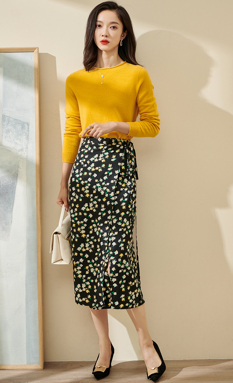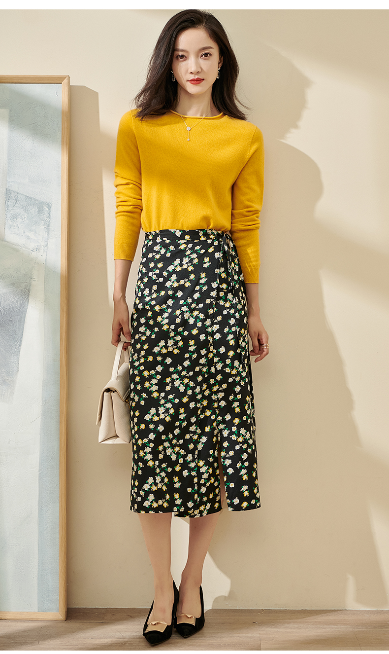 剩S/L 米思阳碎花半身裙秋季新款开叉高腰直筒裙气质复古中长裙2055