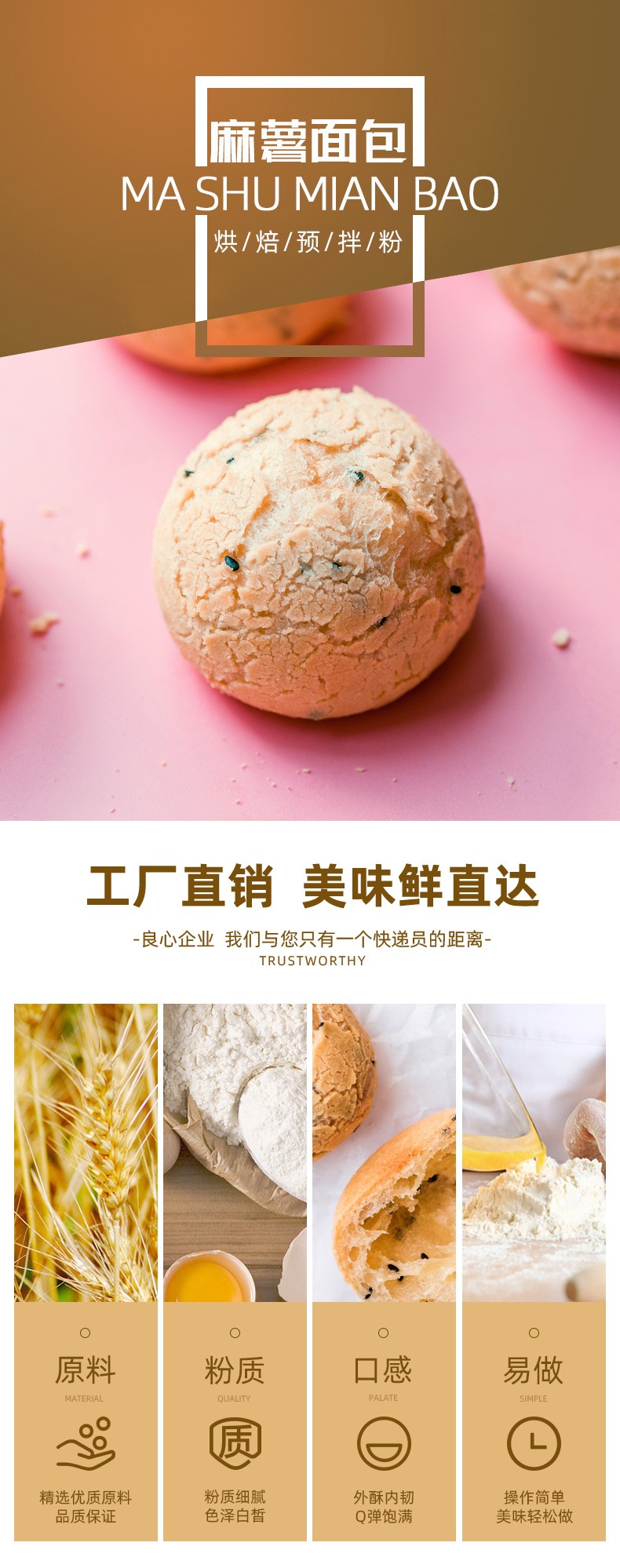 新博明【麻薯面包预拌粉1kg】商用家用便捷版麻薯面包粉