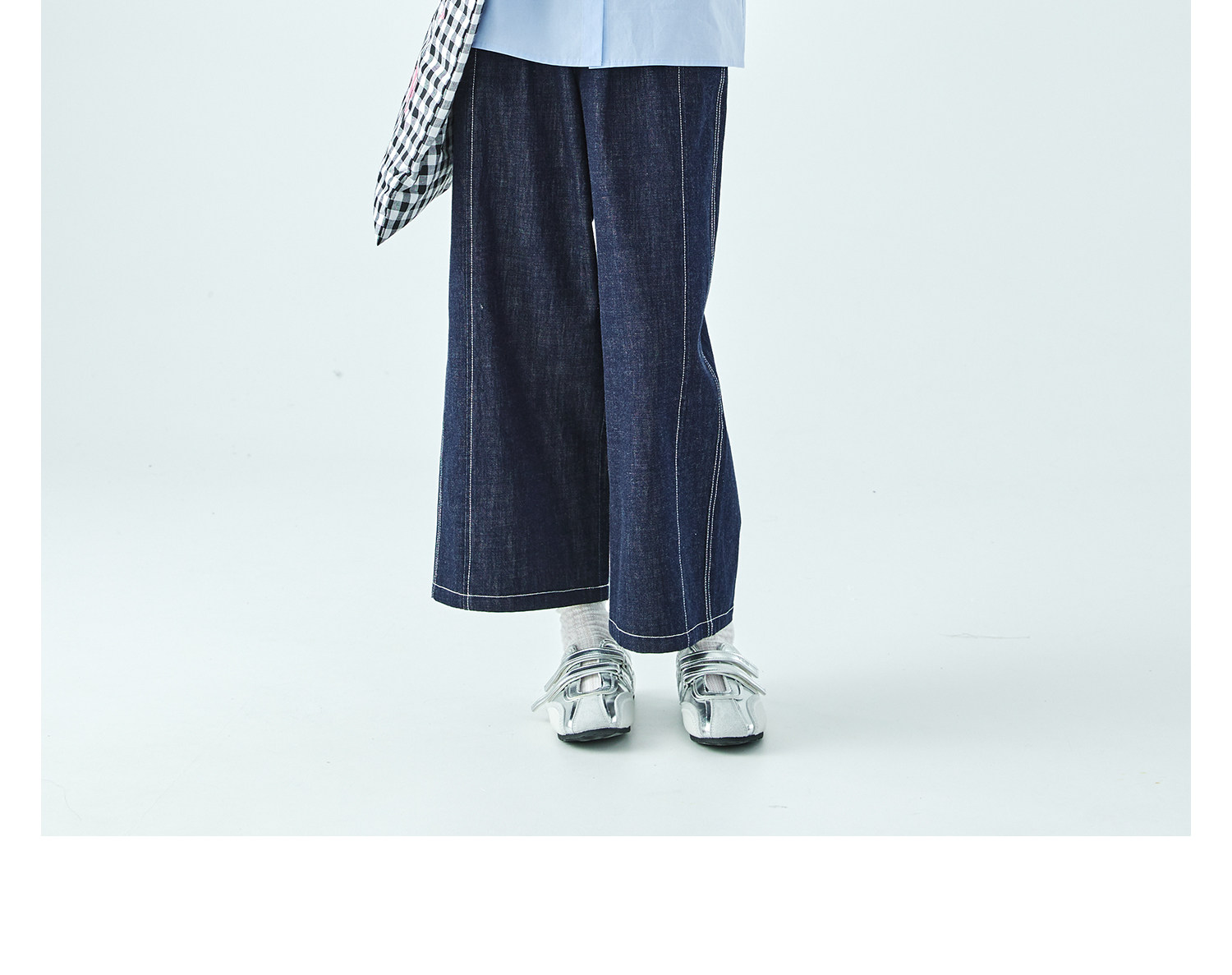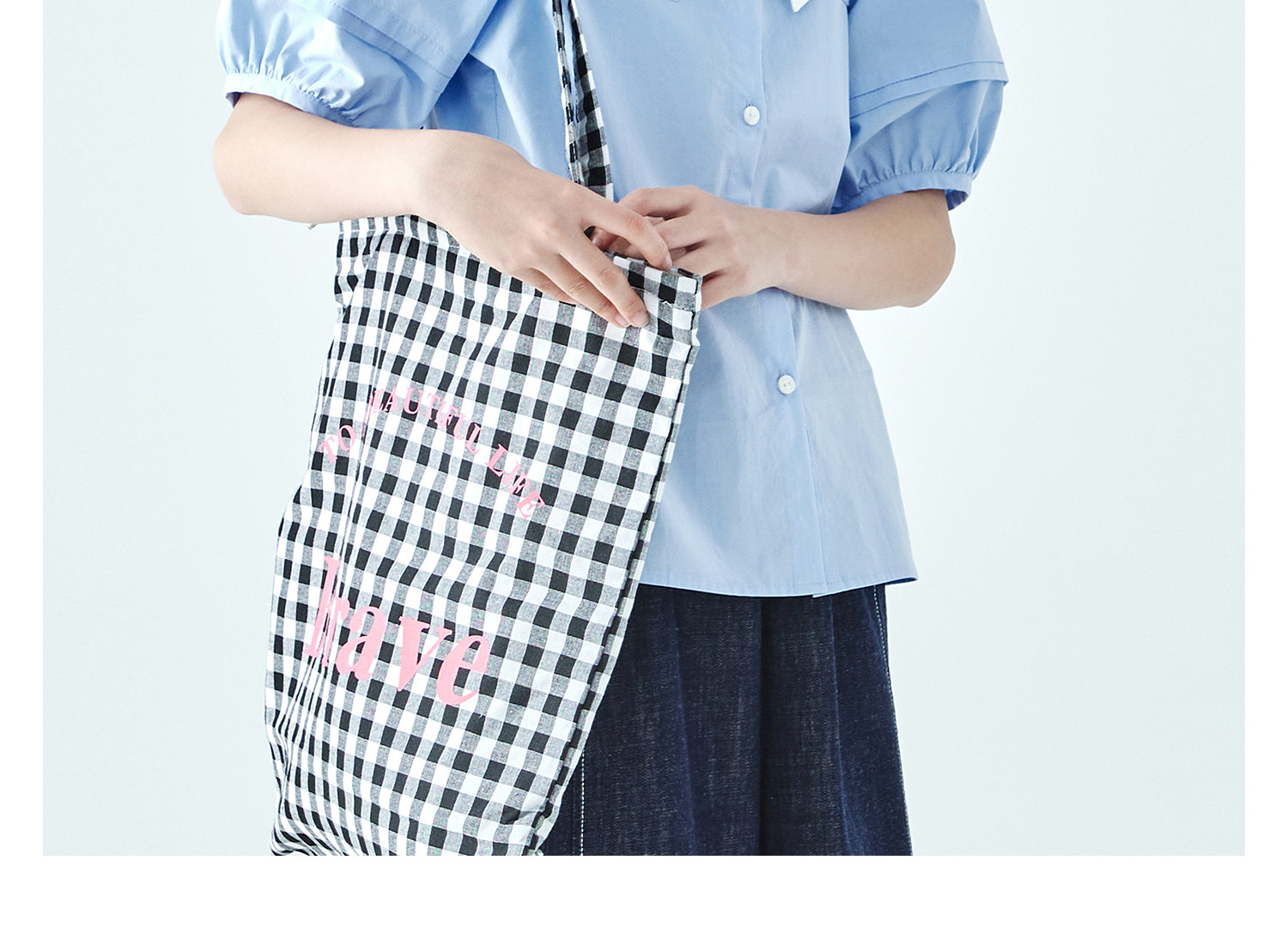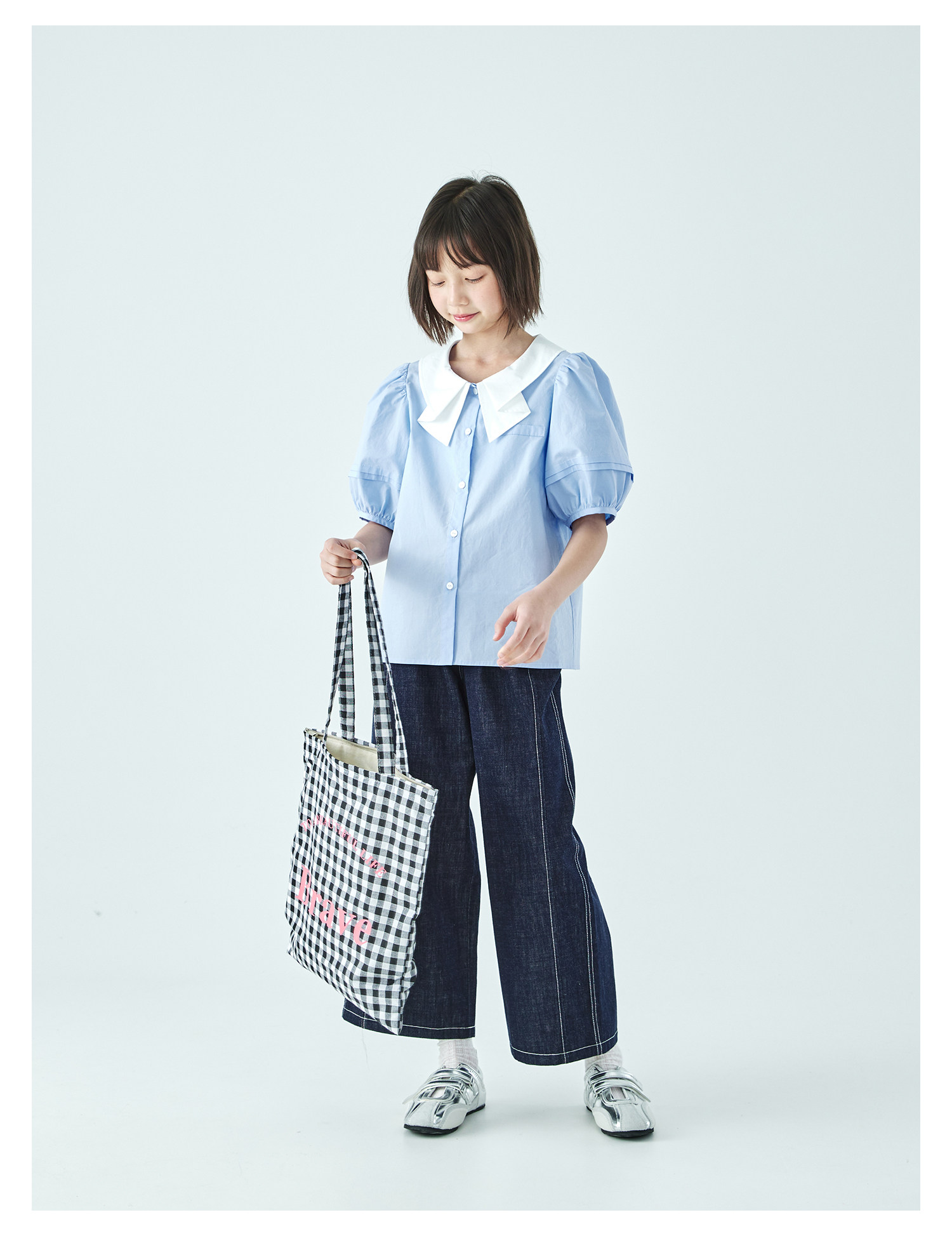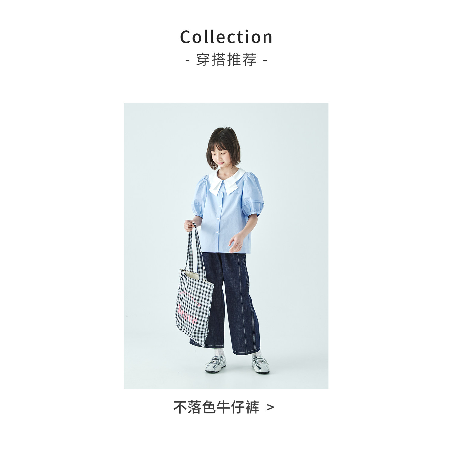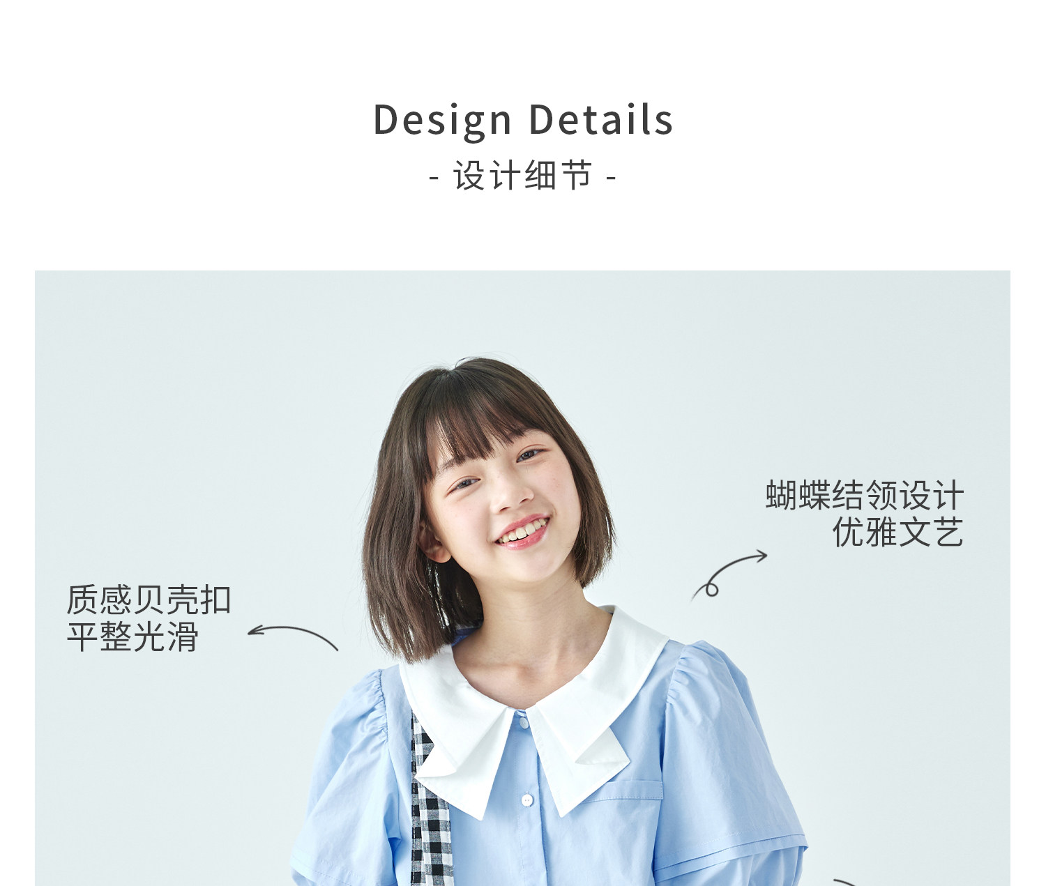 棵初26年夏季新款亲子中大女童蝴蝶结小衫泡泡袖蓝白撞色纯棉短袖