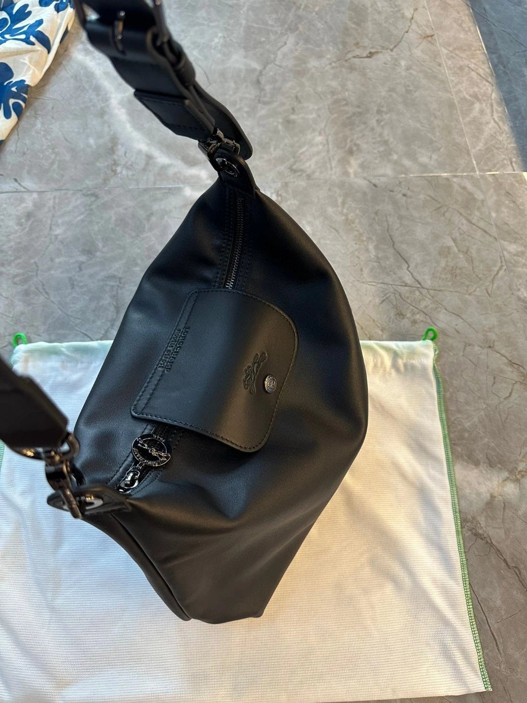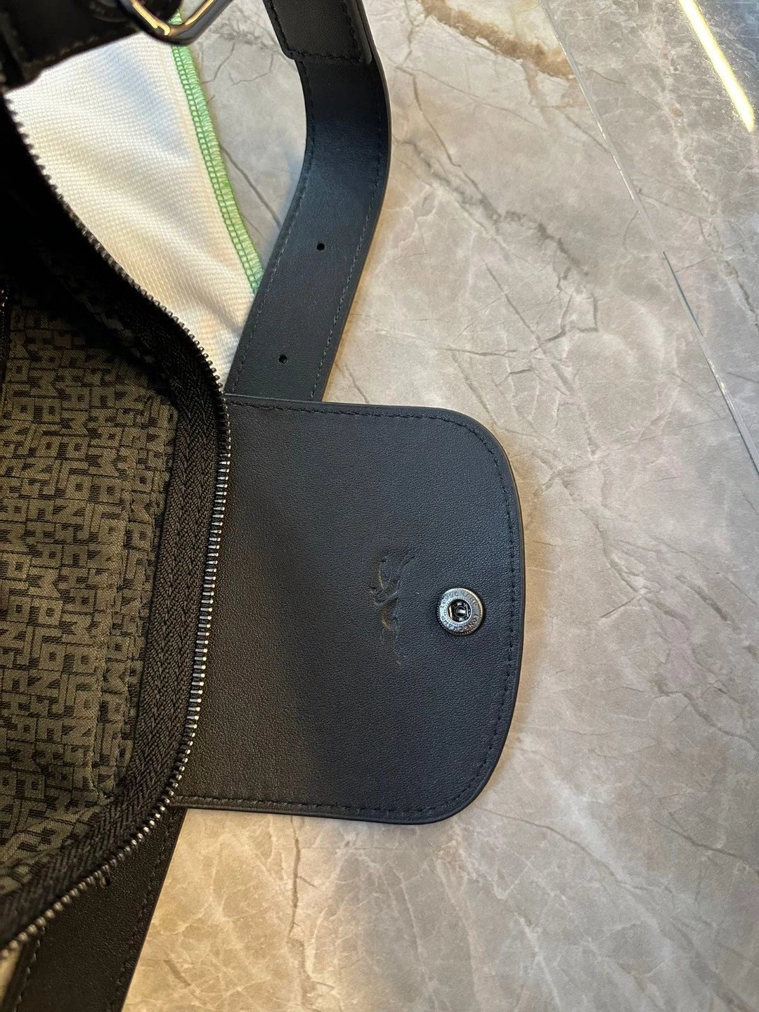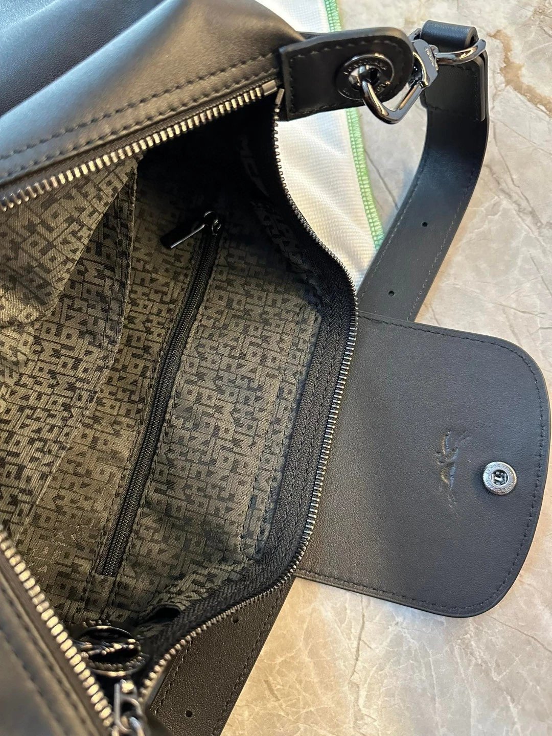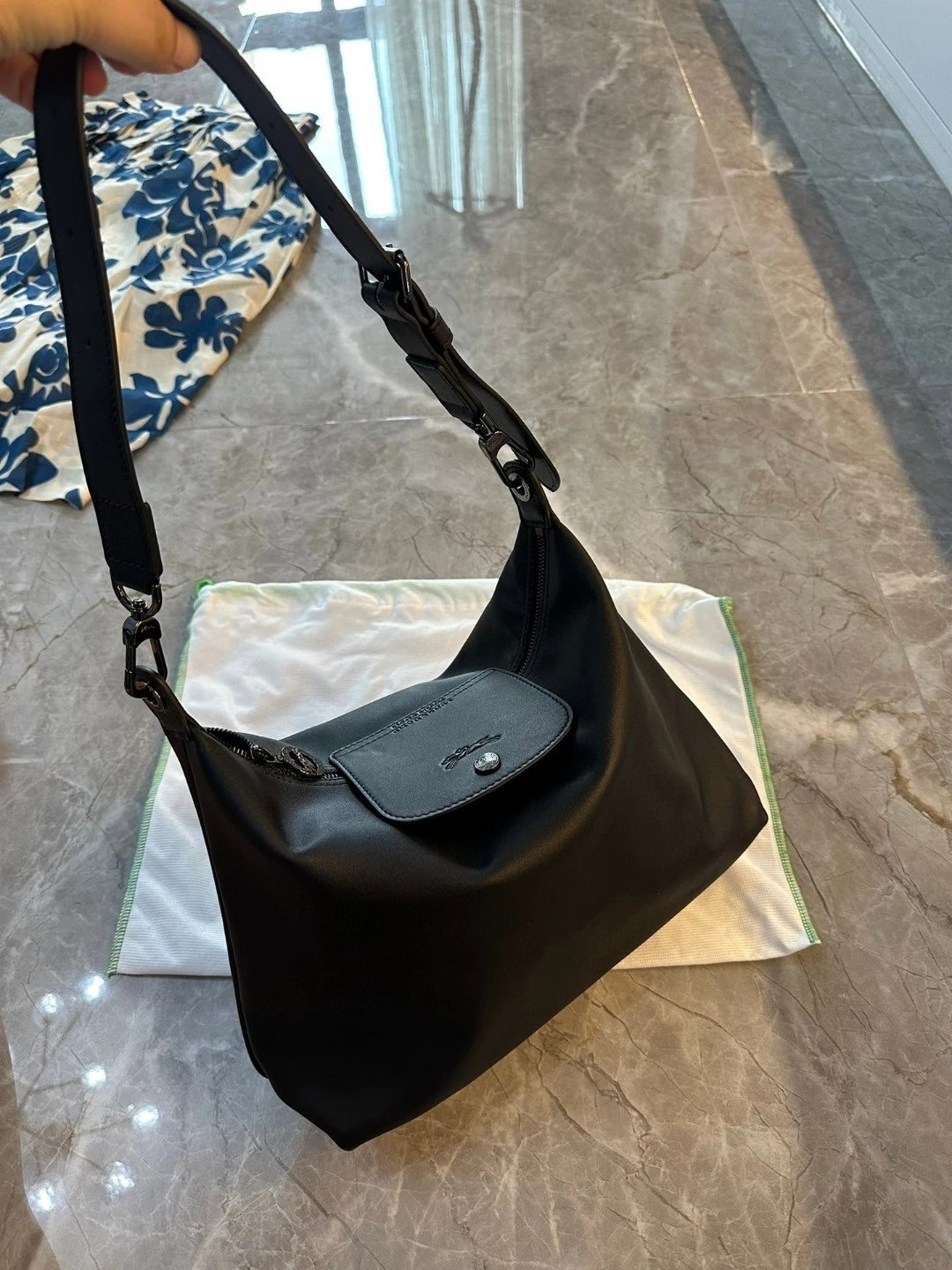 这个还是哑光的黑。但因为皮料好所以很有光泽,喜欢这种真正国外进口的皮料,他们的皮料虽然是亚光,但经得住各种场合。就是别人想摸一下你的包也好。你参加宴会别人灯光下看到你的包的时候。这个都是拿得出手的。不是见光死的那种皮料。他一定会给你自信。