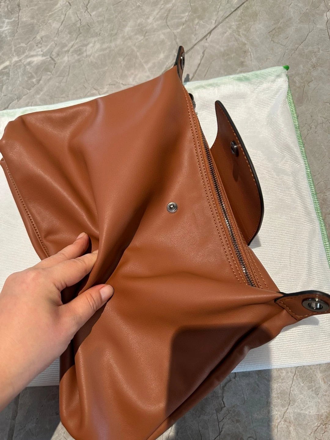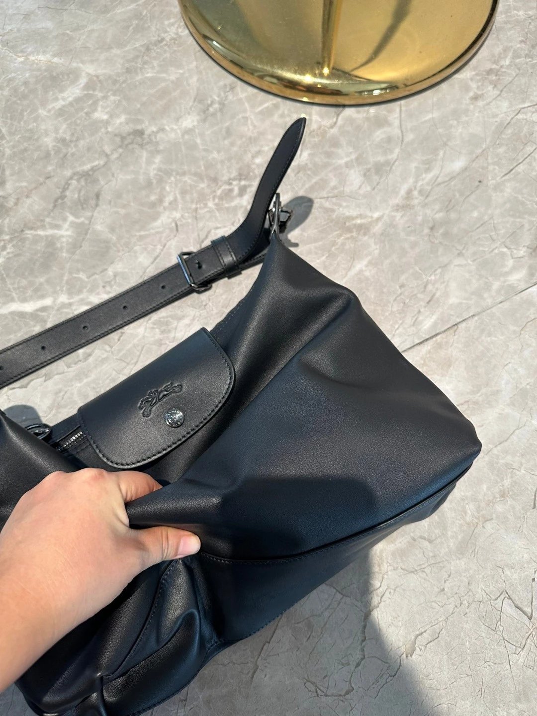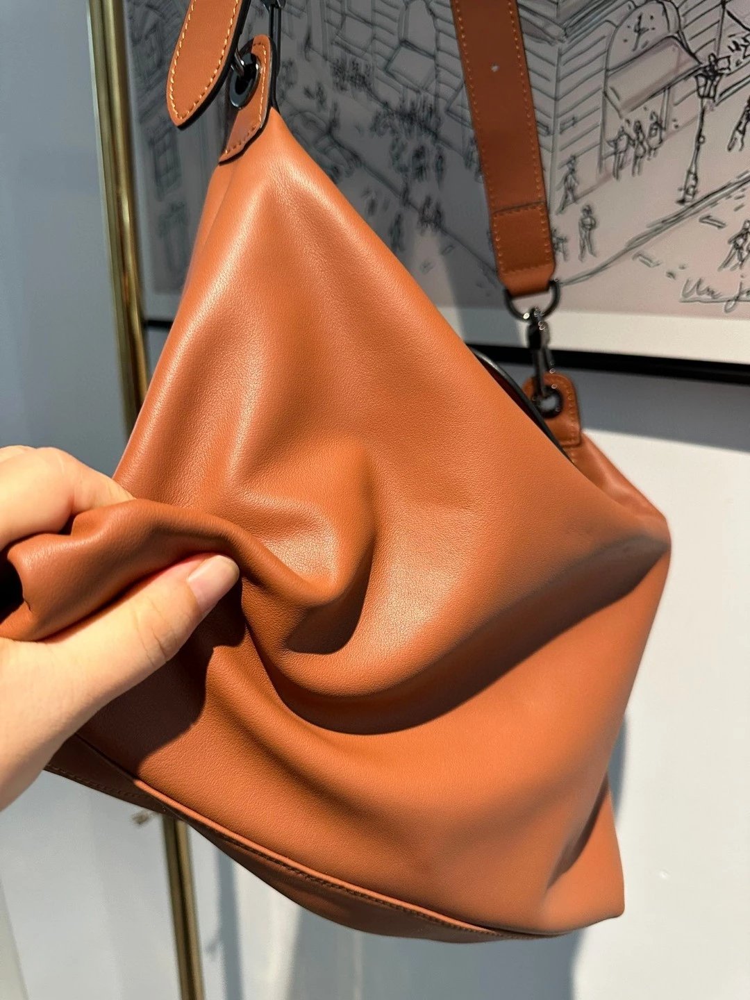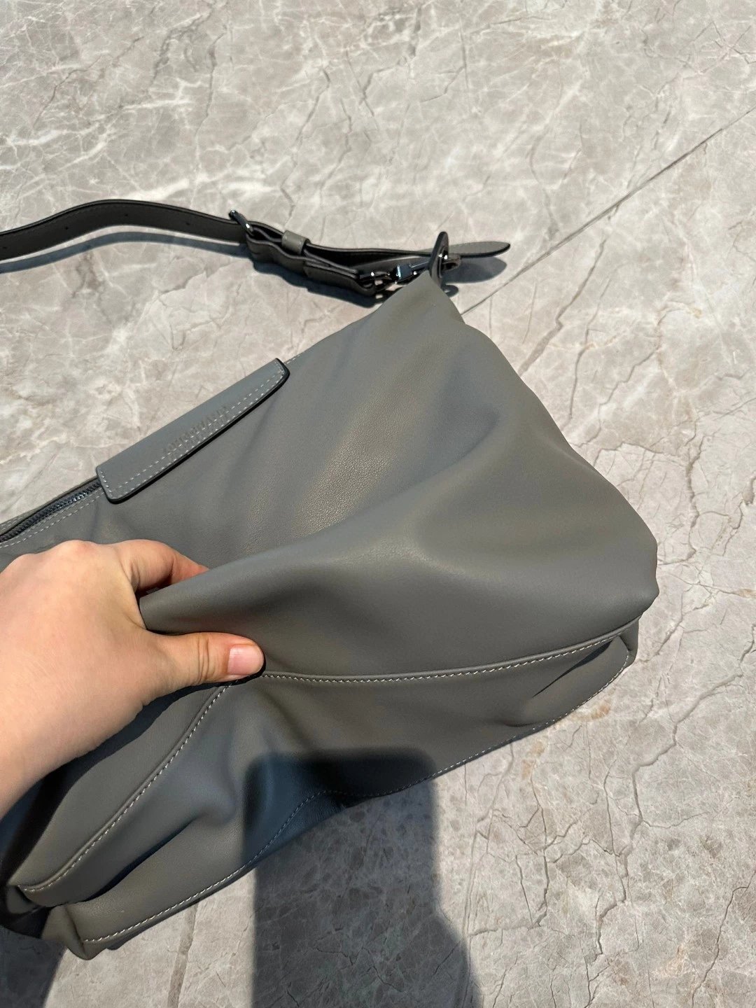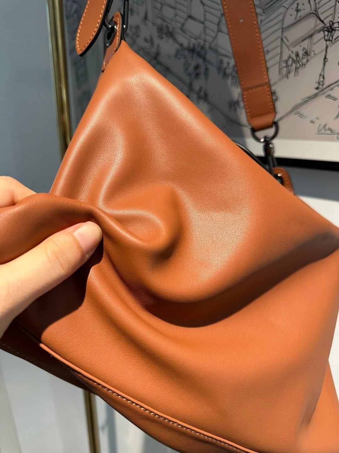 不是那种厚质挺括的牛皮,不知要怎么形容,牛皮有很多种,柔软的也有很多种,但像龙骧这种处理皮质的工艺真的很少见,将皮质处理的不止柔,不止软,还极轻,肉感超好,这才是这个包卖4000多的原因!!