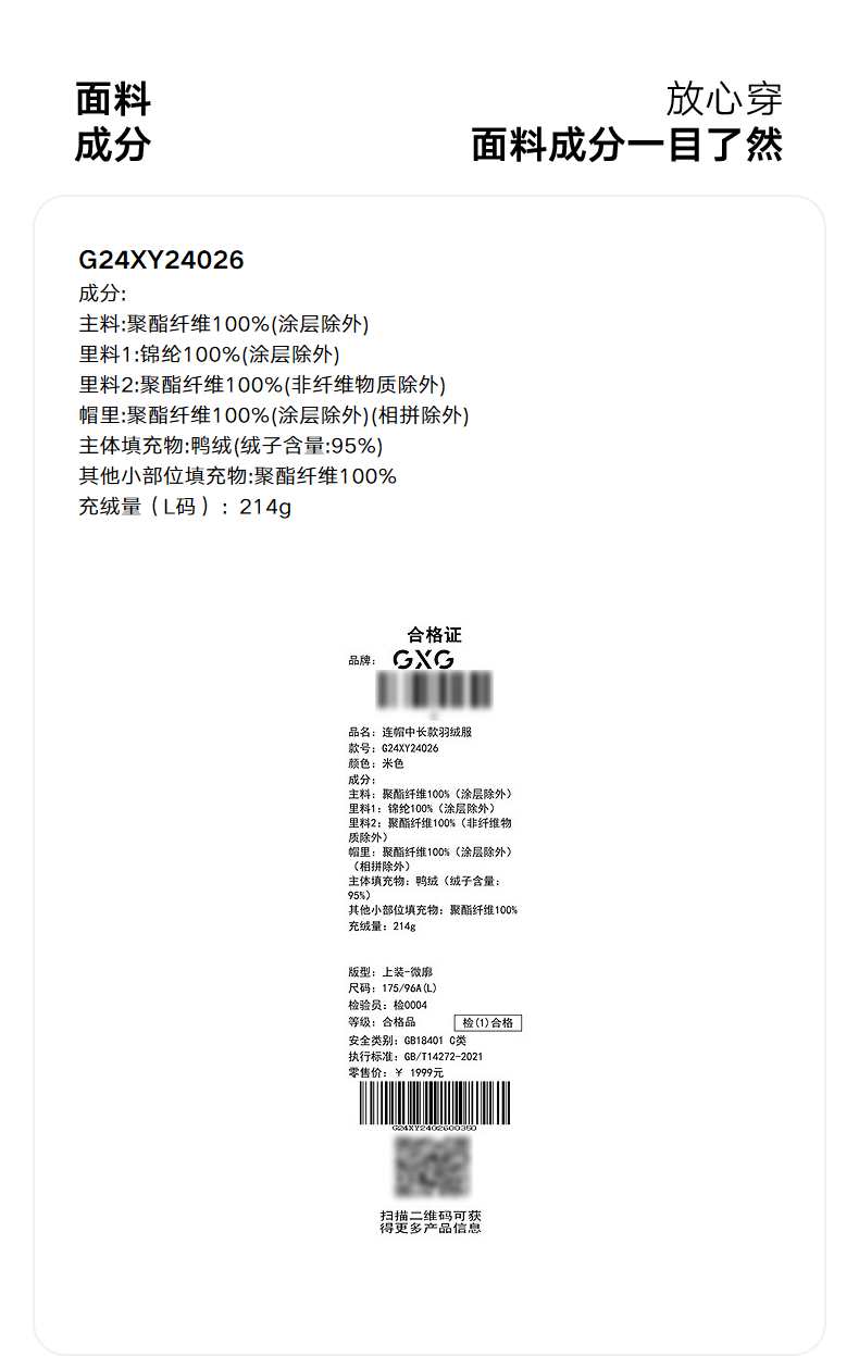 GXG男装 工装中长款羽绒服男通勤外套24冬热卖G24XY24026