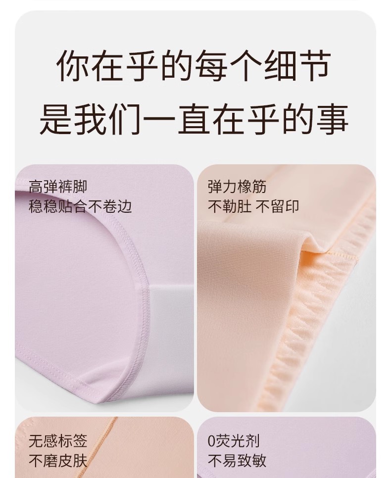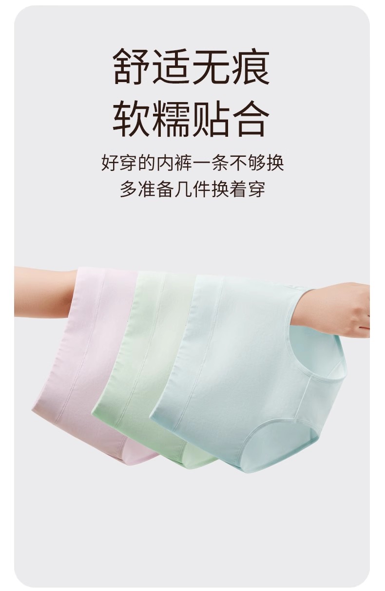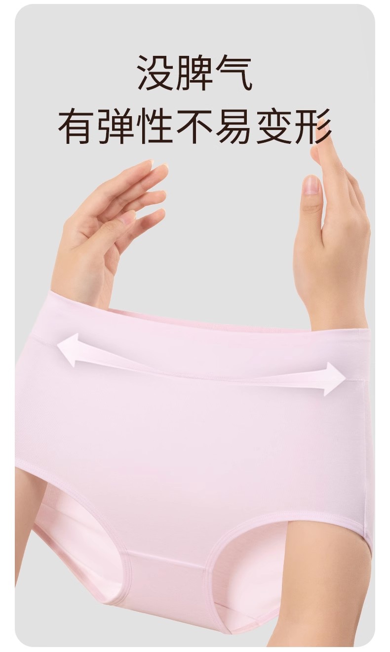 洁丽雅3条装高腰纯棉女士内裤收腹提臀高弹亲肤纯棉内裆内裤女