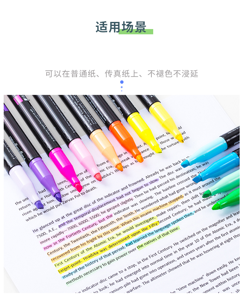 慕那美荧光笔06021紫色 标记笔学生用做笔记神器彩色记号笔粗划重点不掉色
