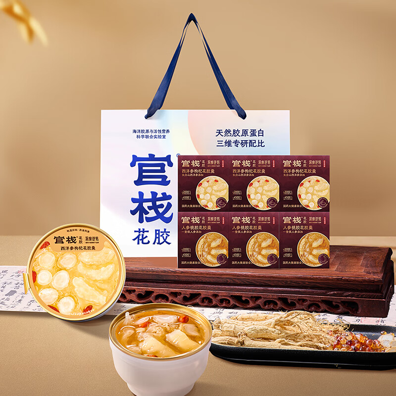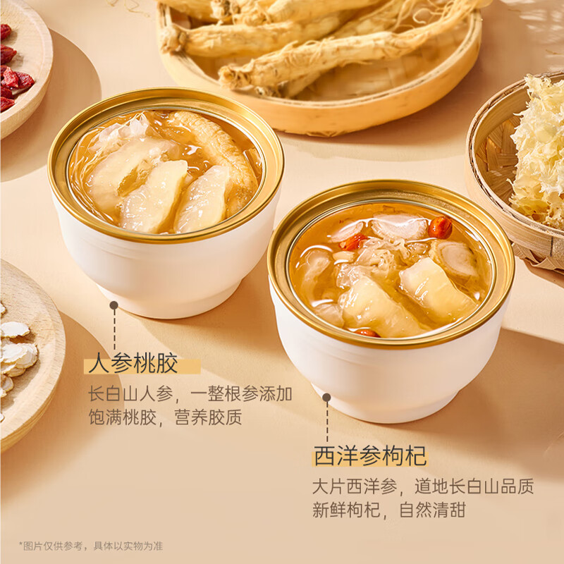 【分仓直发包邮】官栈×深度逆转花胶羹组合装168g*6碗礼袋装(人参桃胶花胶羹168g*3碗+西洋参枸杞花胶羹168g*3碗)