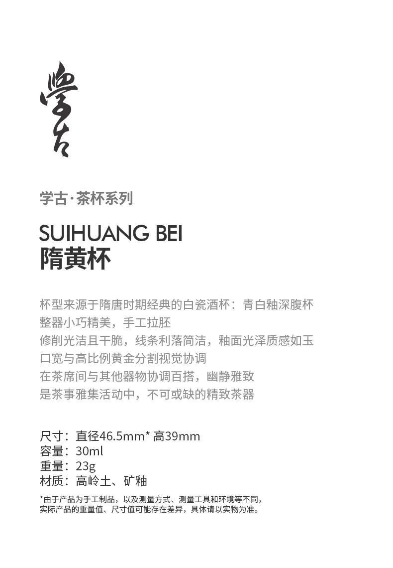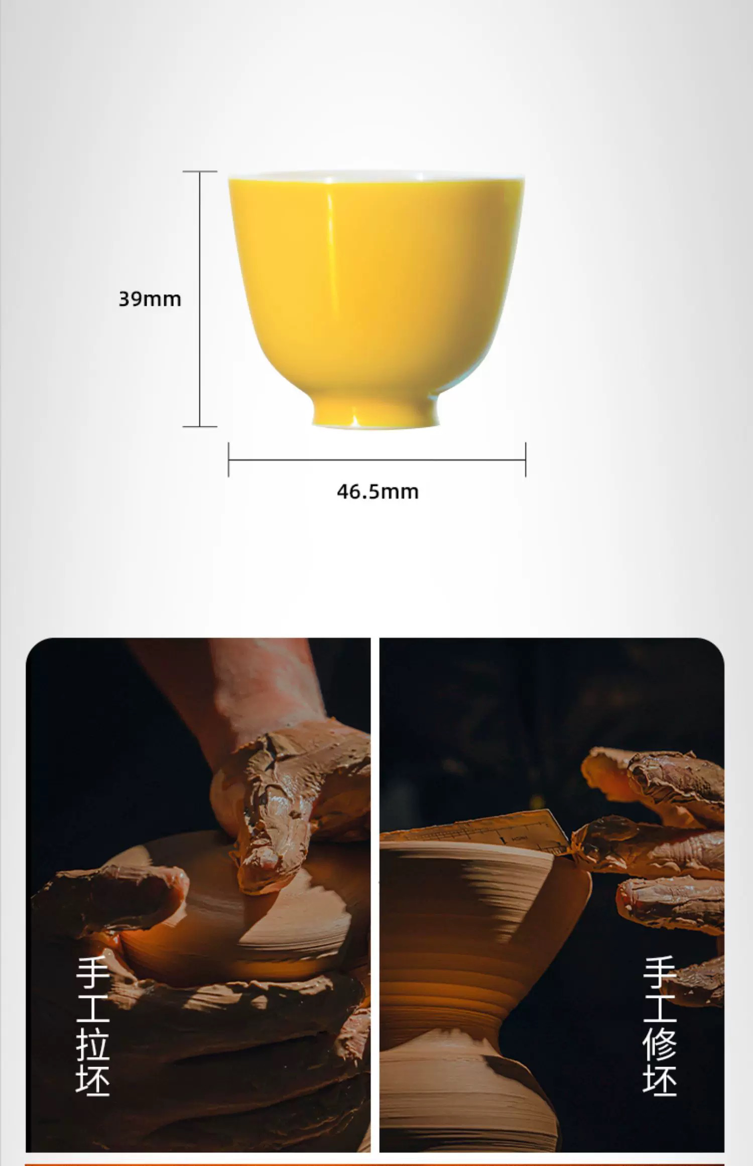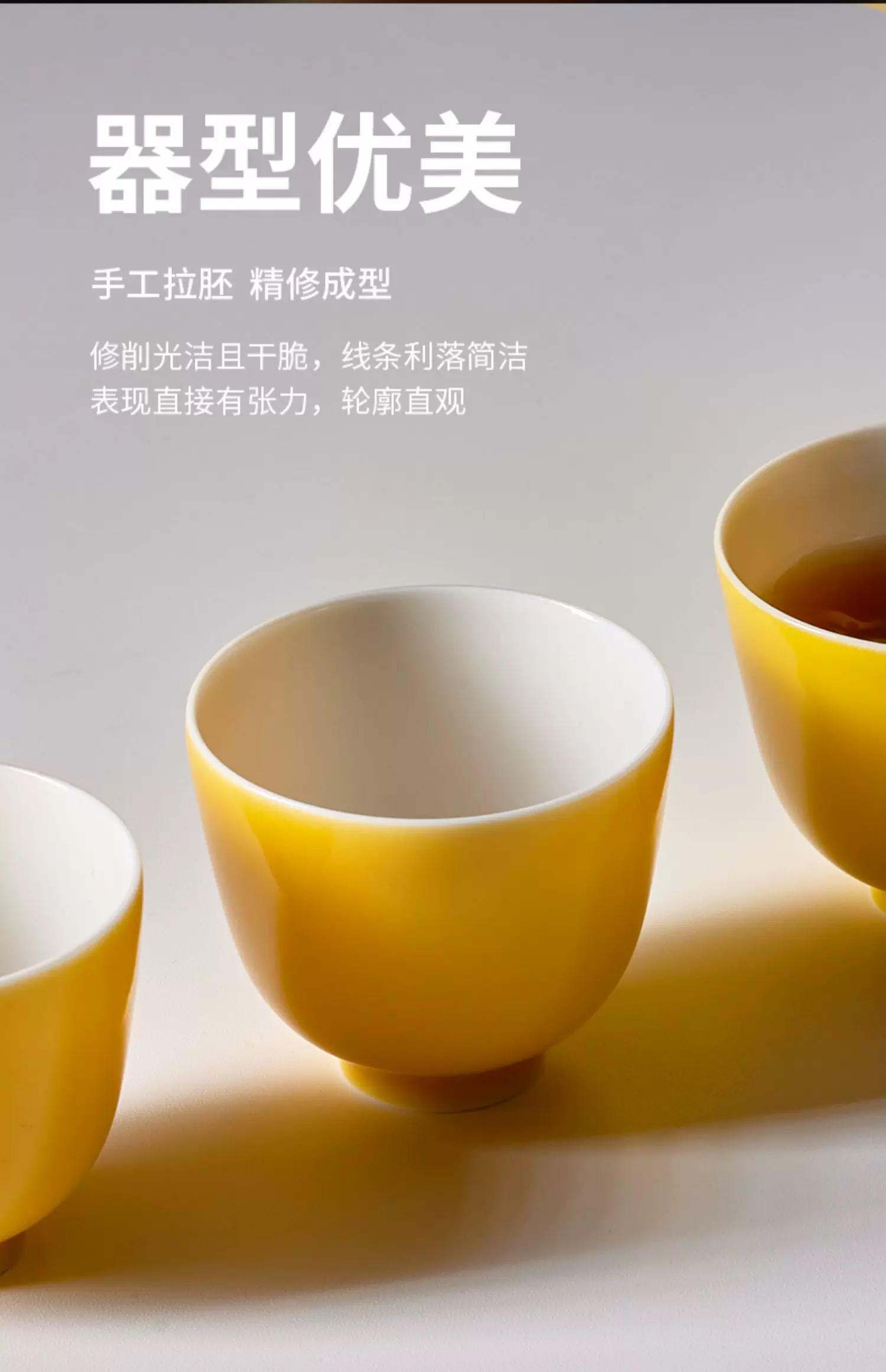 学古|隋黄杯中式全手工薄胎聚香景德镇高温瓷品茗茶杯6只礼盒30ml