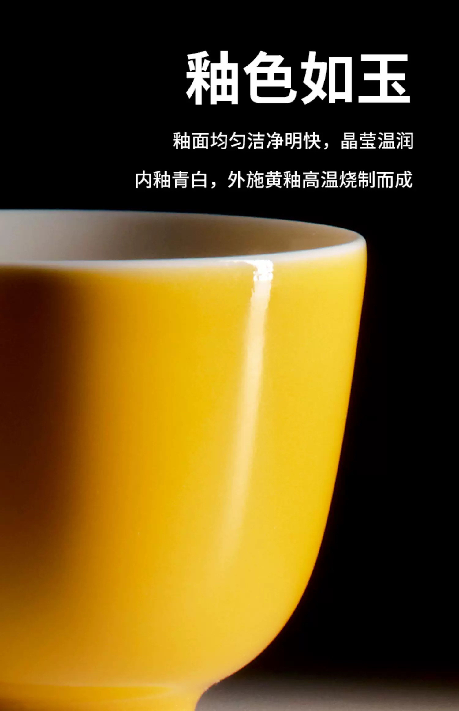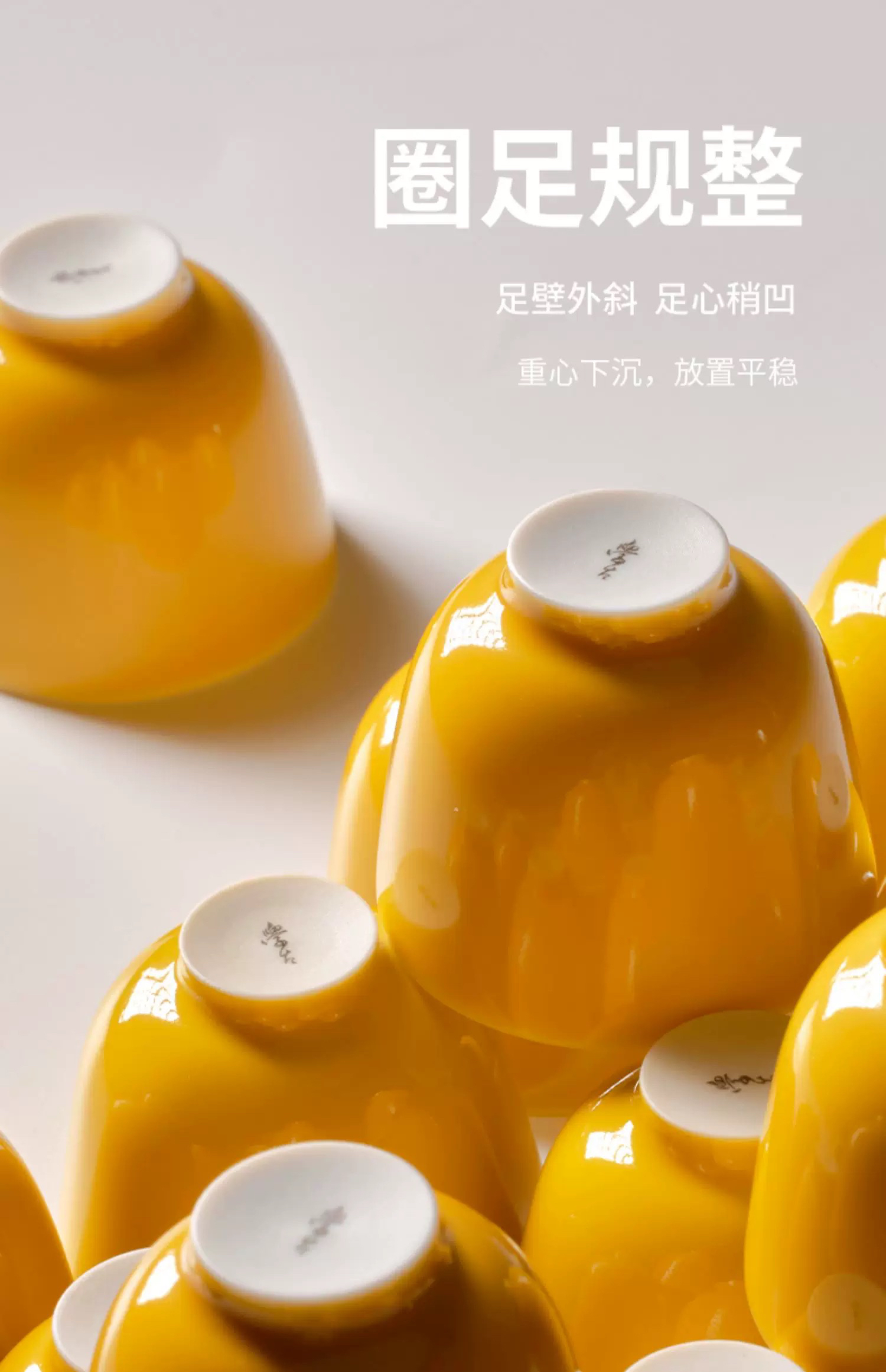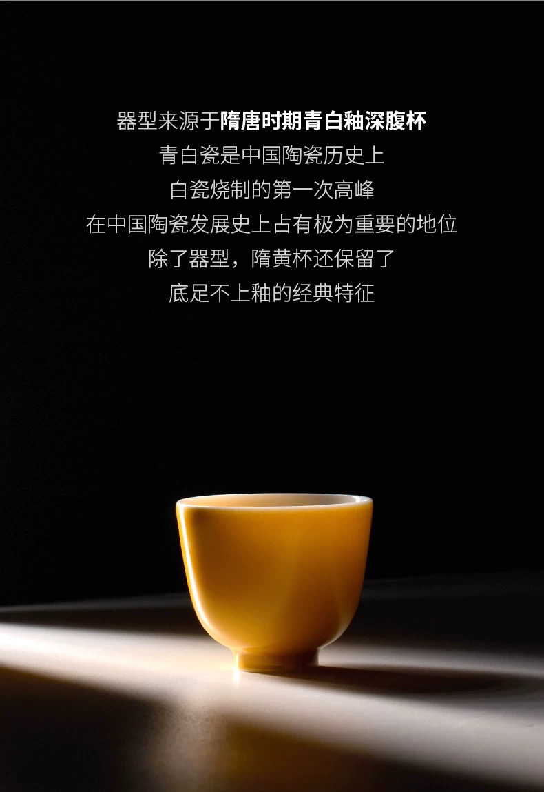 学古|隋黄杯中式全手工薄胎聚香景德镇高温瓷品茗茶杯6只礼盒30ml