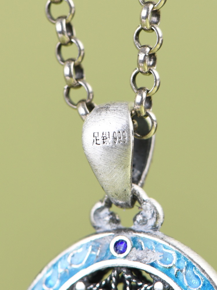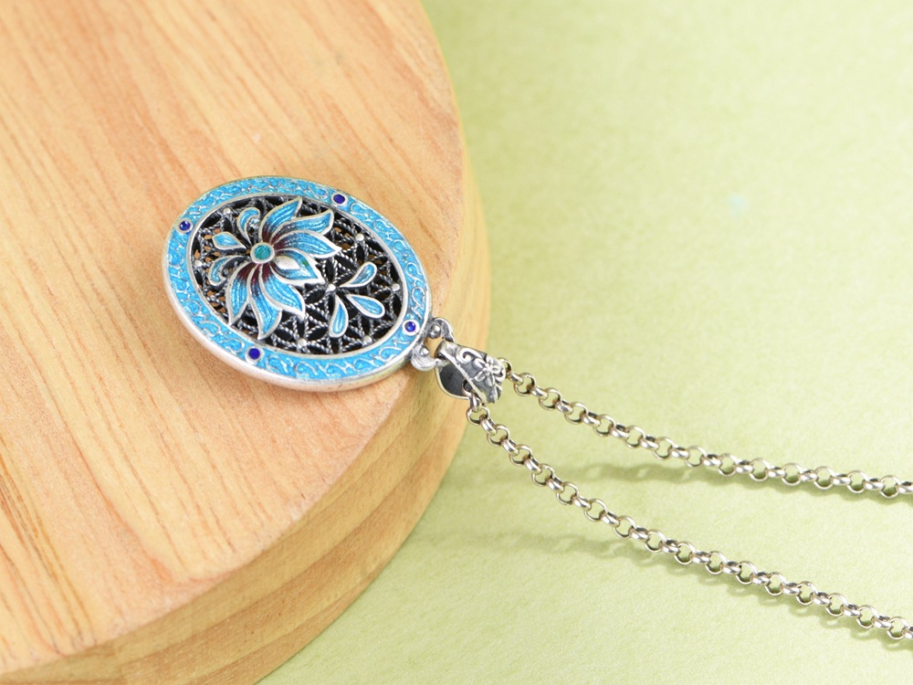 【画莲】999纯银足银景泰蓝复古做旧莲花吊坠【SCH-SY17721】