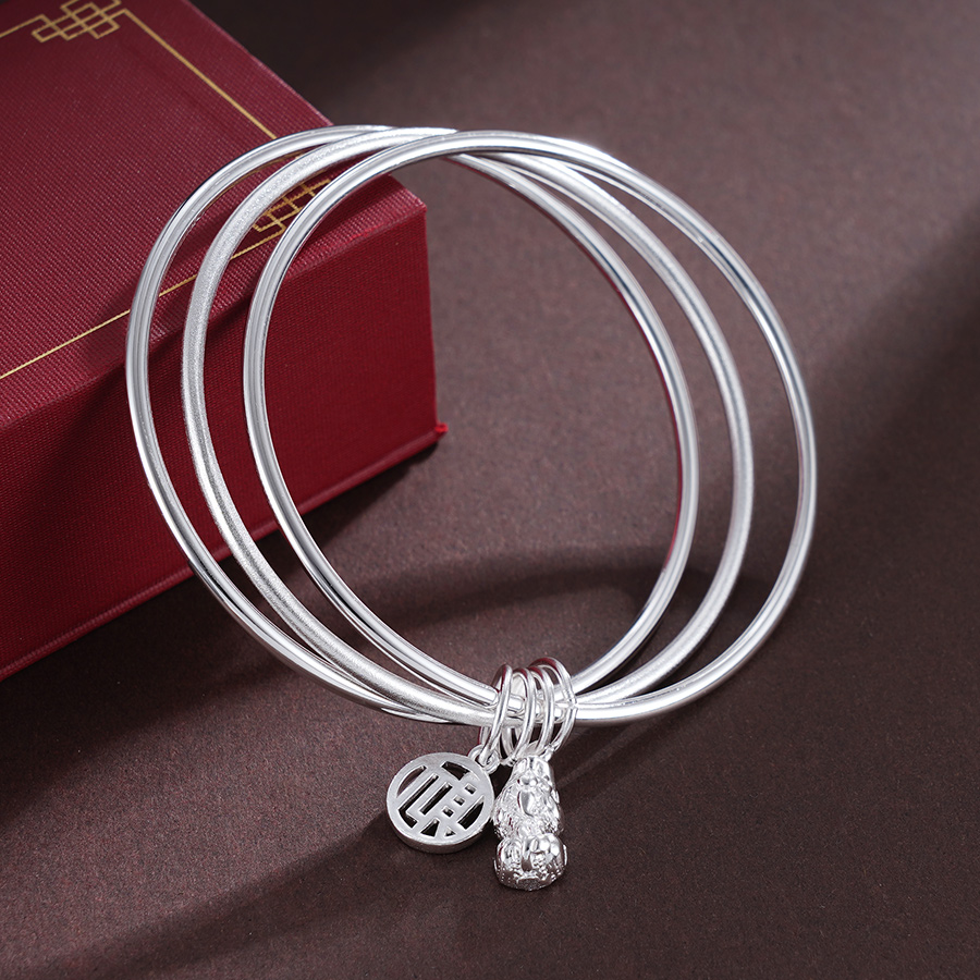 【寓意】:一款独特的三圈闭口手镯,戴上显白显手细。手镯之上点缀貔貅小坠饰,光彩闪耀超灵动,寓意招财又平安。