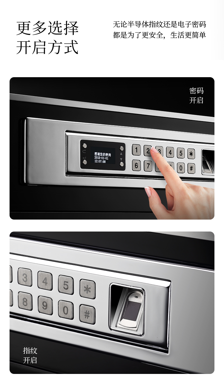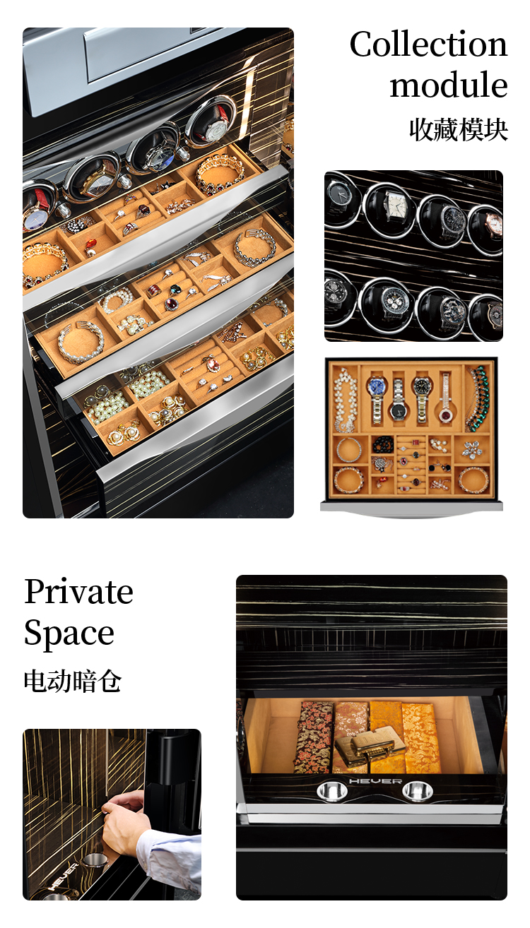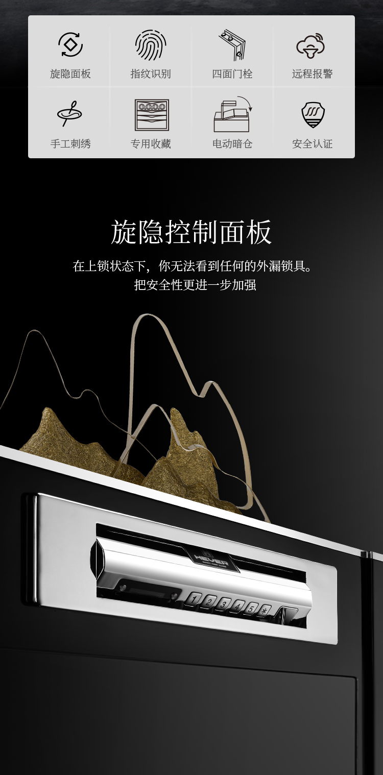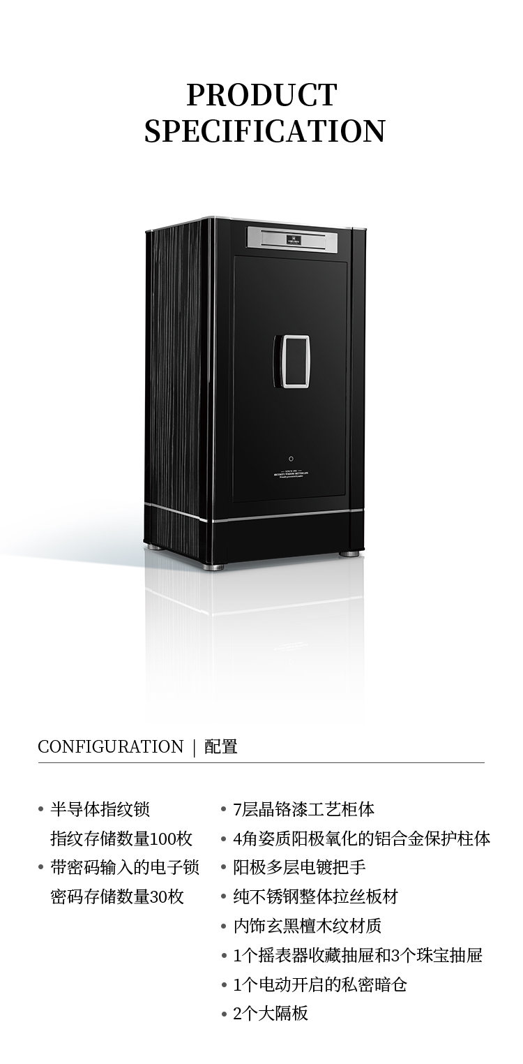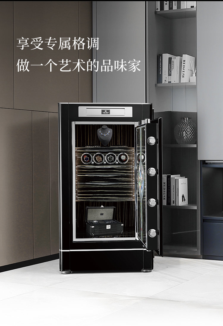 AIPU艾谱高端定制豪雅智能电子密码指纹保险柜家用办公保险箱全钢烤漆纯手工皮黑檀木首饰抽屉摇表