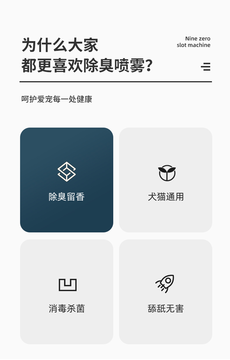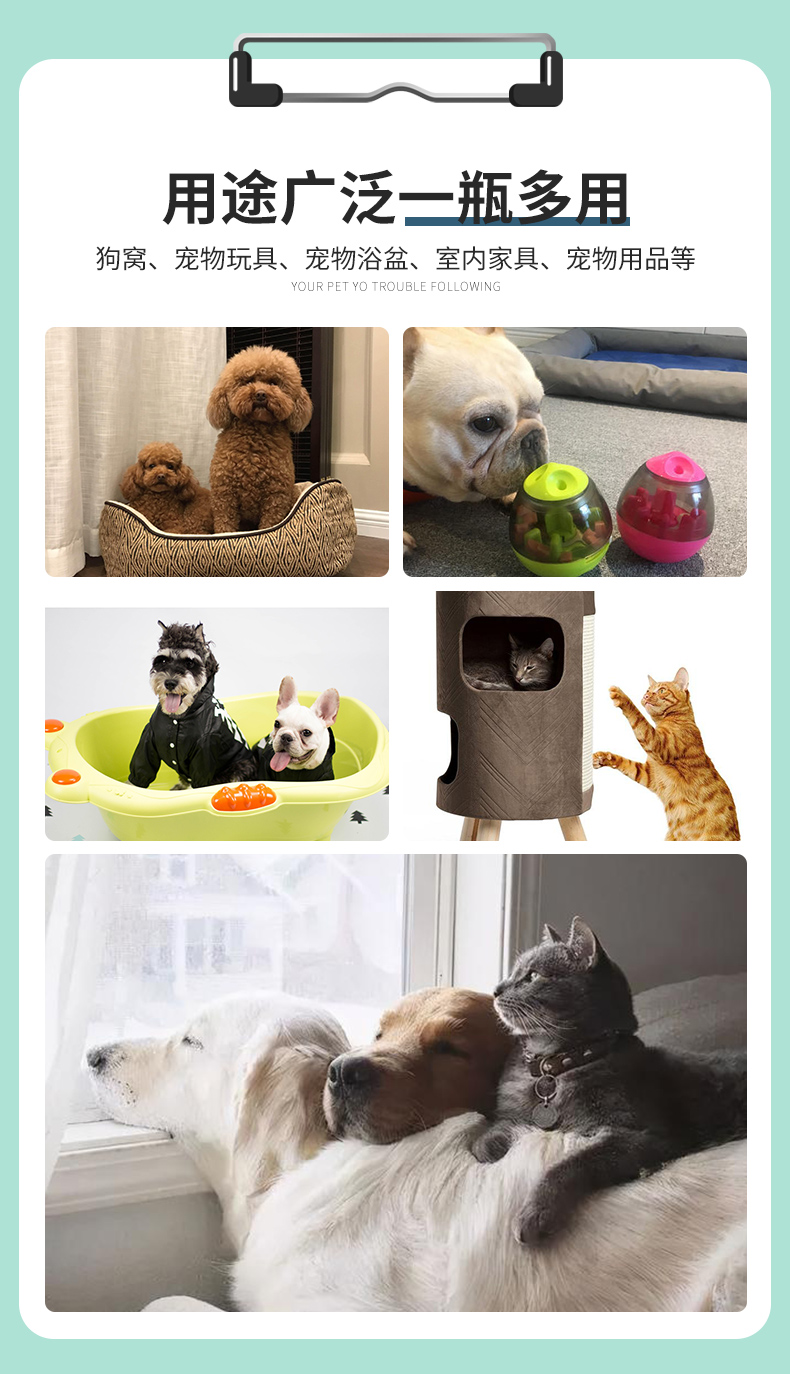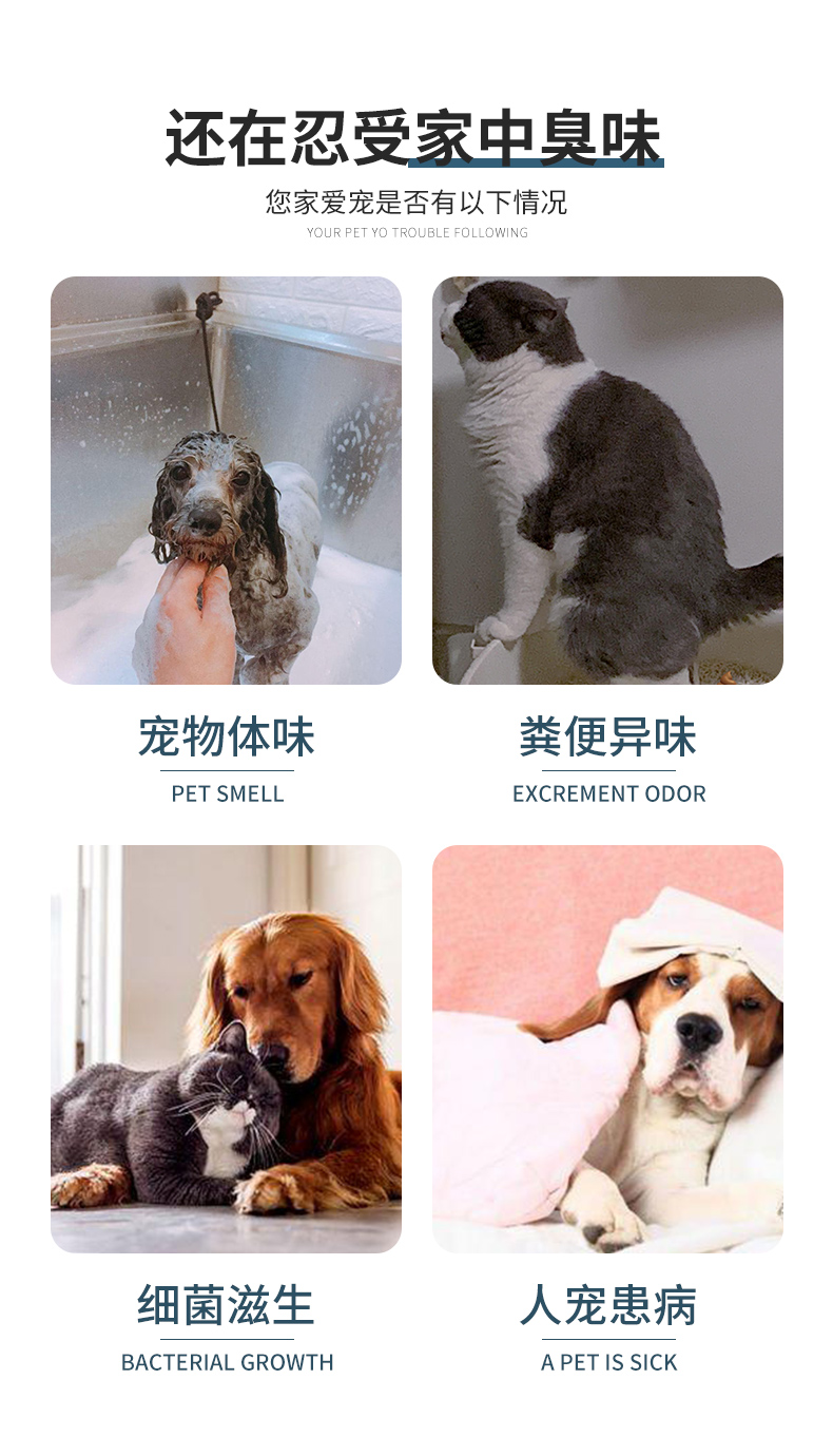 功能作用:适用于环境中的细菌,真菌,病毒的消杀,祛味除臭。创造健康洁净的养宠环境。