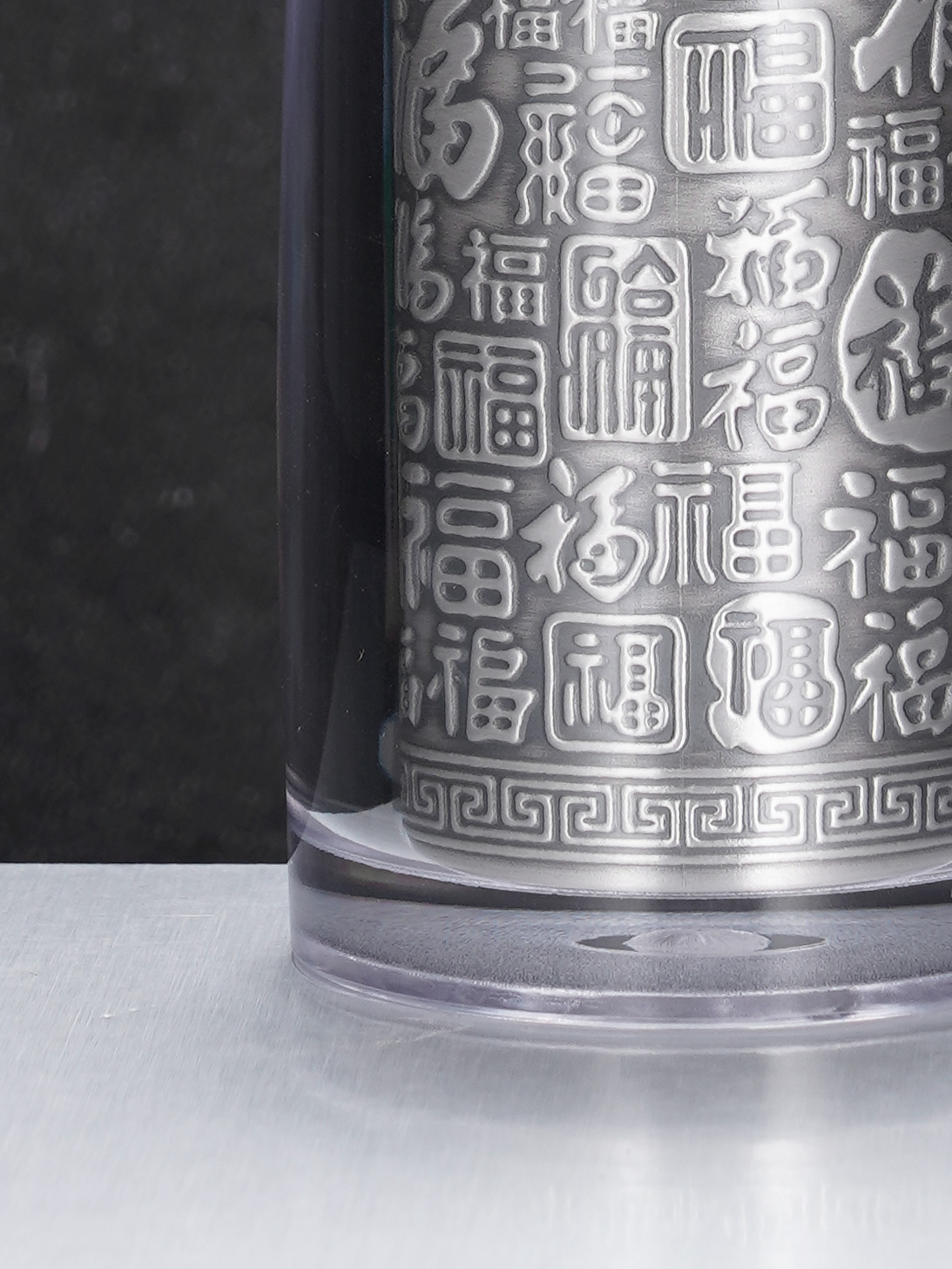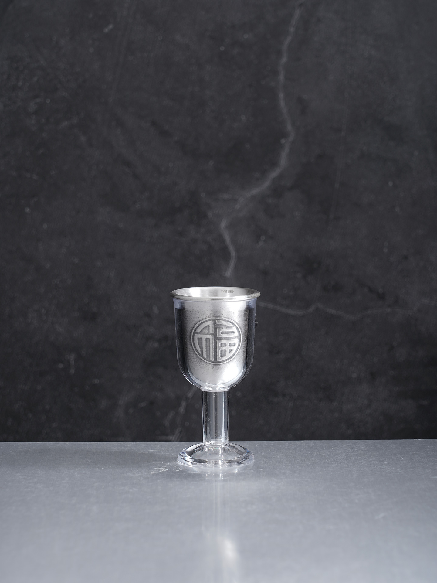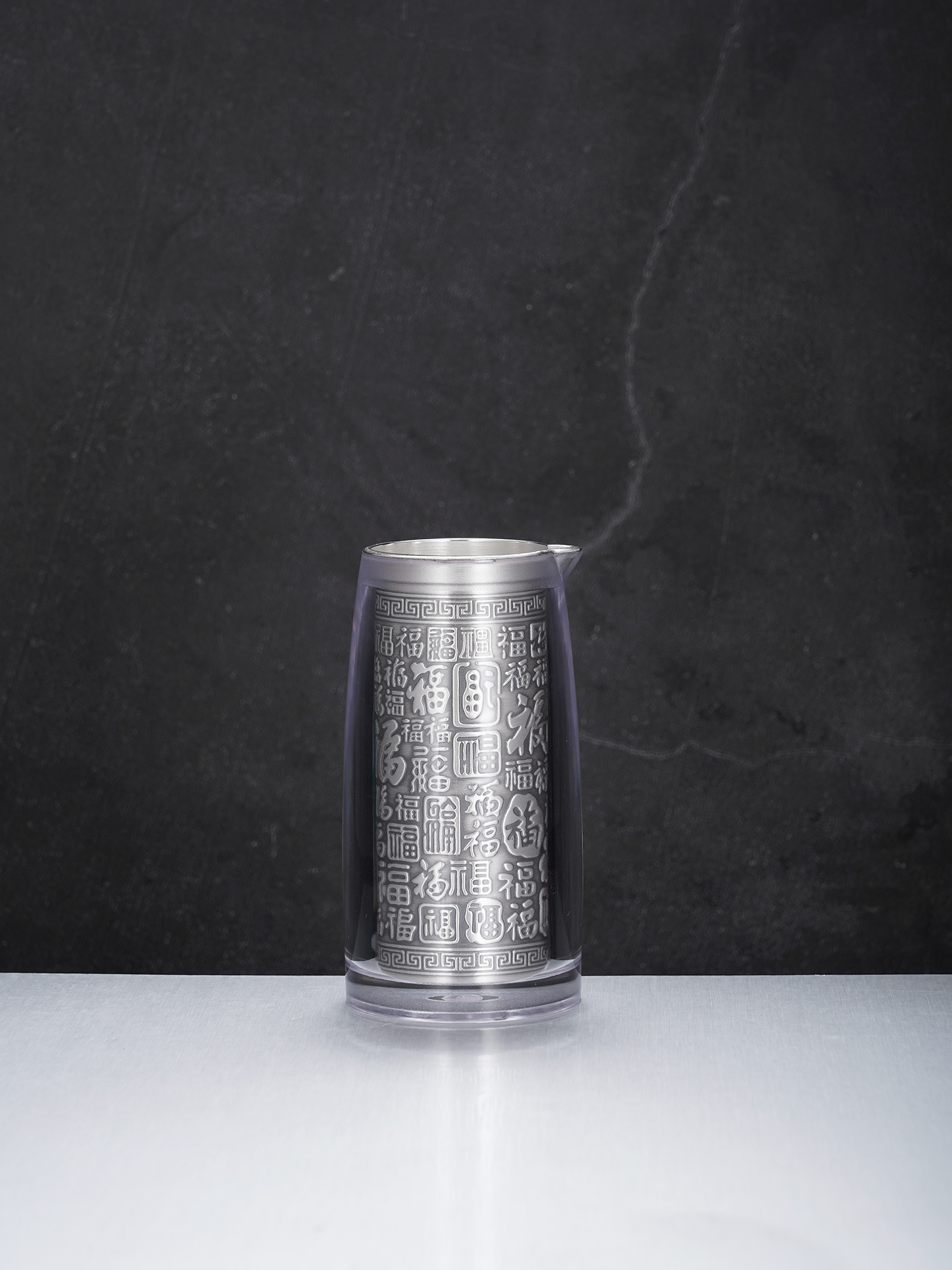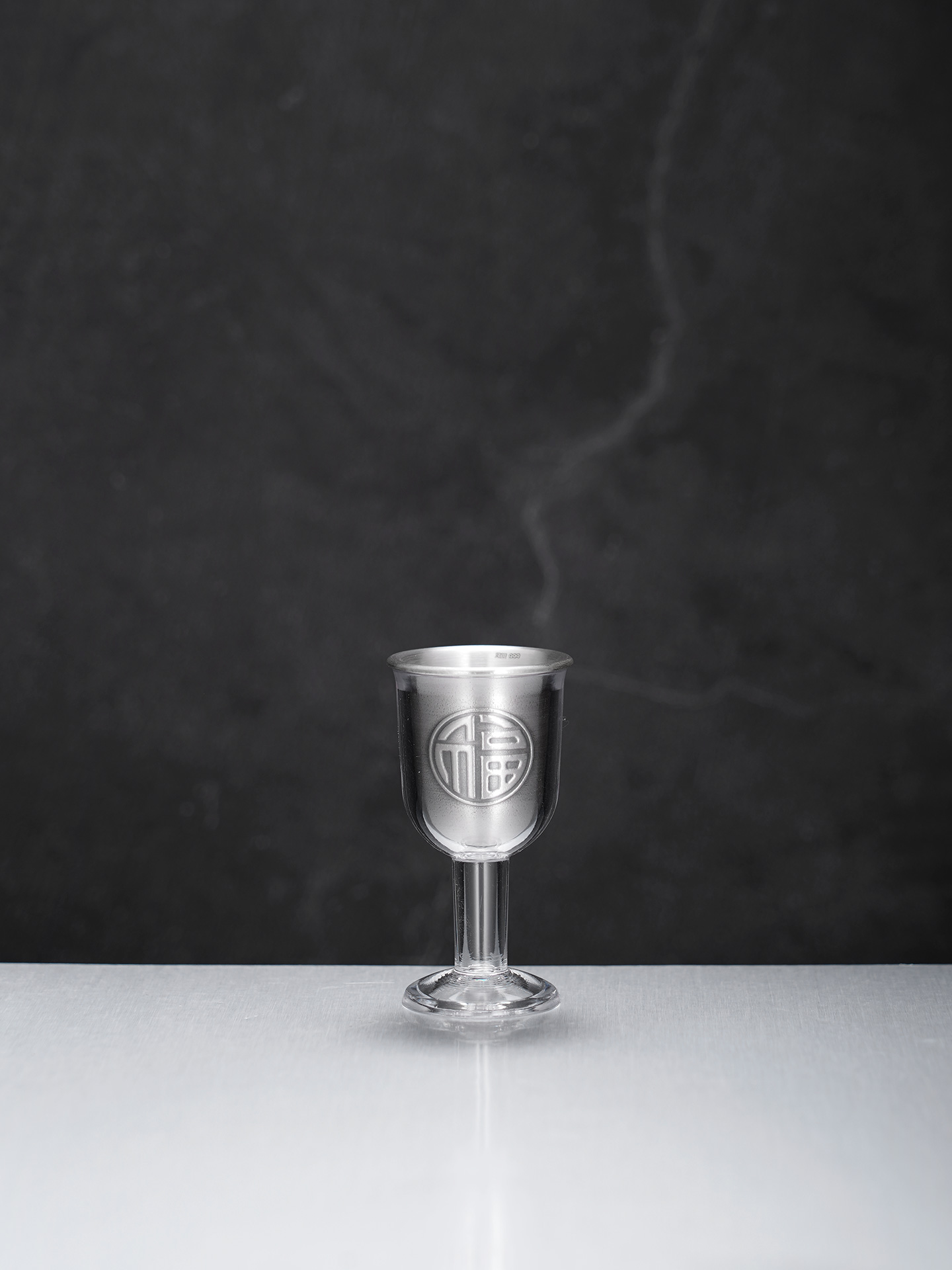 【寓意】:酒具采“百福图”为创意,福字笔走龙蛇,韵味悠长。此款福字酒杯,善纳酒气,巧引酒香,预兆财源广进,福随酒至。