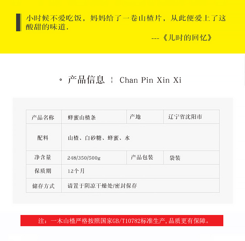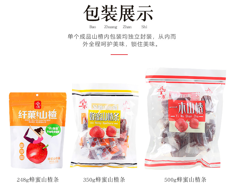 蜂蜜山楂条 500g/350g 法库 新鲜山楂棒 果丹皮 蜜饯 儿童 零食 一木山楂 包邮