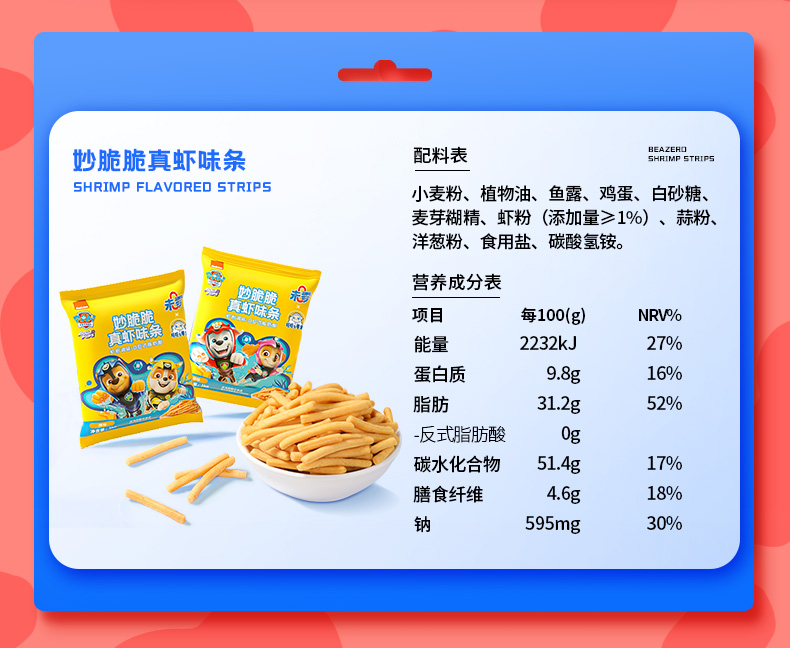 【双12】Beazero未零汪汪队妙脆脆真 味虾条16g起 儿童薯条虾条营养 零食
