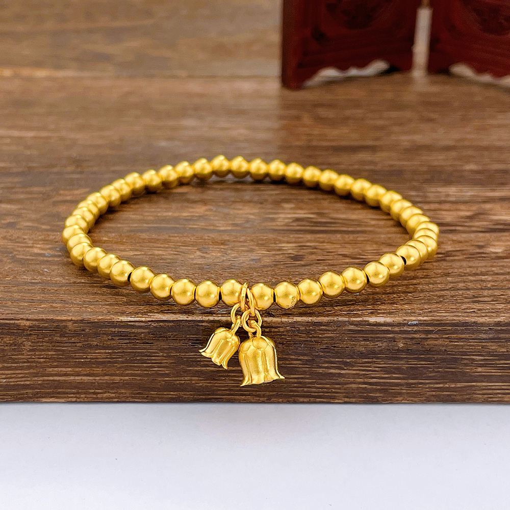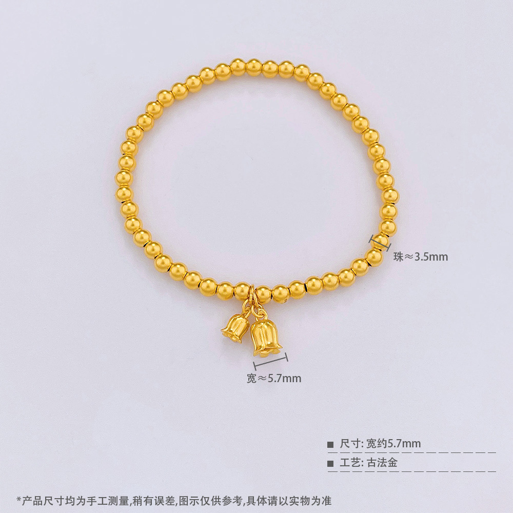 【限时克减128元】足金999 古法莲花铃铛吊饰间圆珠(珠约3.3-4mm)手串(周长约16.5-17.5cm)(YGFSC00168)补差价)预售产品下单后不退款不退货不换货不补差价