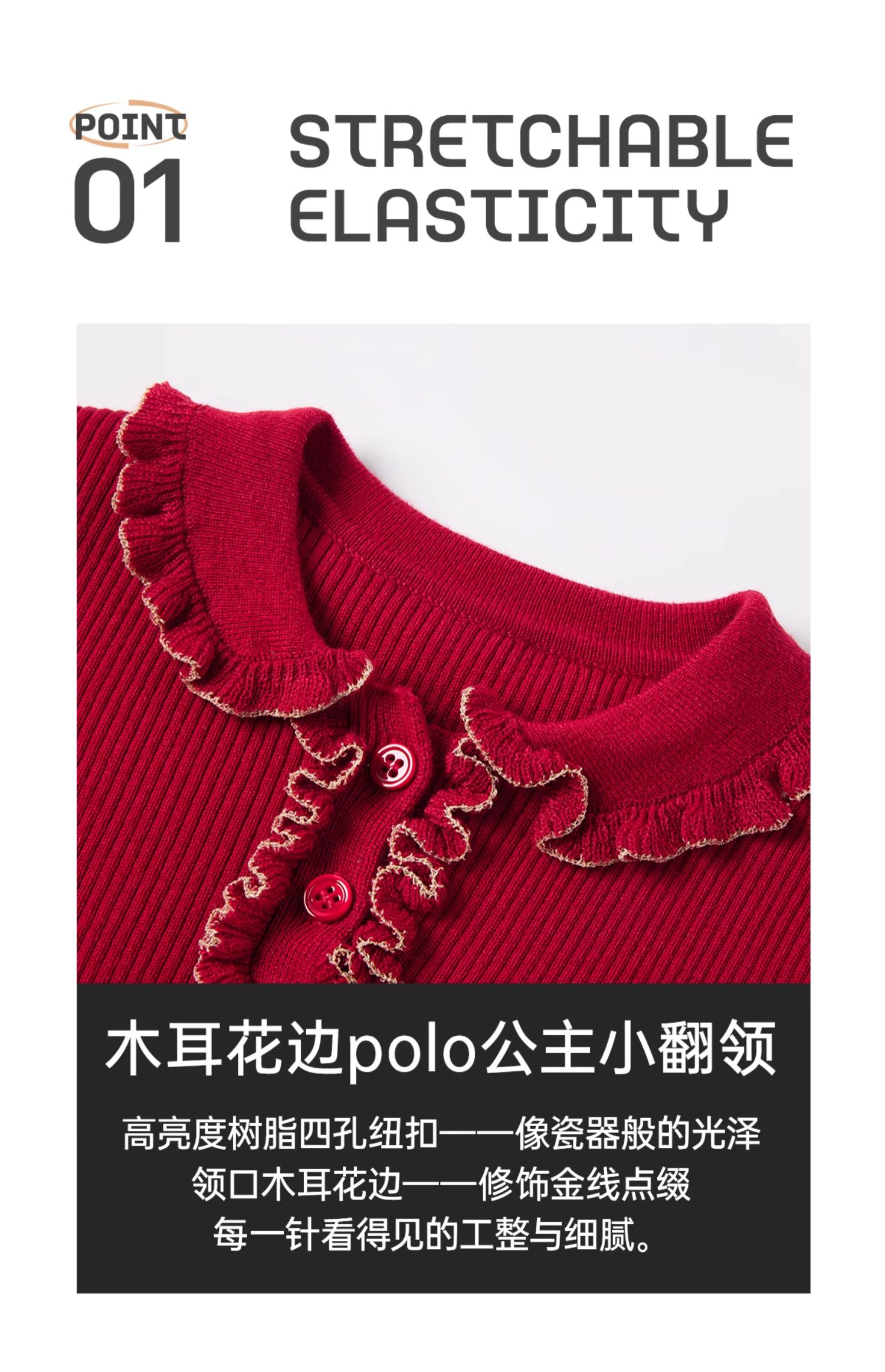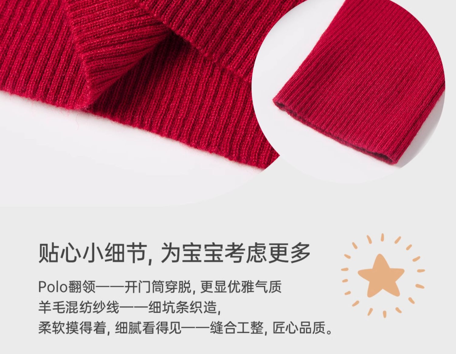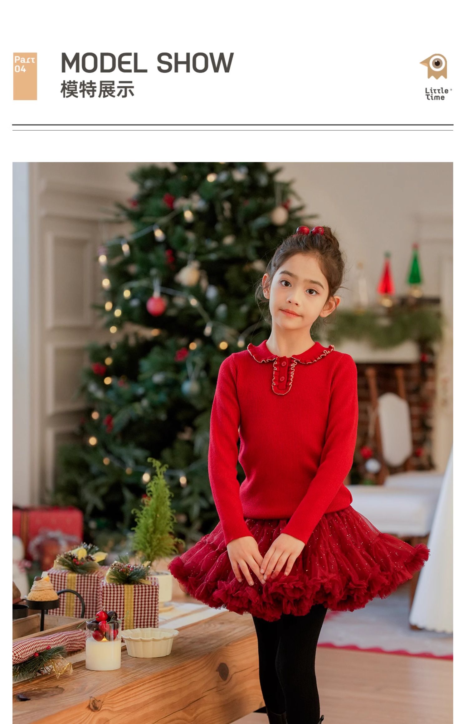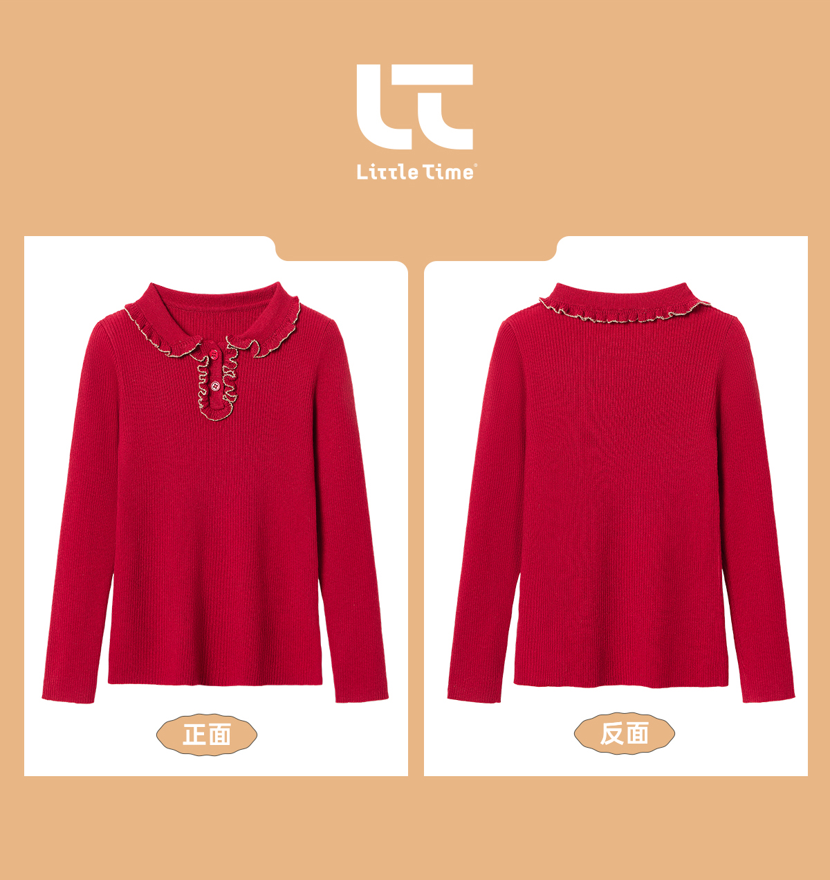 littletime女童金丝花边羊毛衣秋冬2024新款秋冬长袖Polo针织衫