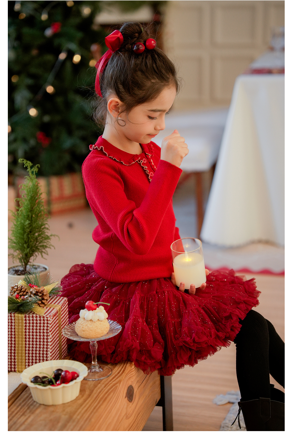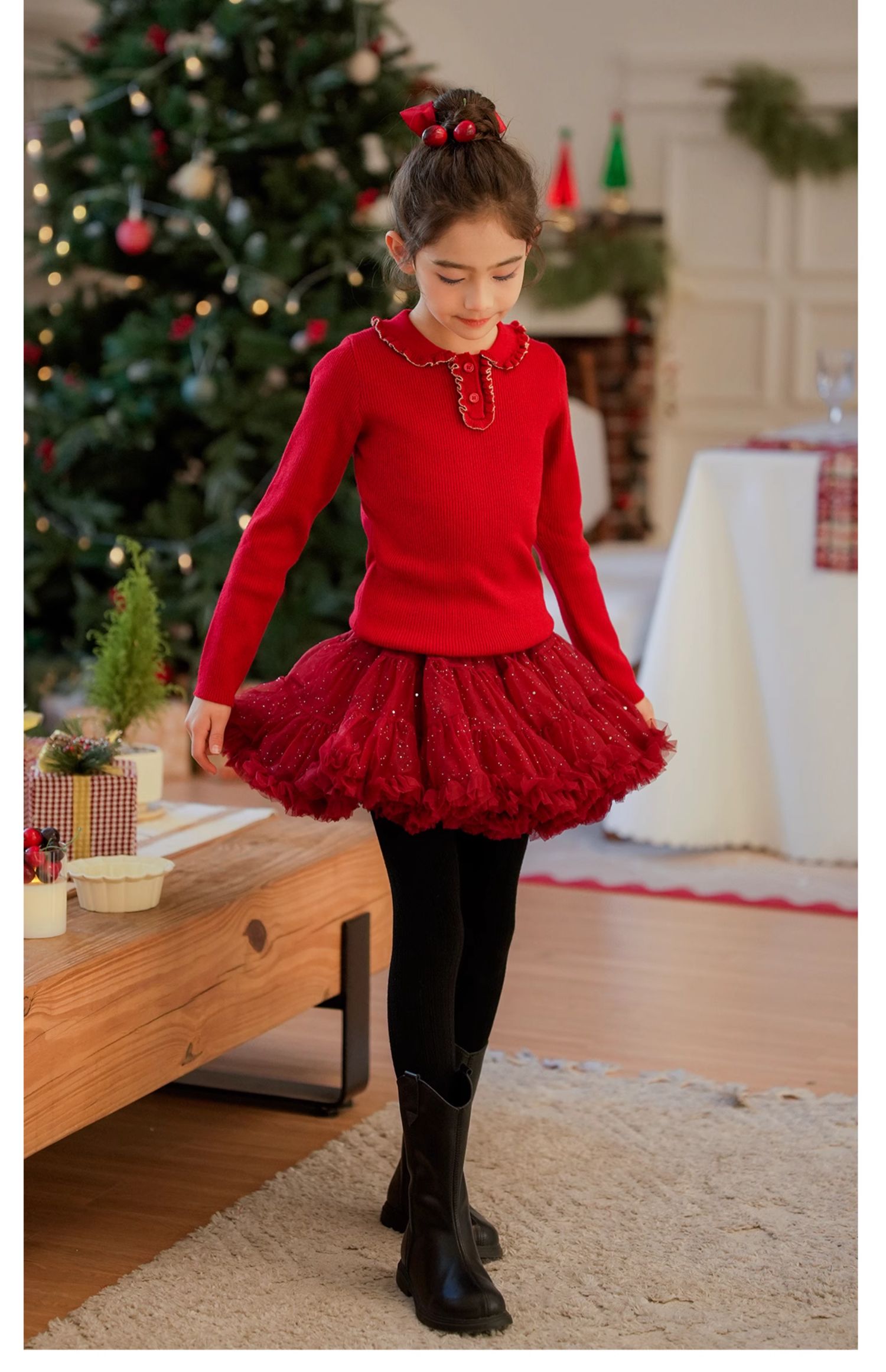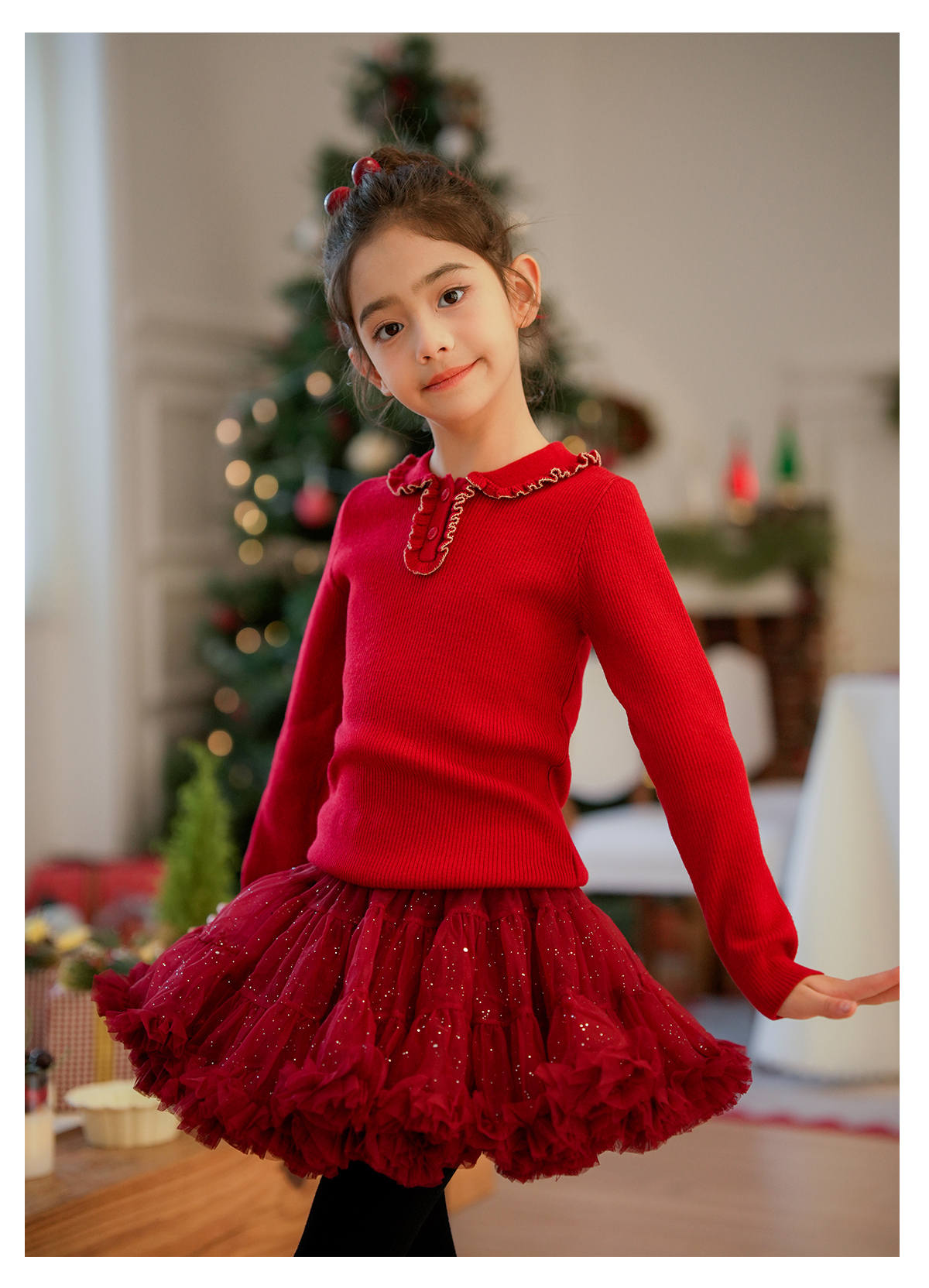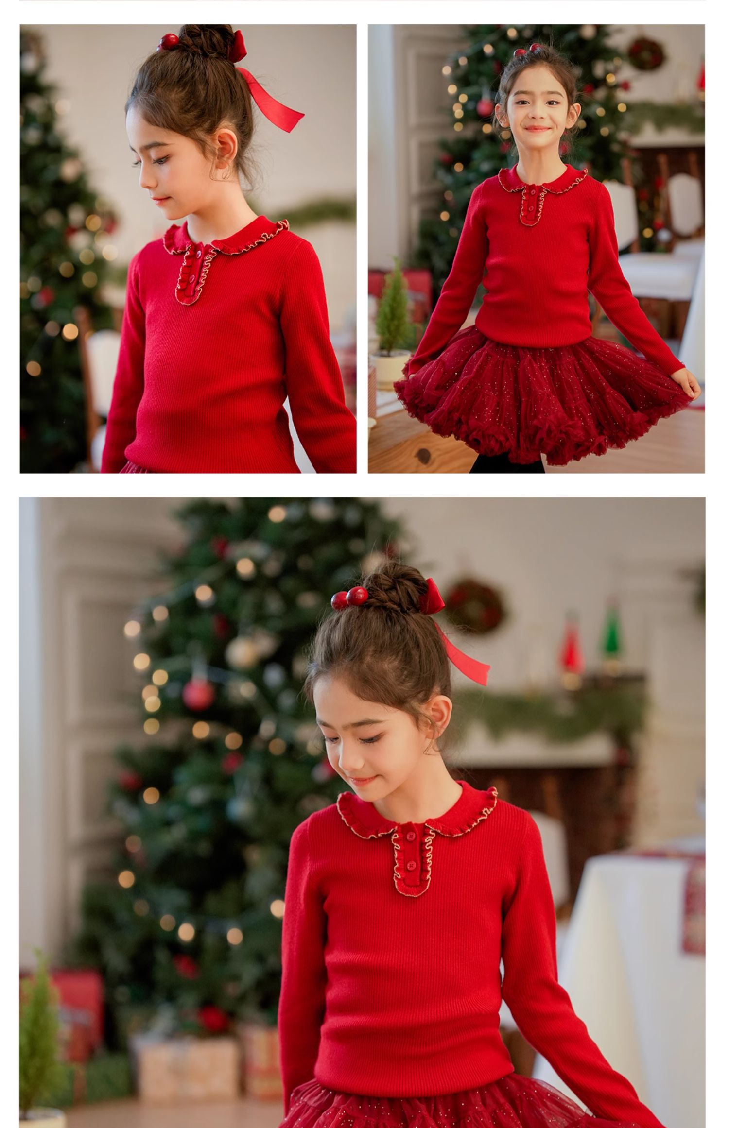 littletime女童金丝花边羊毛衣秋冬2024新款秋冬长袖Polo针织衫