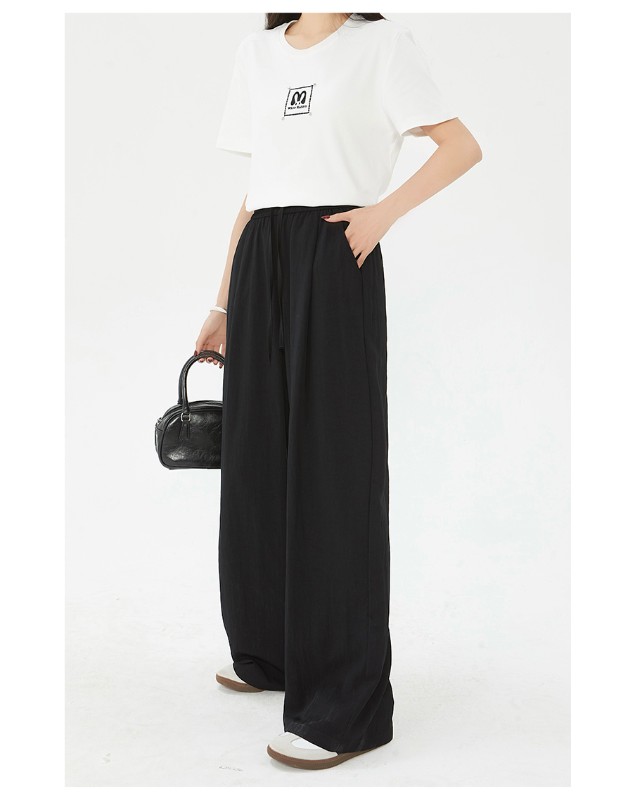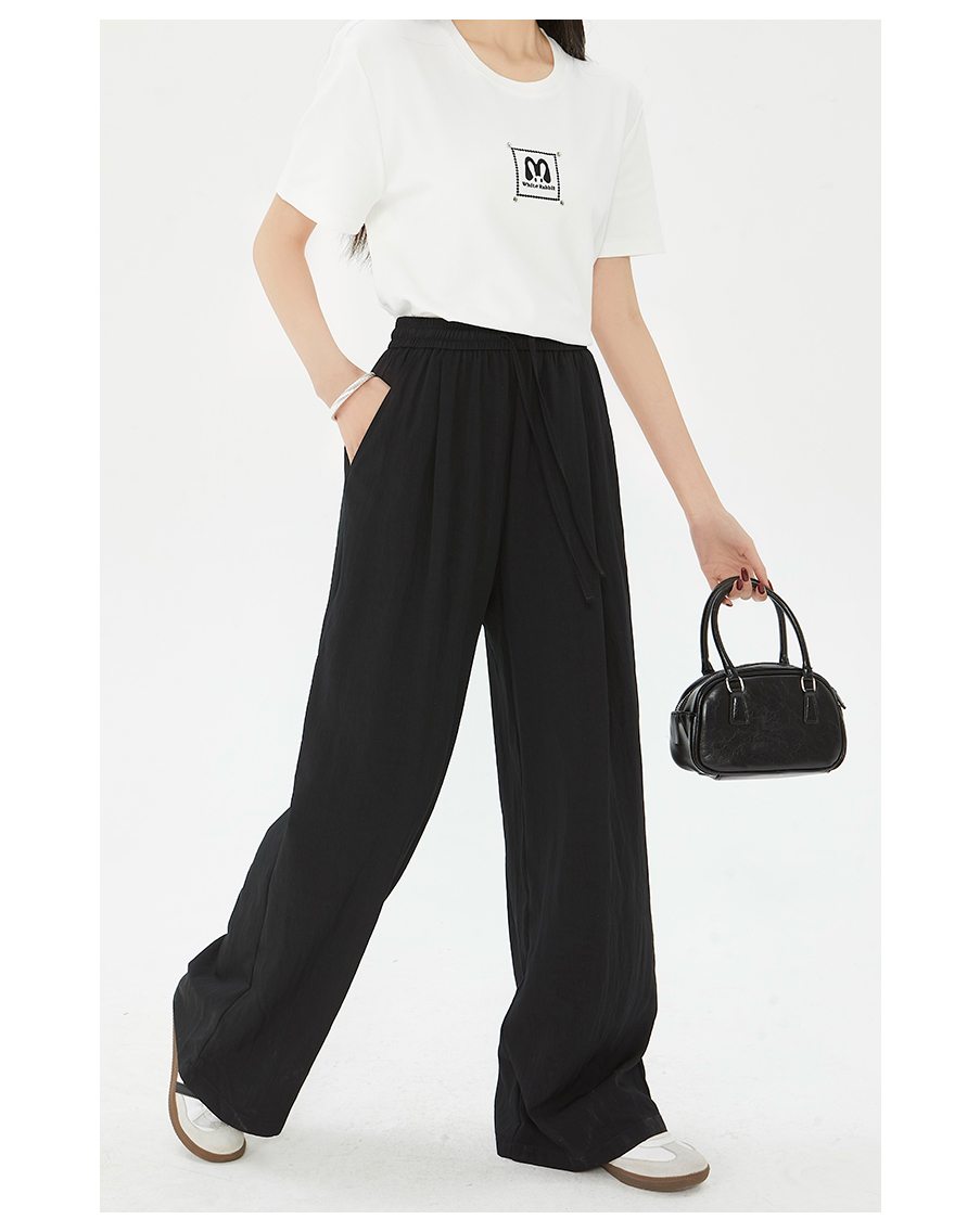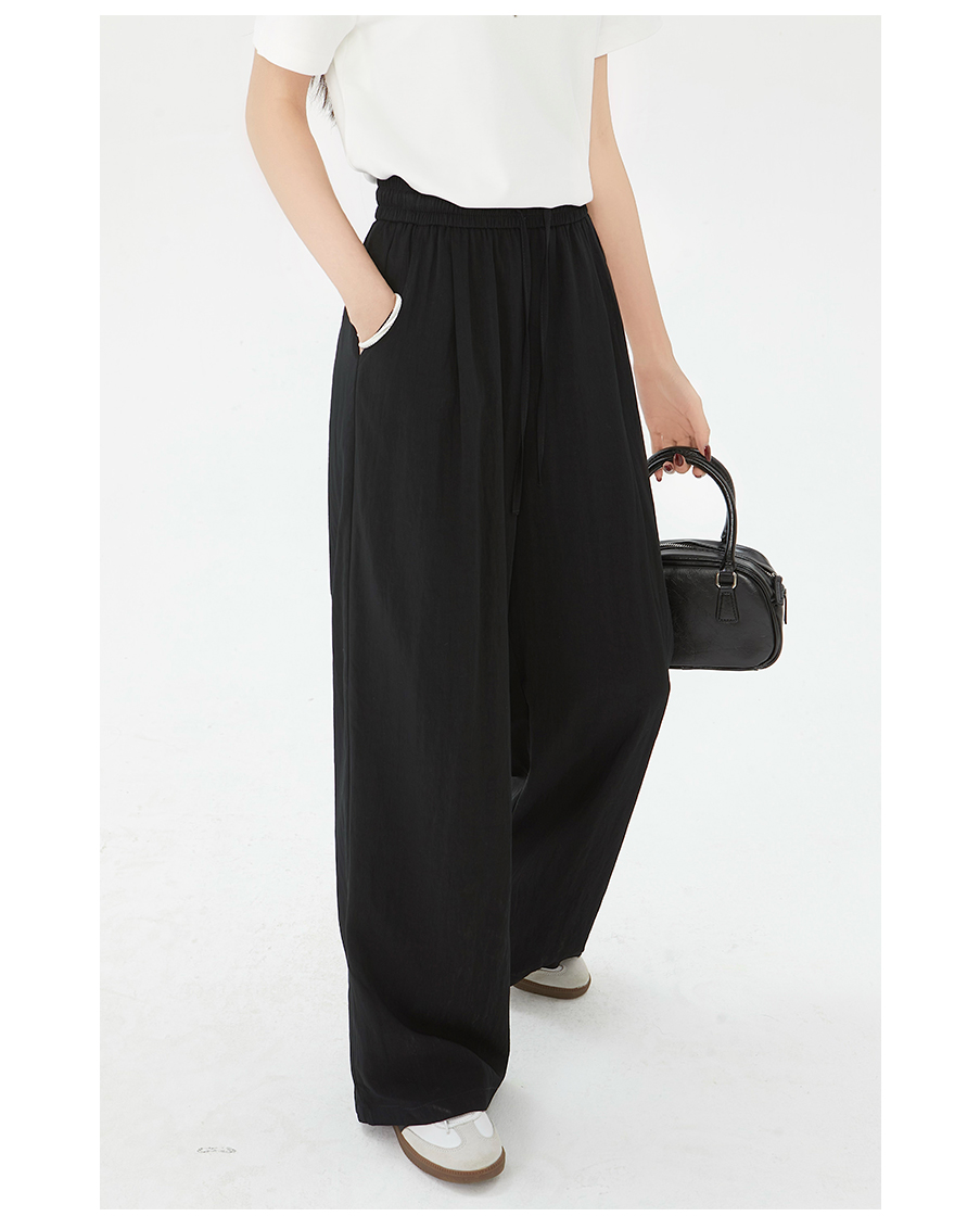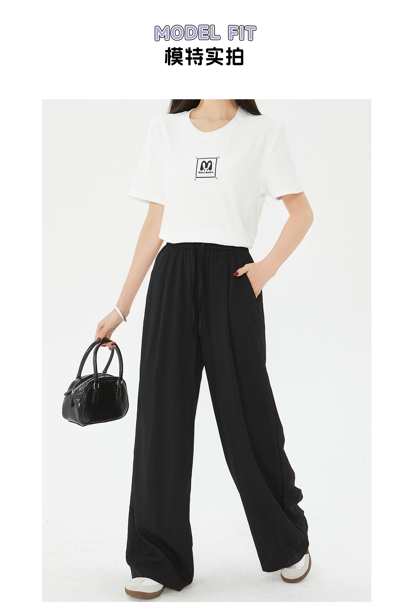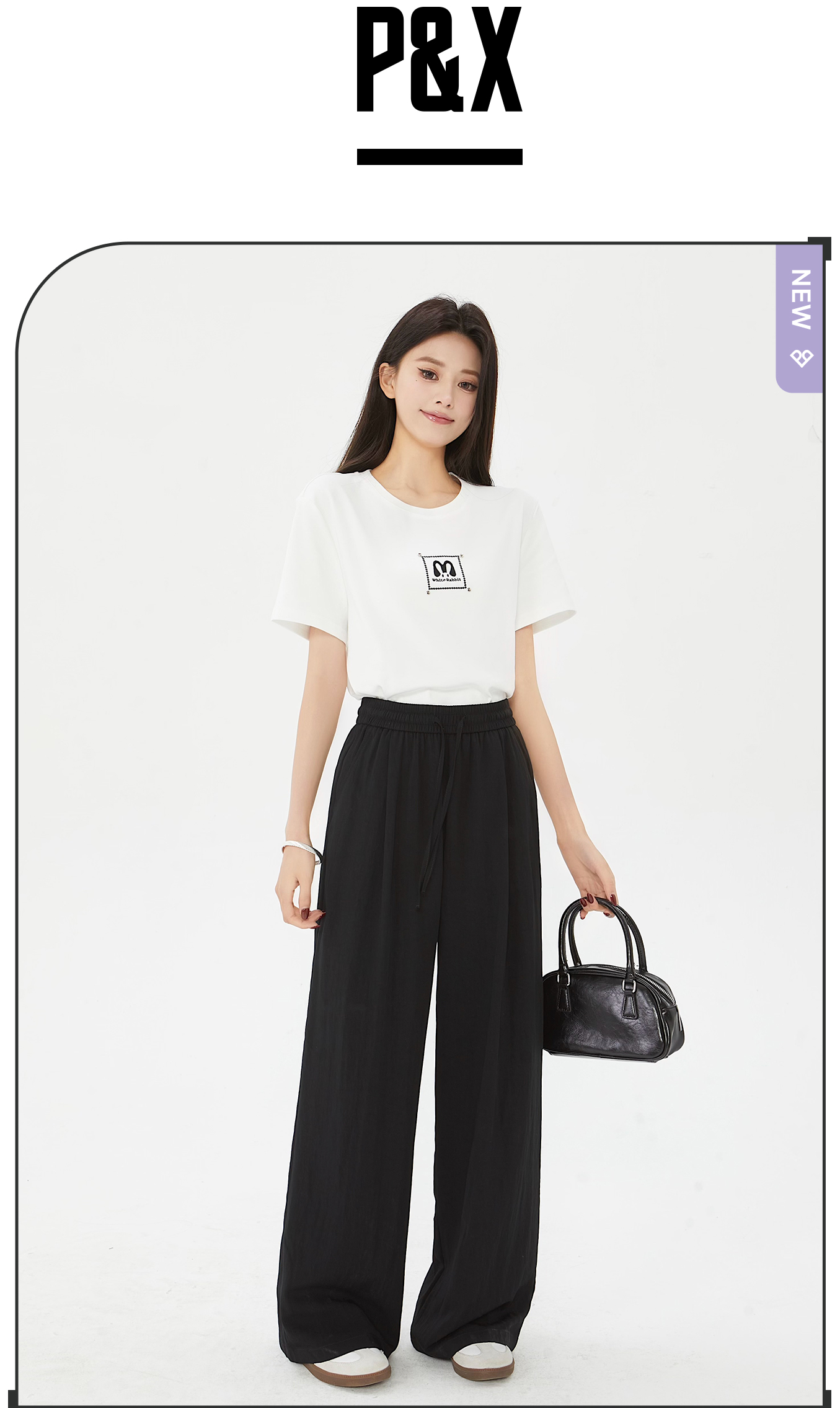 P&X设计师女装夏季薄款宽松垂感百搭休闲长裤825209222 黑色