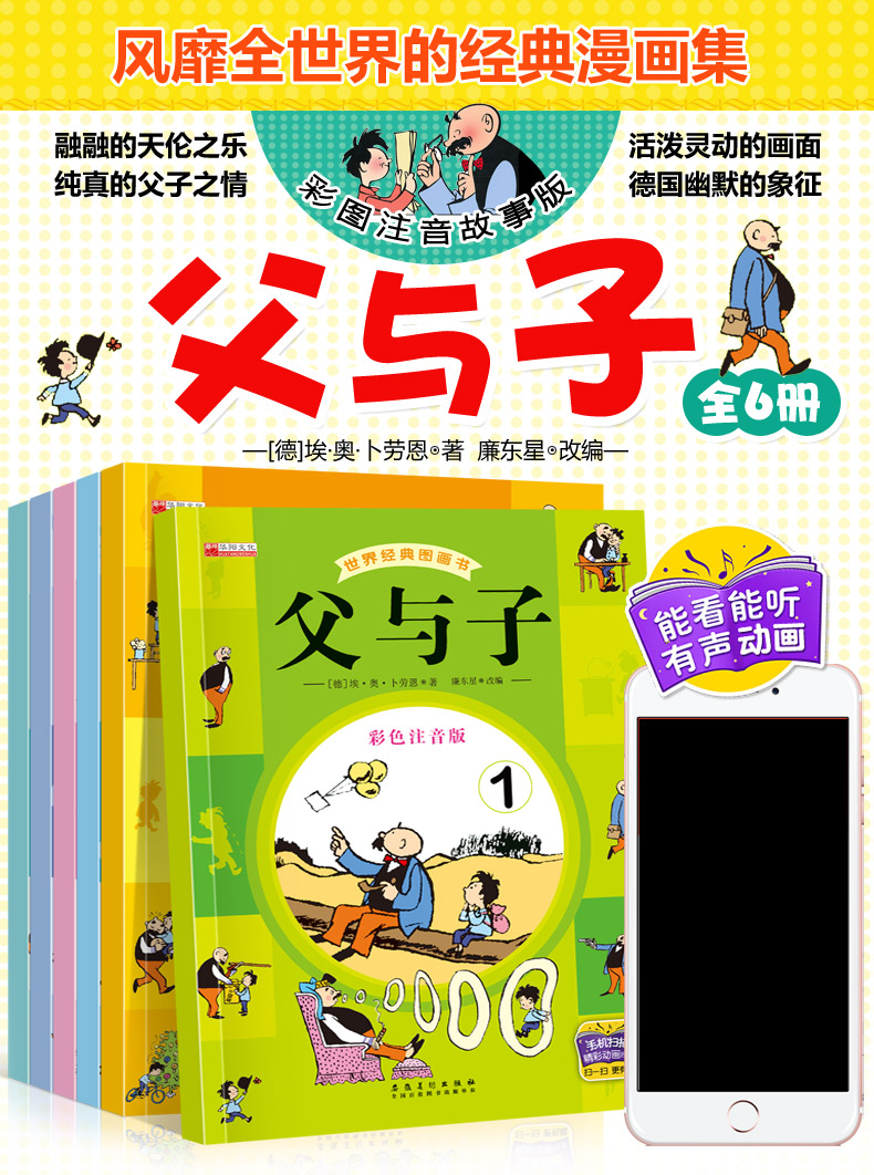 父与子书全集 全套6册彩色注音版 二年级上册三年级阅读漫画书小学生适合6一8岁完整版父子俩搞笑带拼音的故事书父与子 看图讲故事
