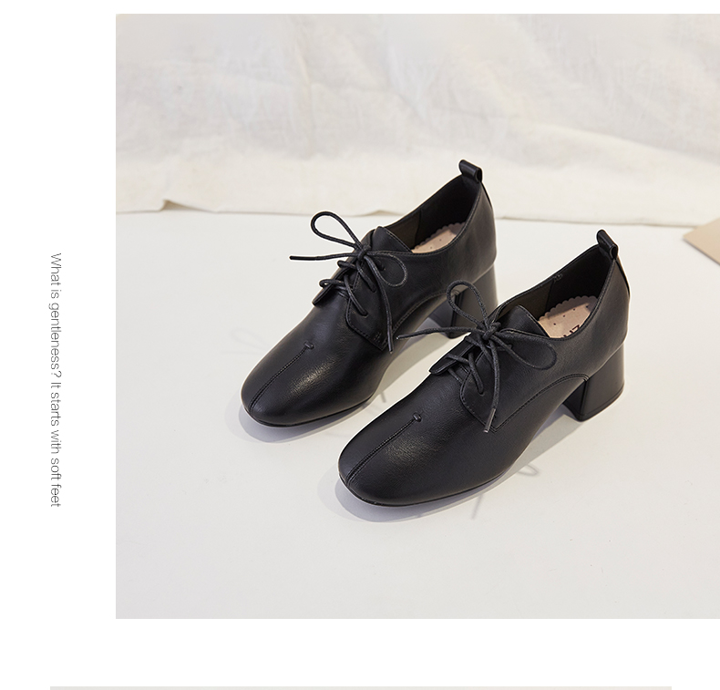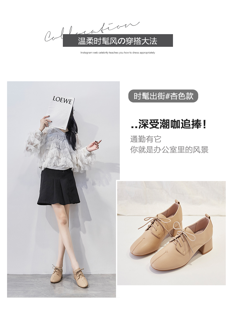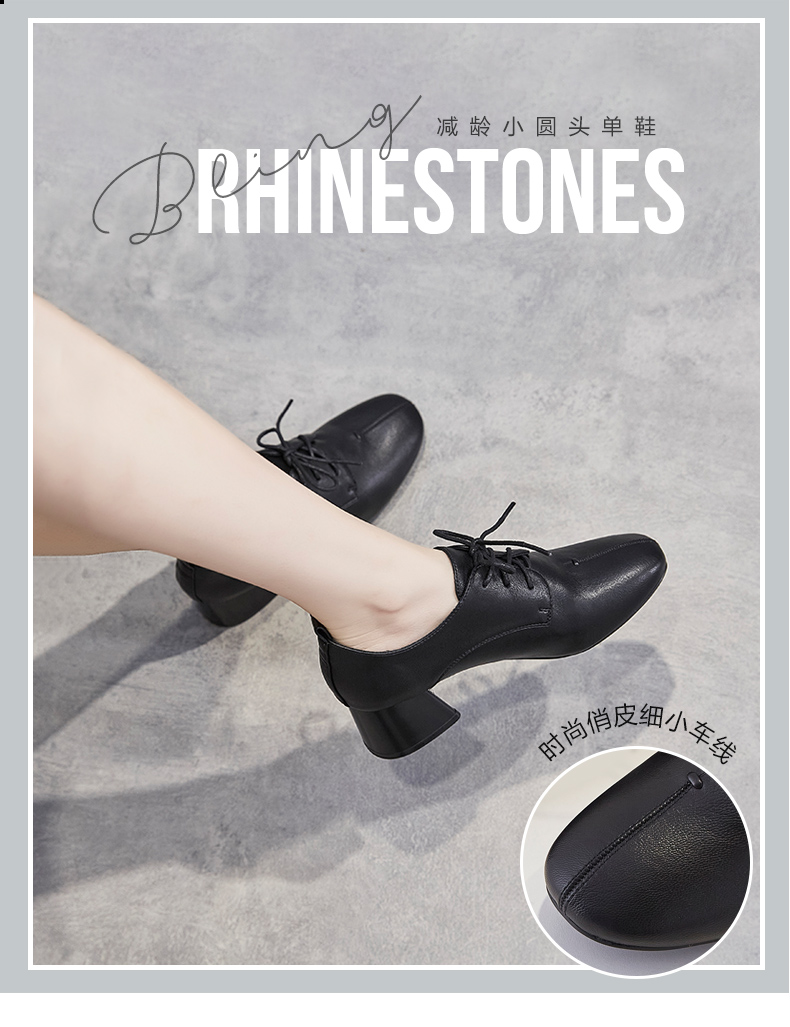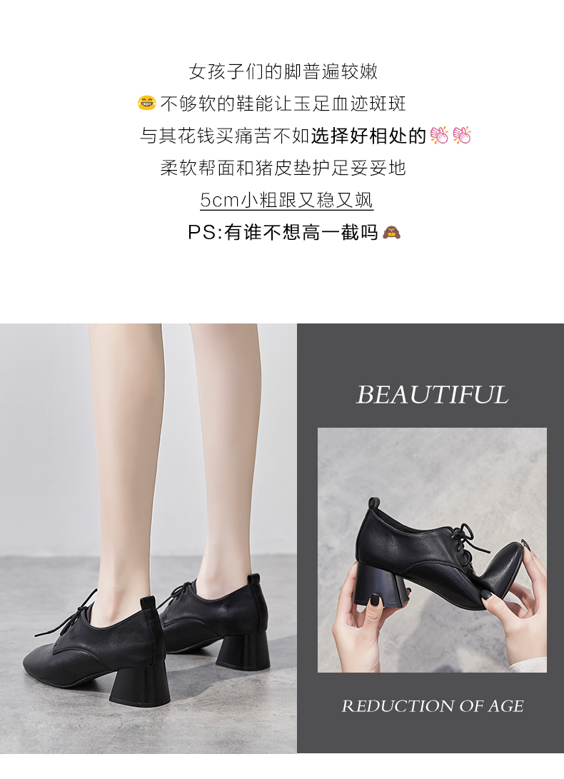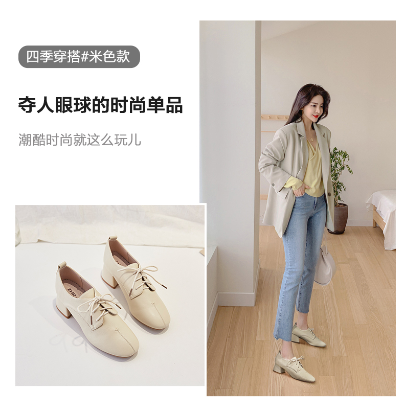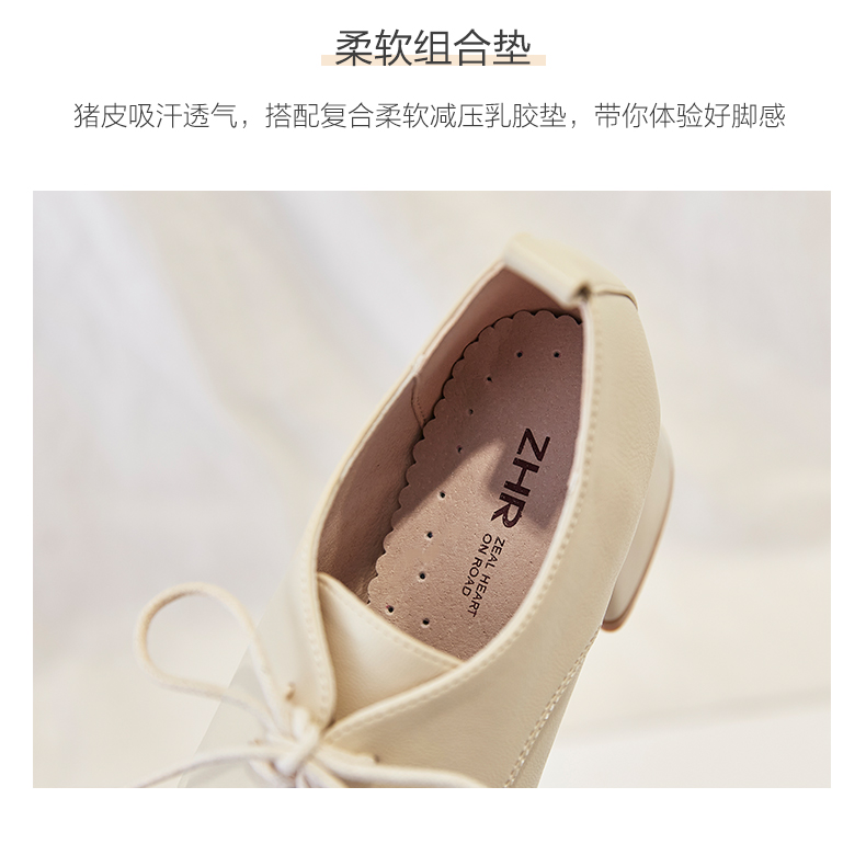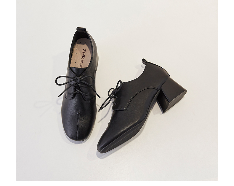 ZHR英伦复古粗跟仙女风百搭中跟单鞋