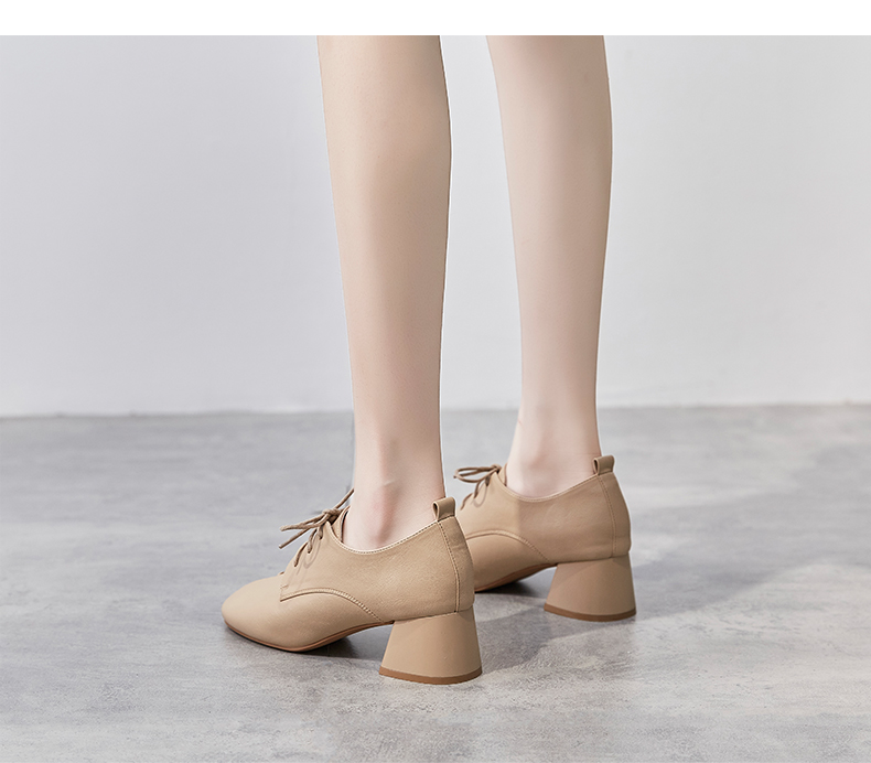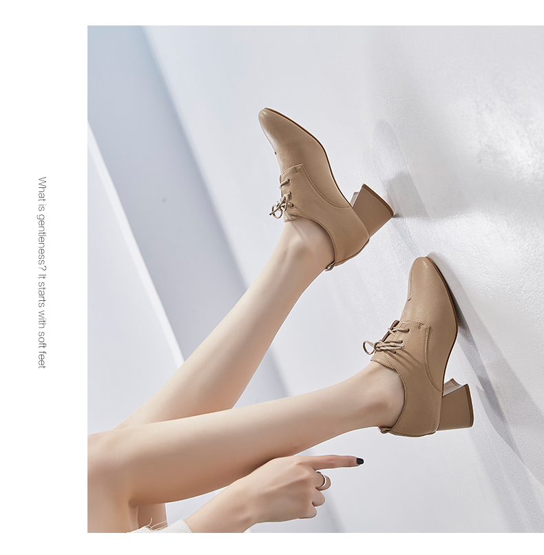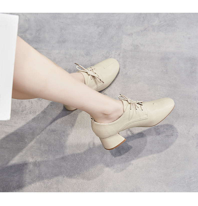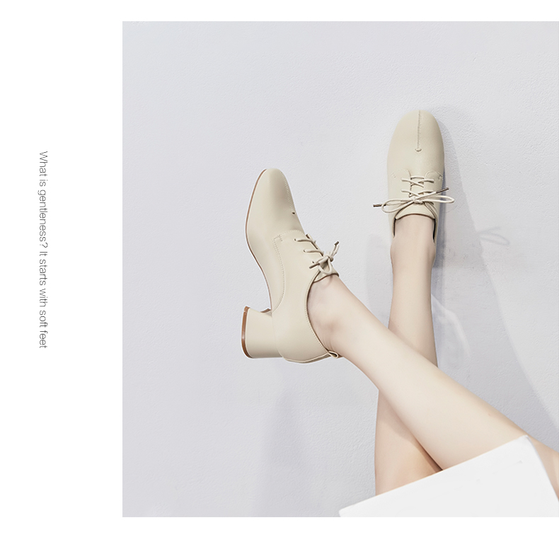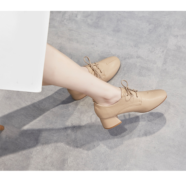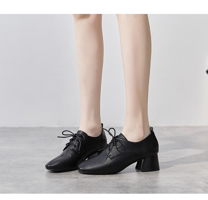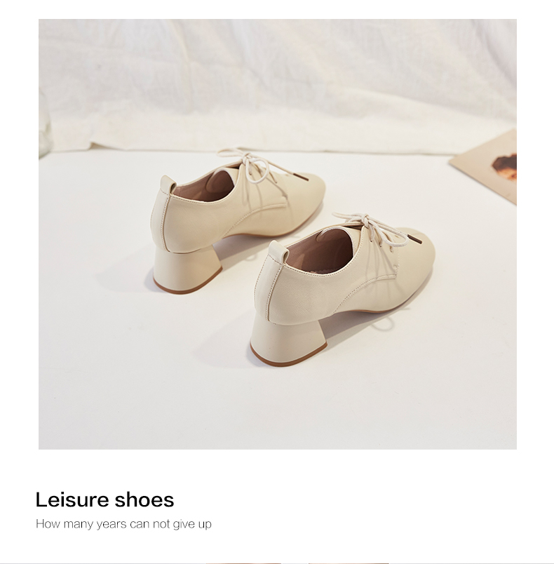 ZHR英伦复古粗跟仙女风百搭中跟单鞋